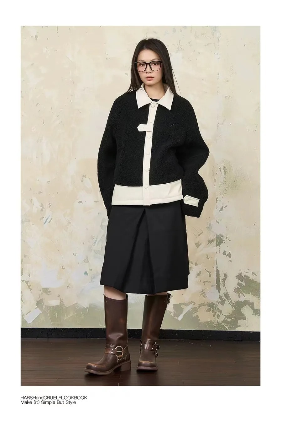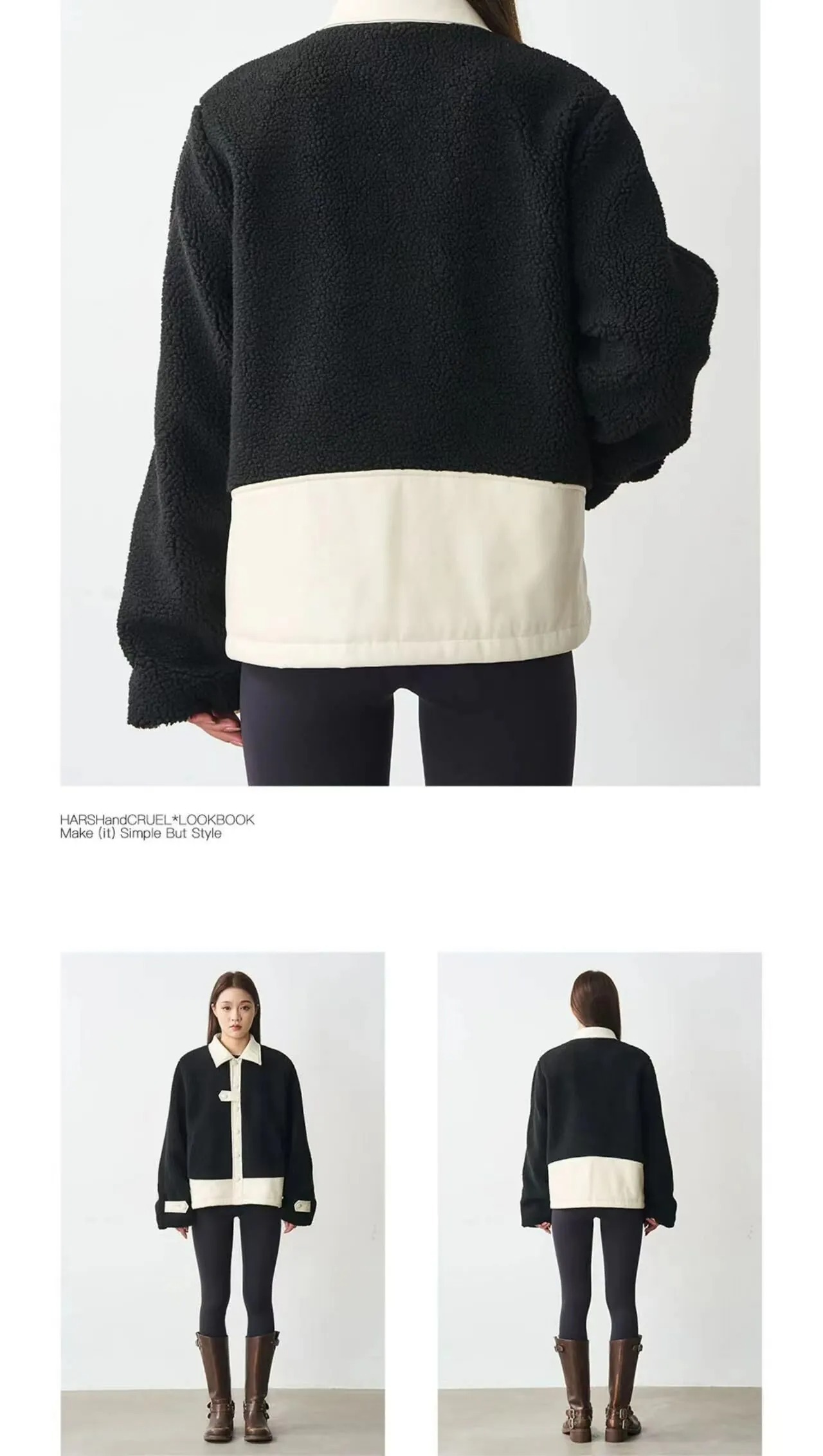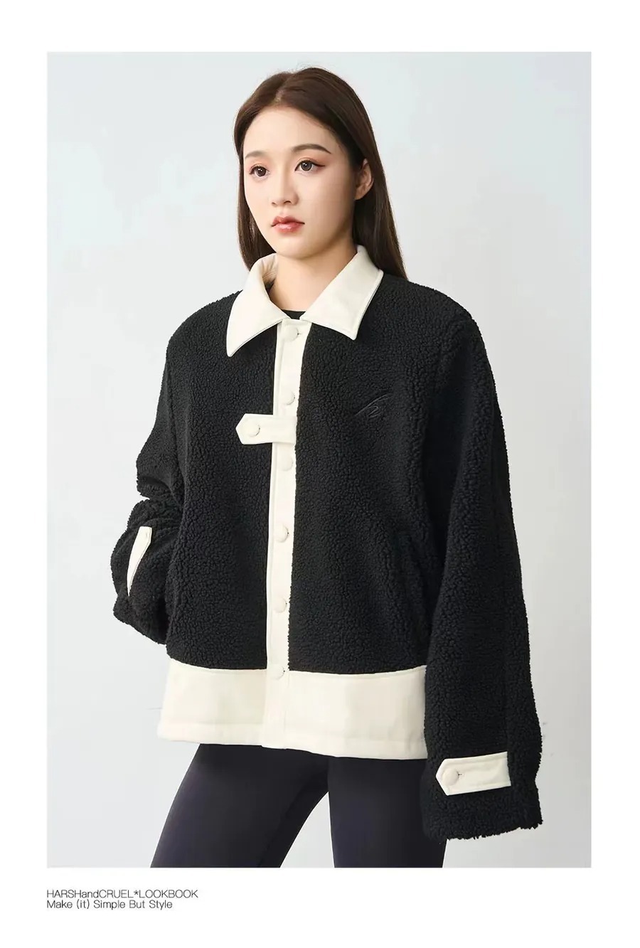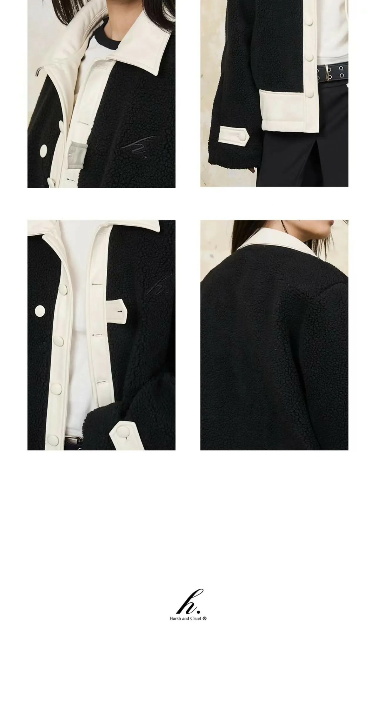Harsh and Cruel 24SS 撞色羊羔毛拼接刺繡短版翻領外套 HL233050538