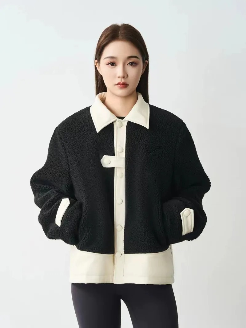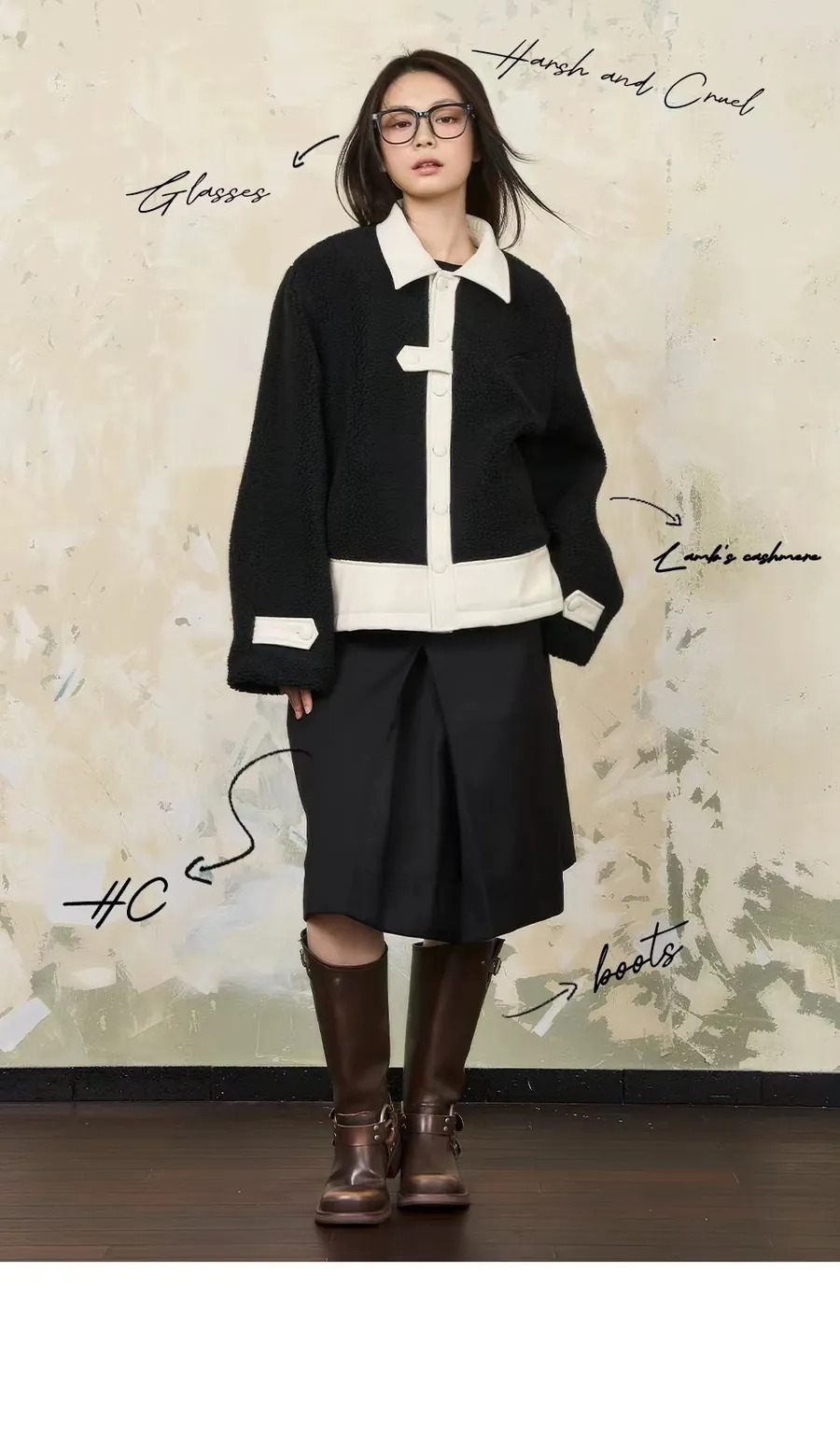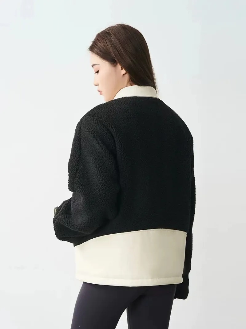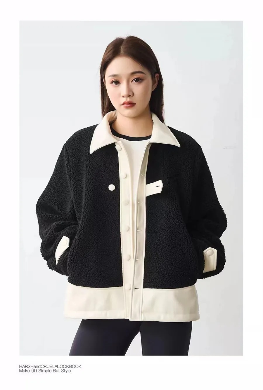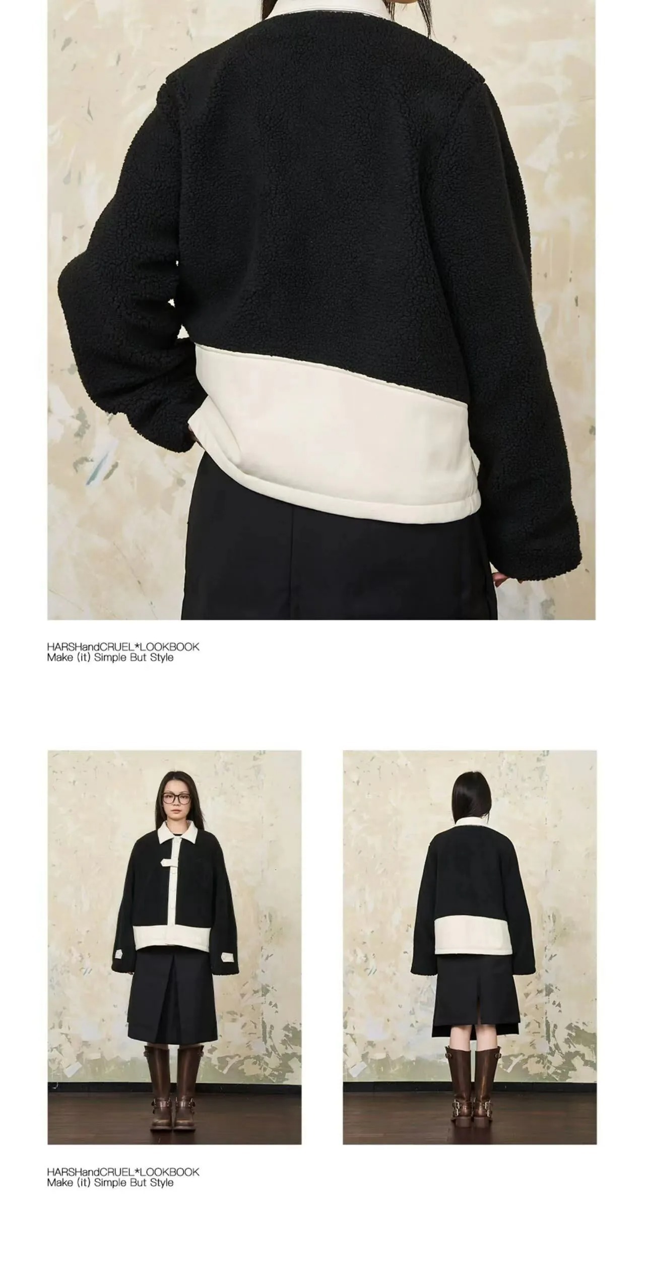 Harsh and Cruel 24SS 撞色羊羔毛拼接刺繡短版翻領外套 HL233050538