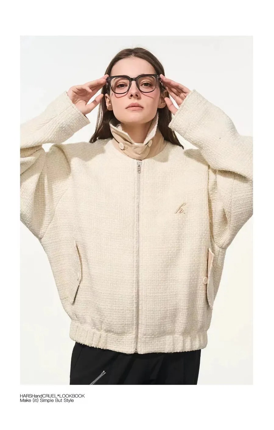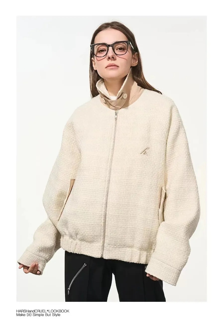 Harsh and Cruel 24SS Xiaoxiangfeng shag woven stand collar Harrington coat HL234050554