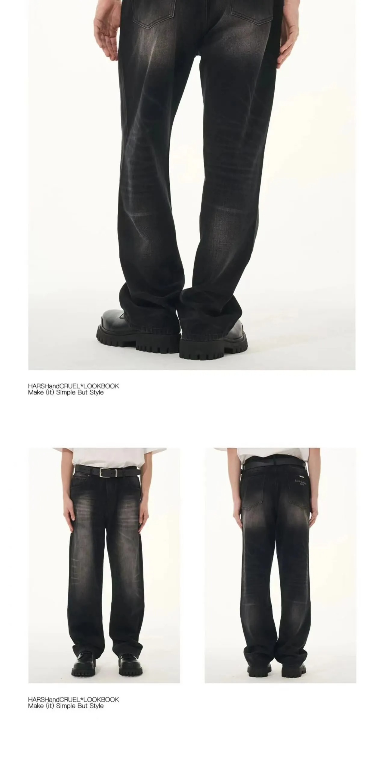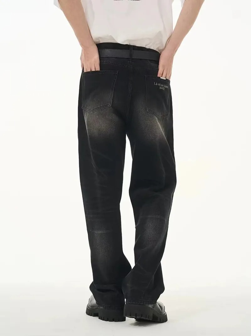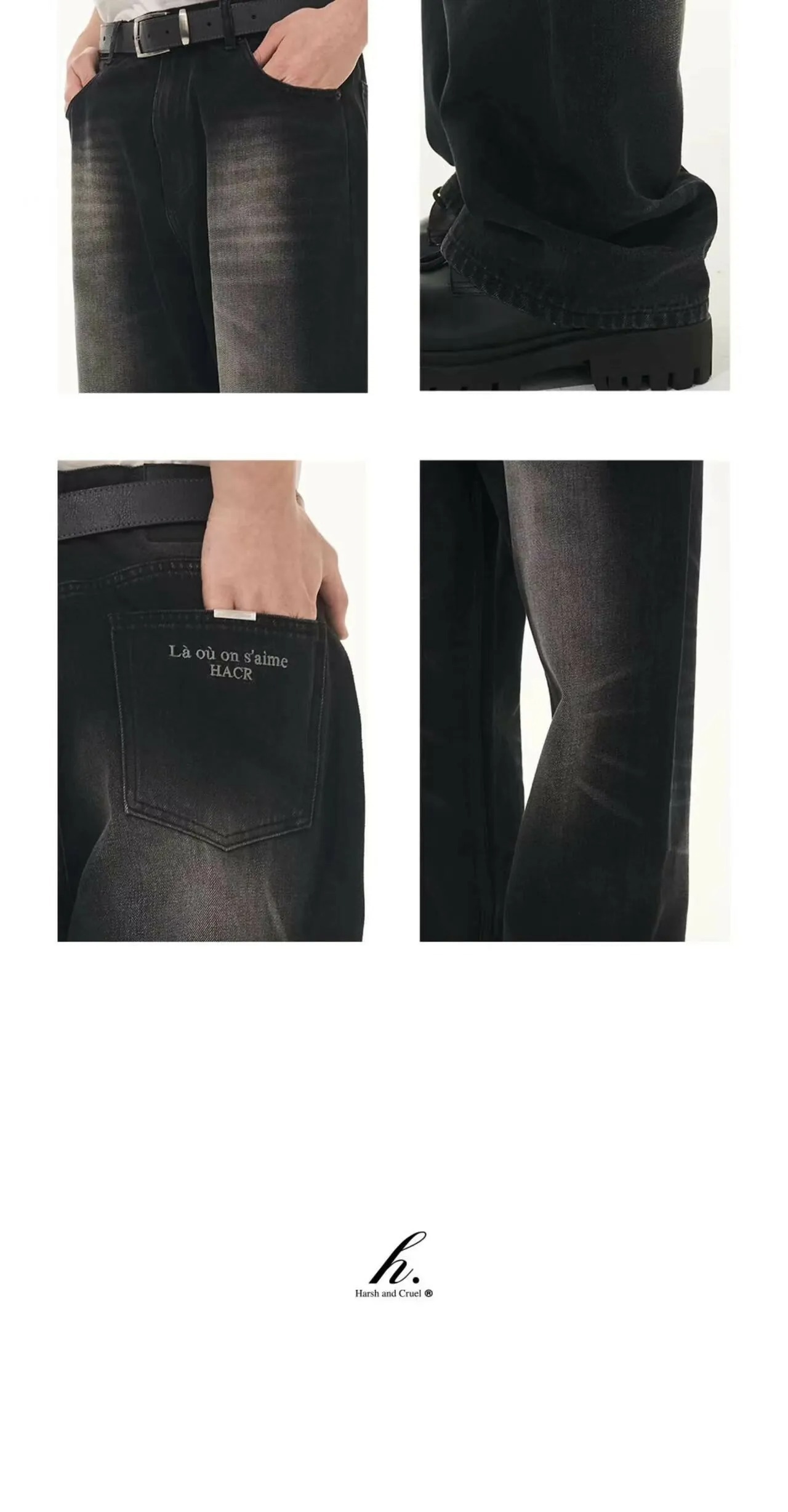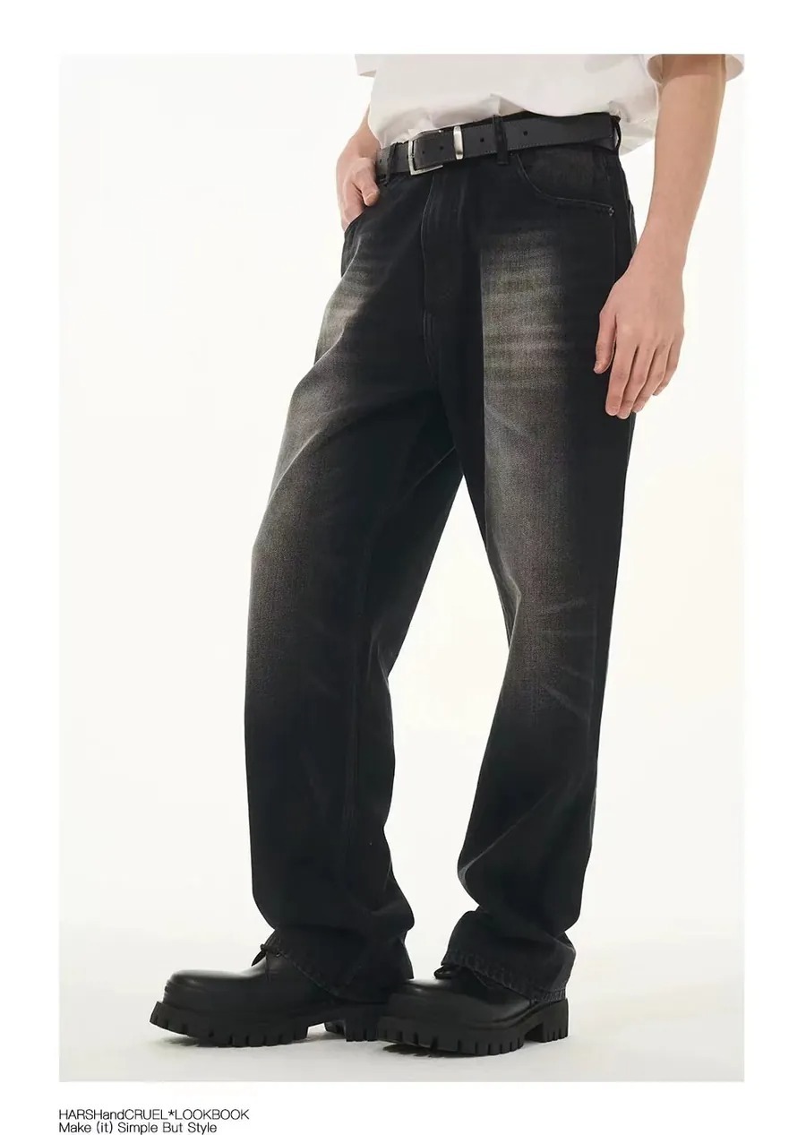 Harsh and Cruel 24SS 煙灰色做舊水洗抽鬚刺繡牛仔長褲 HL241140011