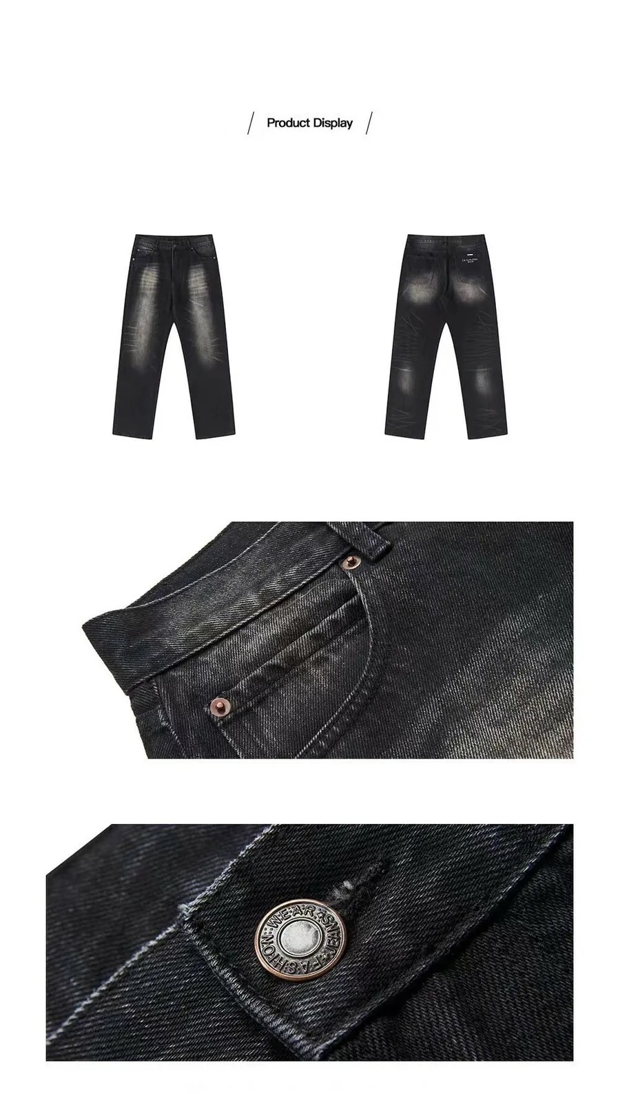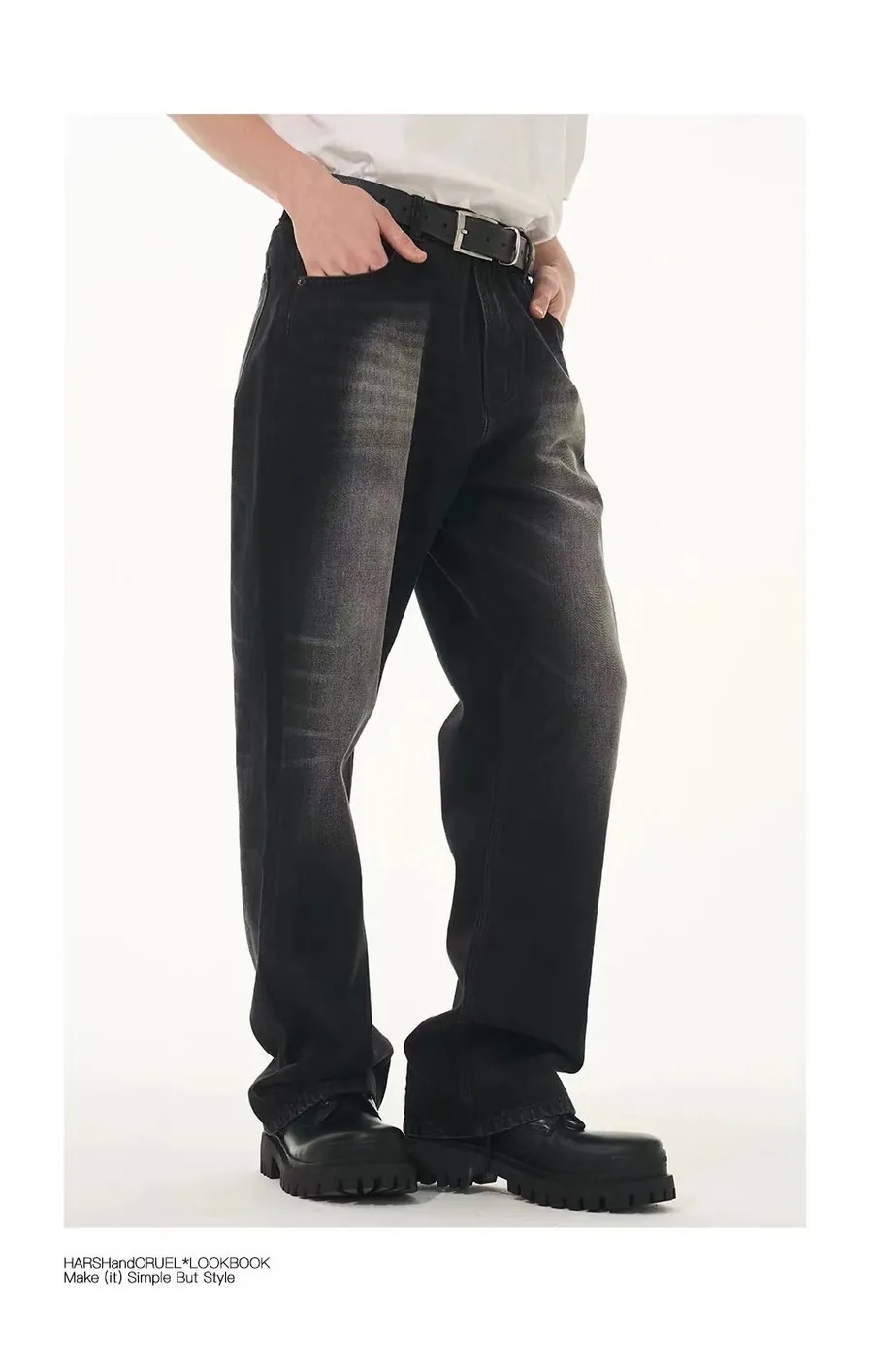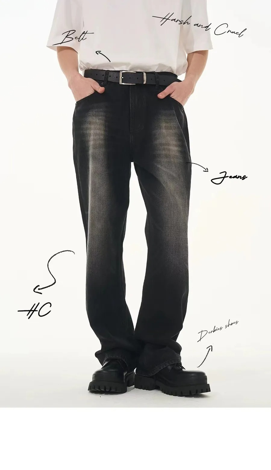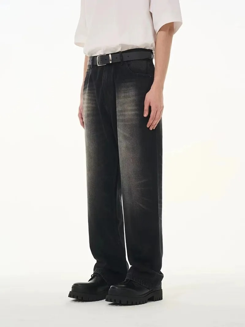 Harsh and Cruel 24SS 煙灰色做舊水洗抽鬚刺繡牛仔長褲 HL241140011