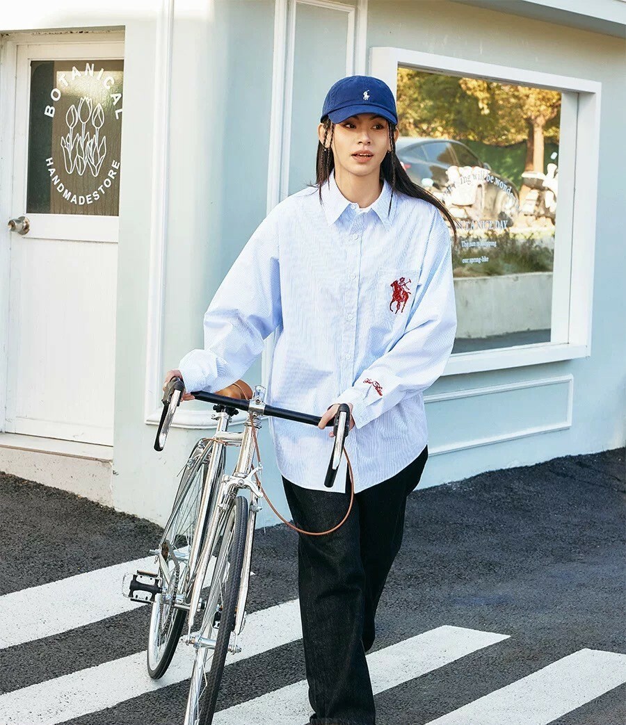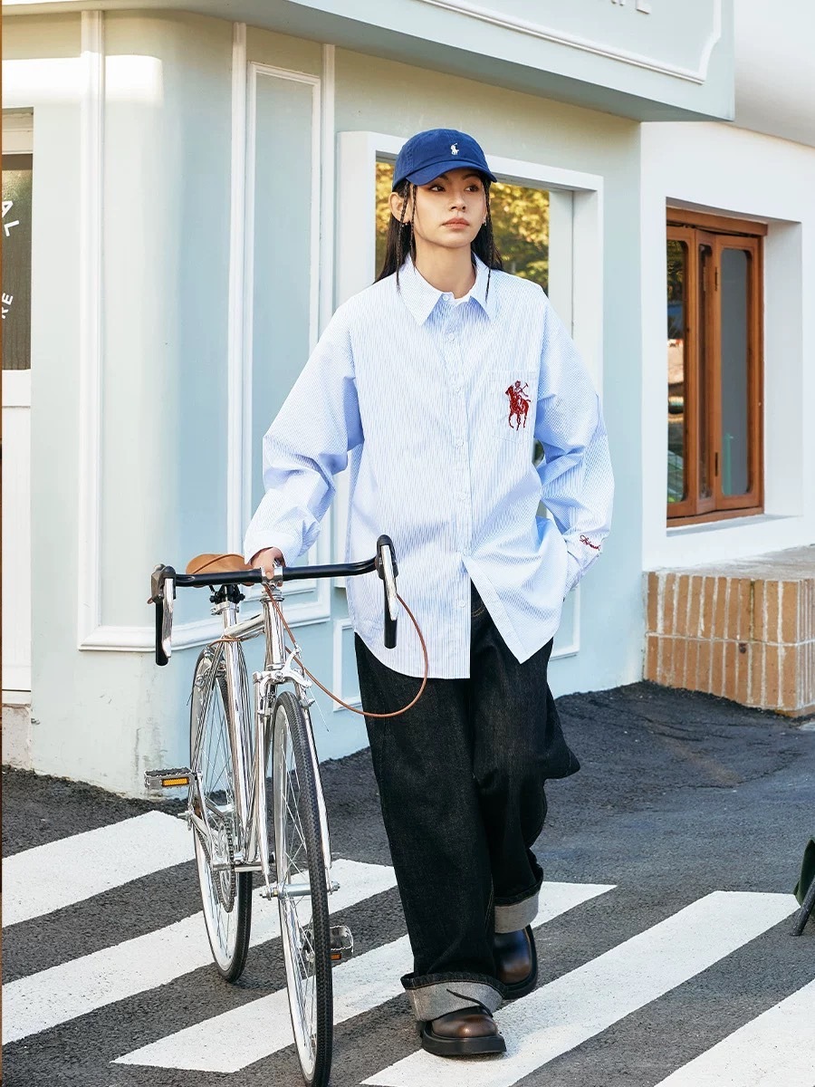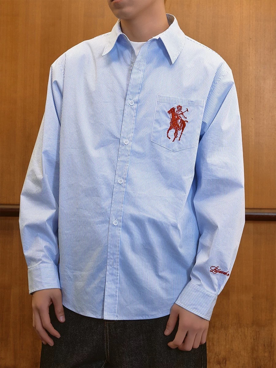 Harsh and Cruel 美式復古刺繡條紋寬鬆襯衫 HL251070028