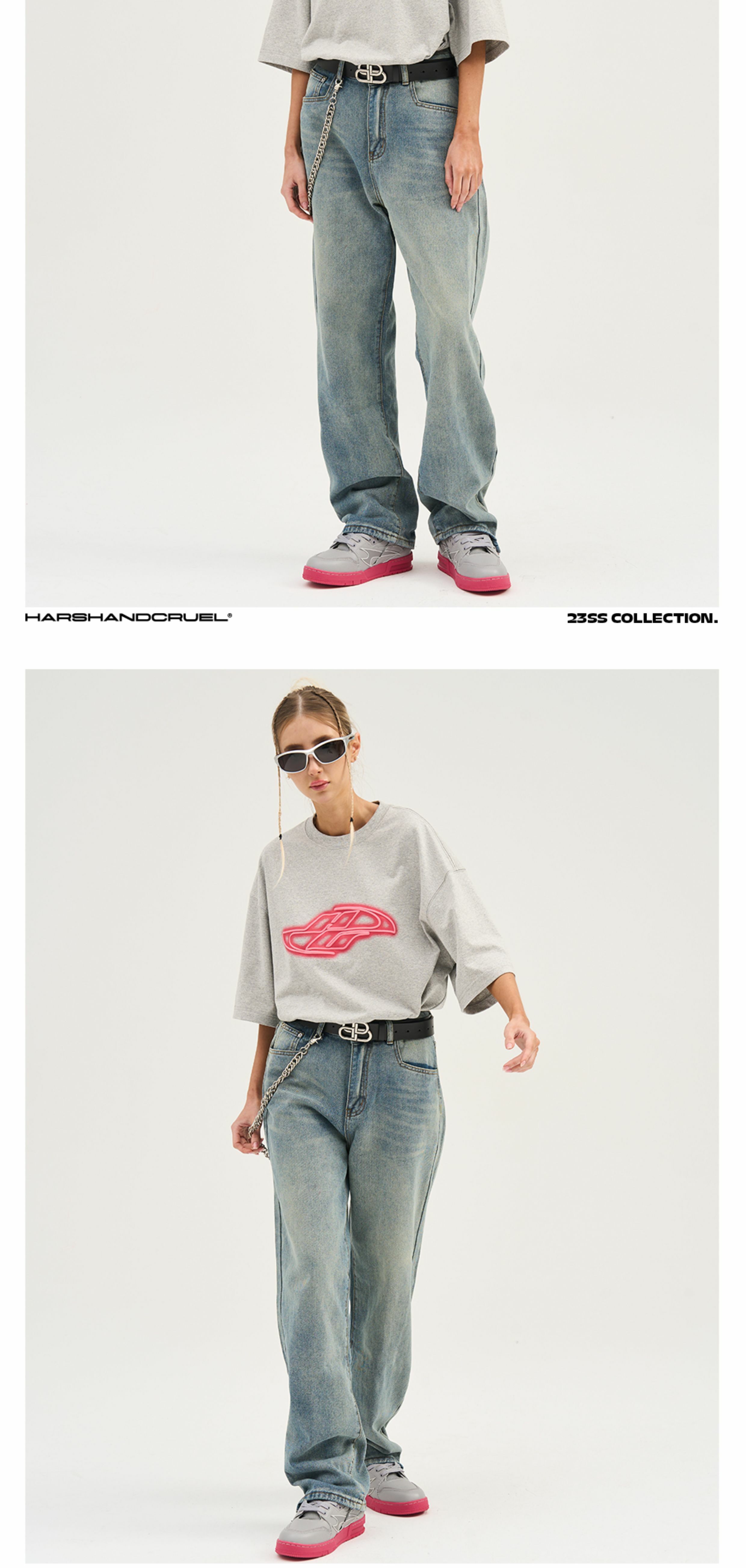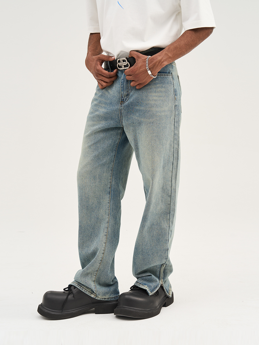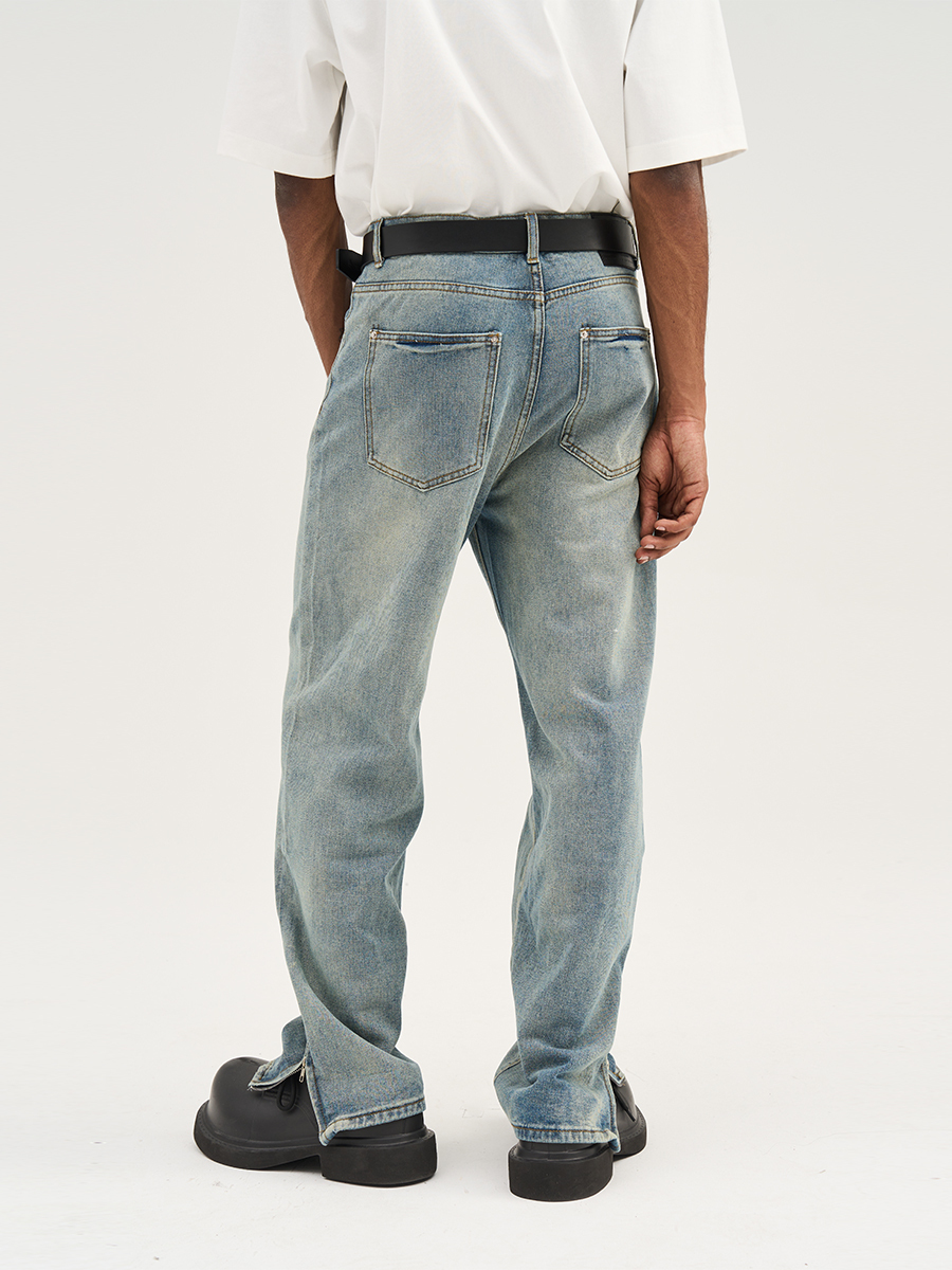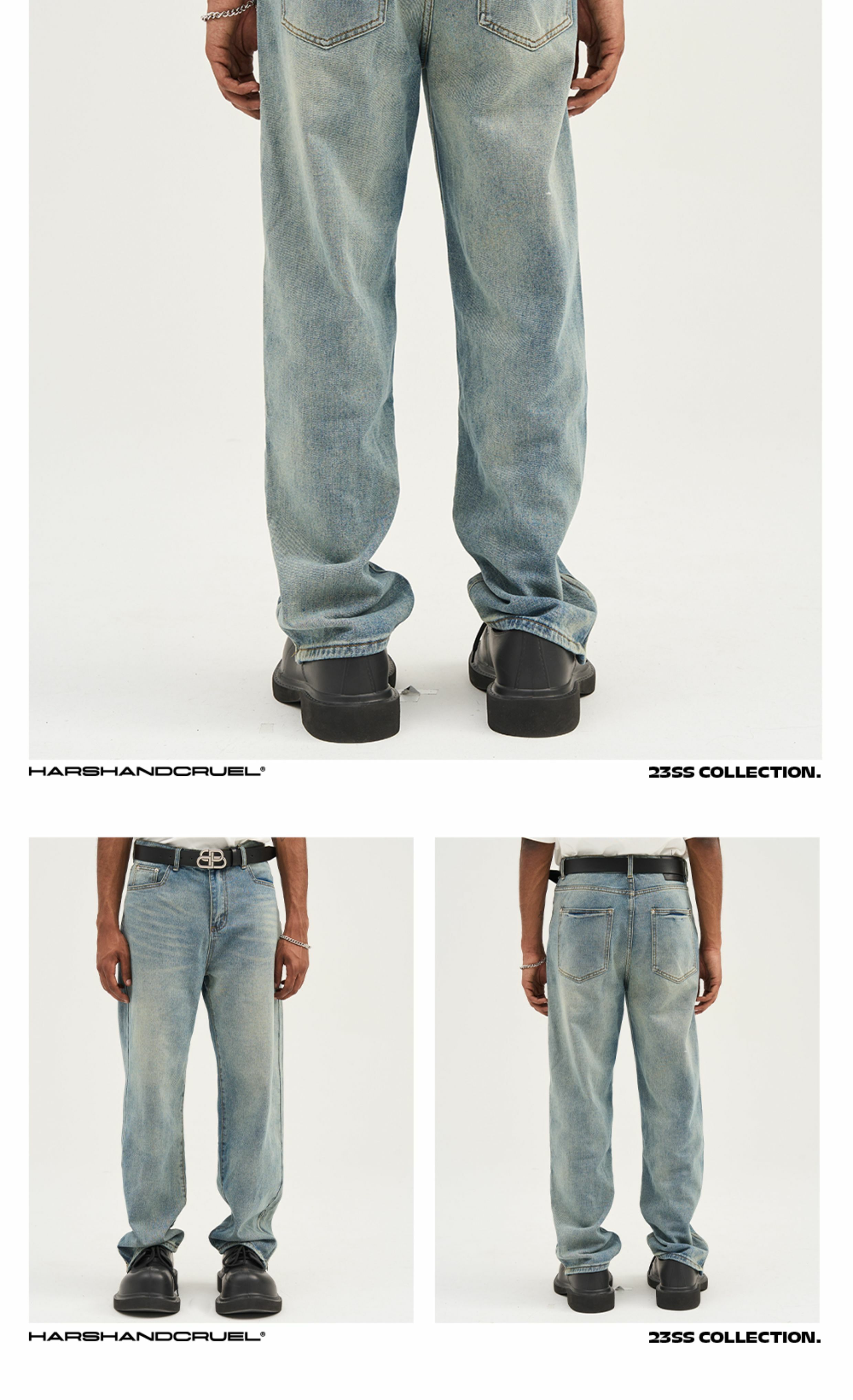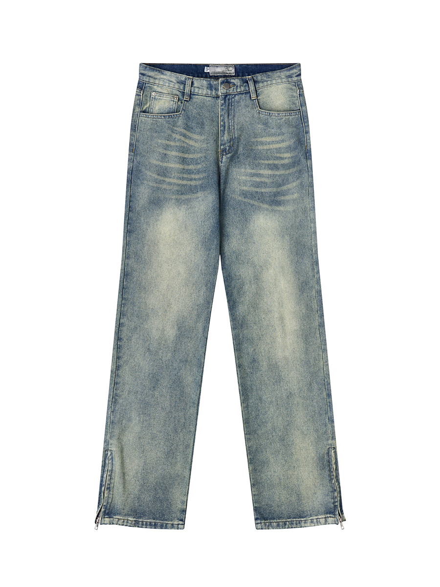 HARSH AND CRUEL 23SS 美式水洗做舊泛黃腳口拉鍊直筒牛仔褲 HN232140230