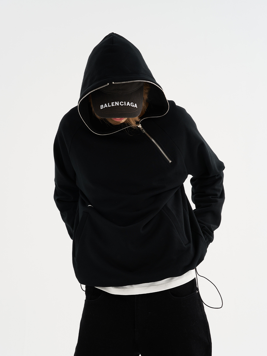 Harsh and Cruel 23SS 不對稱斜拉鍊設計帽T HN231030015