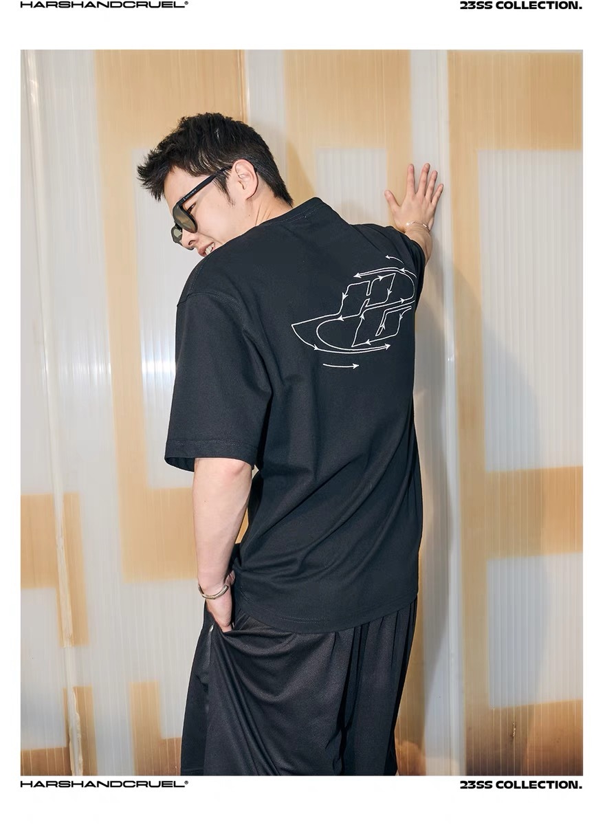 Harsh and Cruel 23SS cleanfit線描指向箭頭logo刺繡短袖 HZ232020288