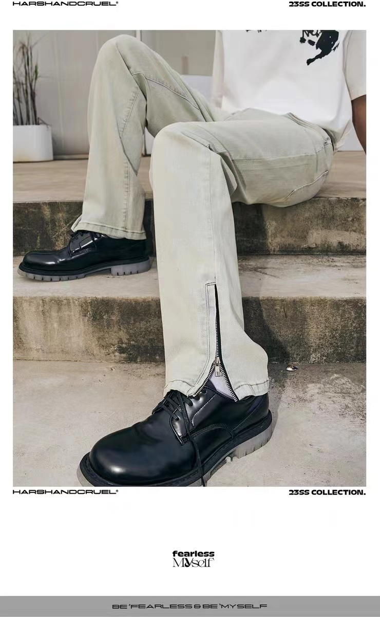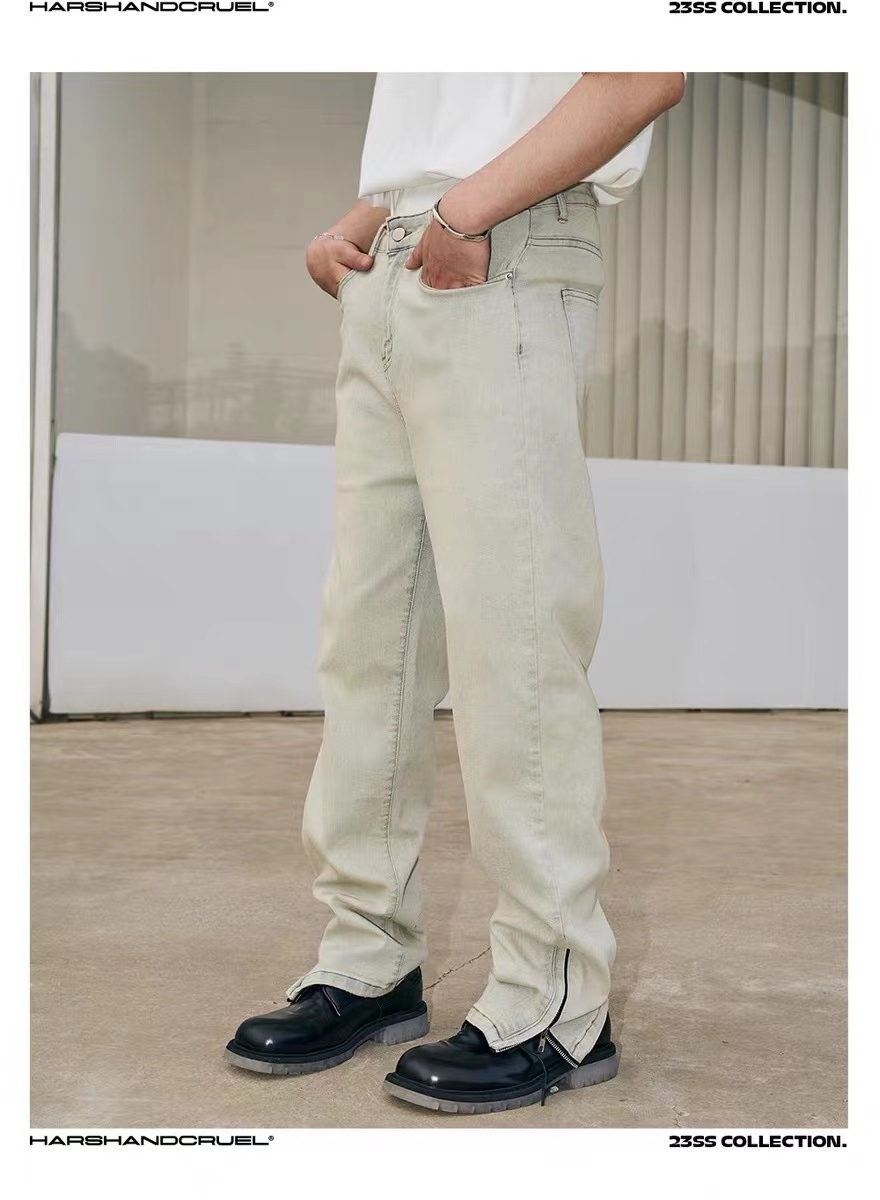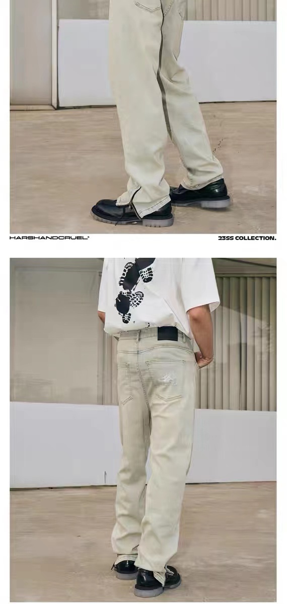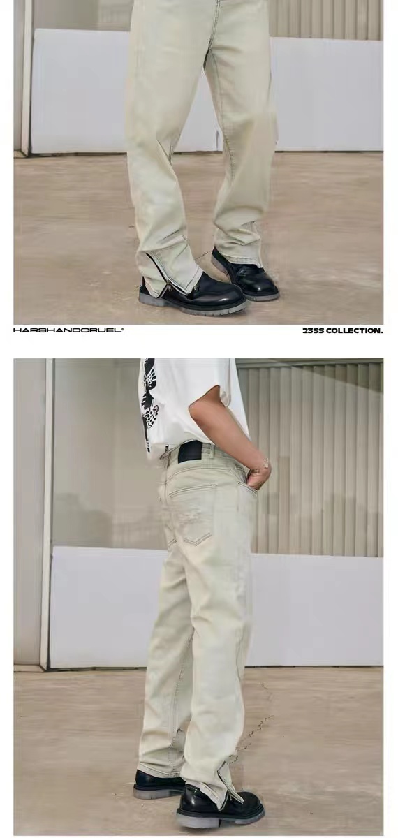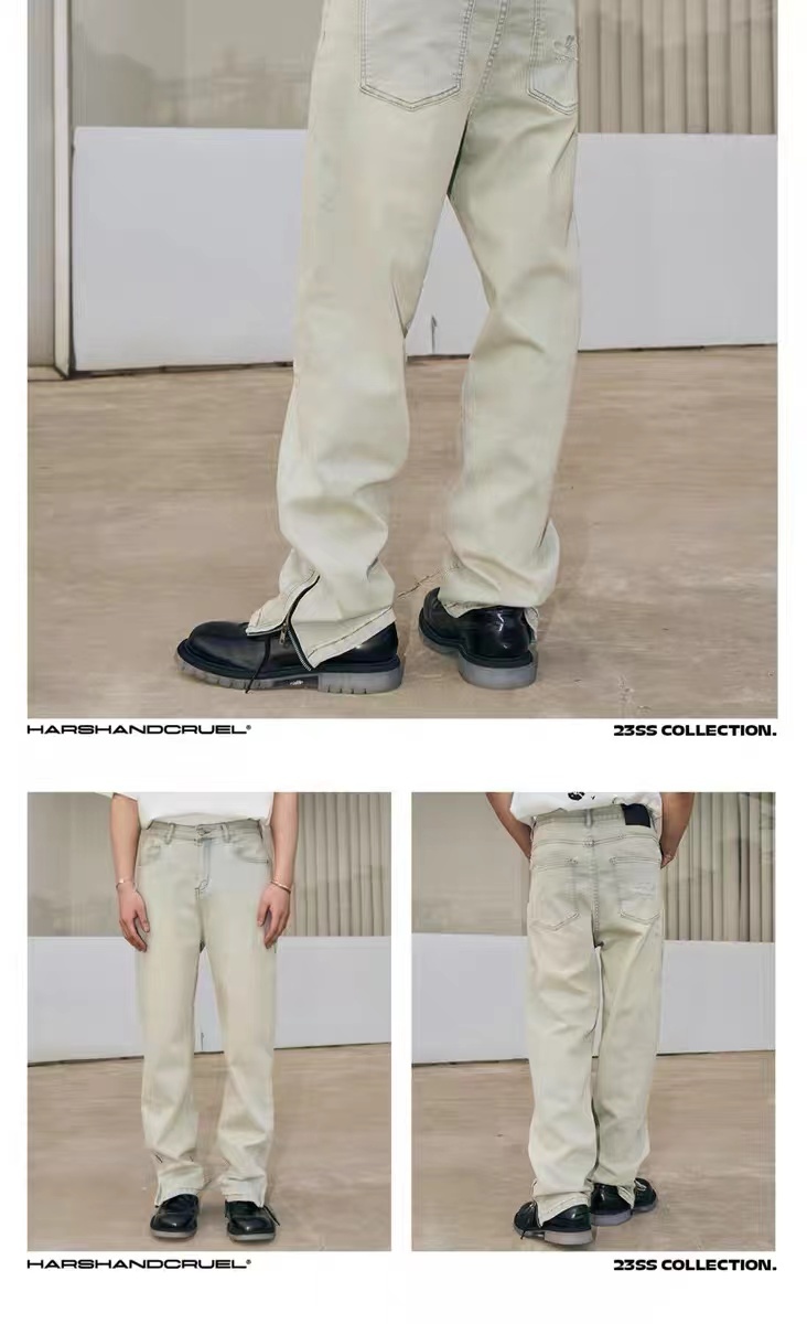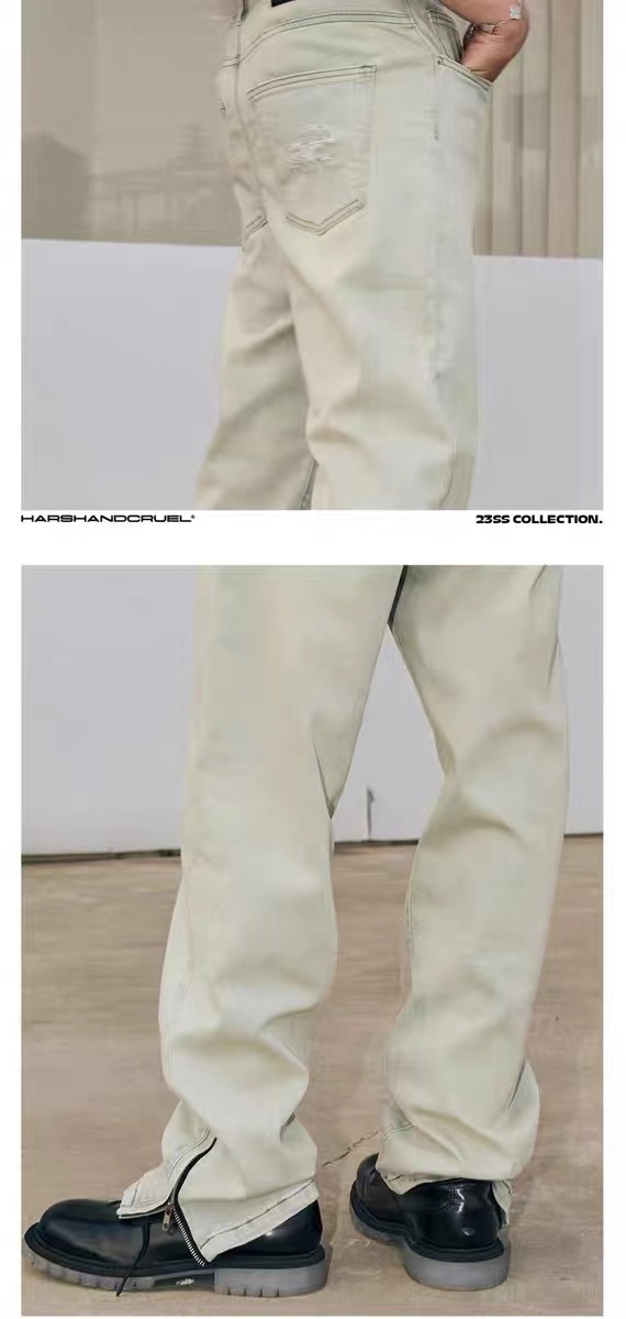 HARSH AND CRUEL 23SS cleanfit風腳口拉鍊淺藍水洗破壞牛仔褲 HN232140285