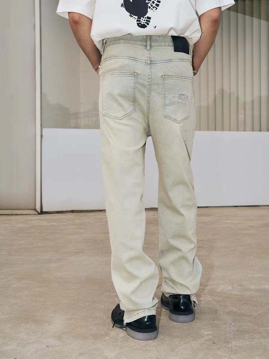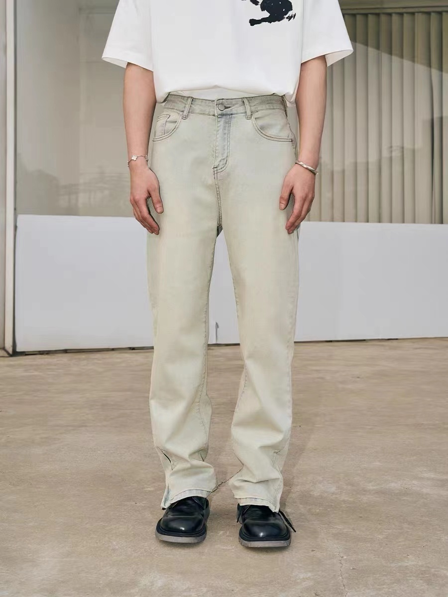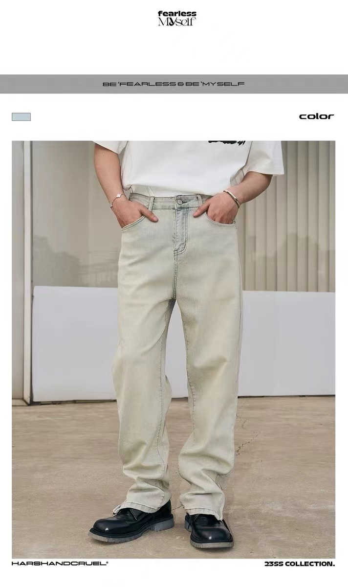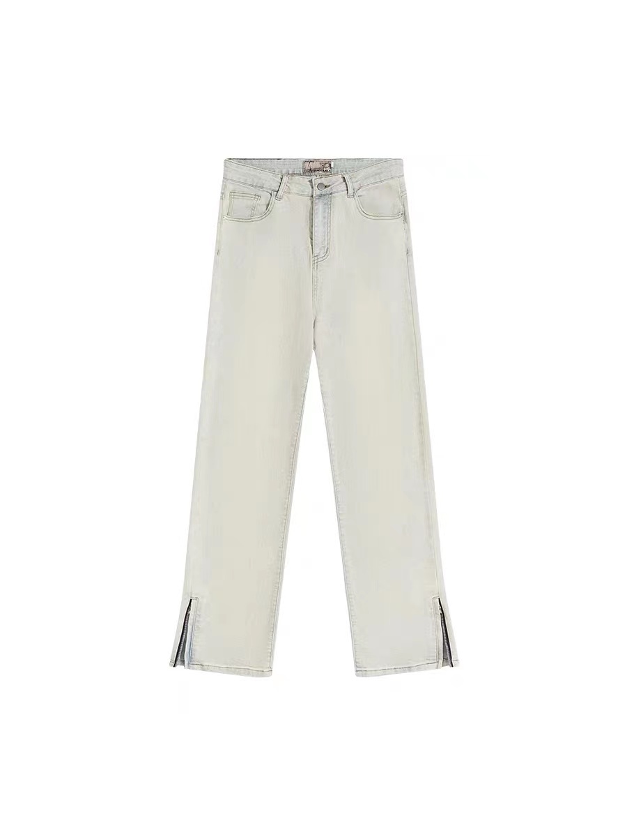 HARSH AND CRUEL 23SS cleanfit風腳口拉鍊淺藍水洗破壞牛仔褲 HN232140285