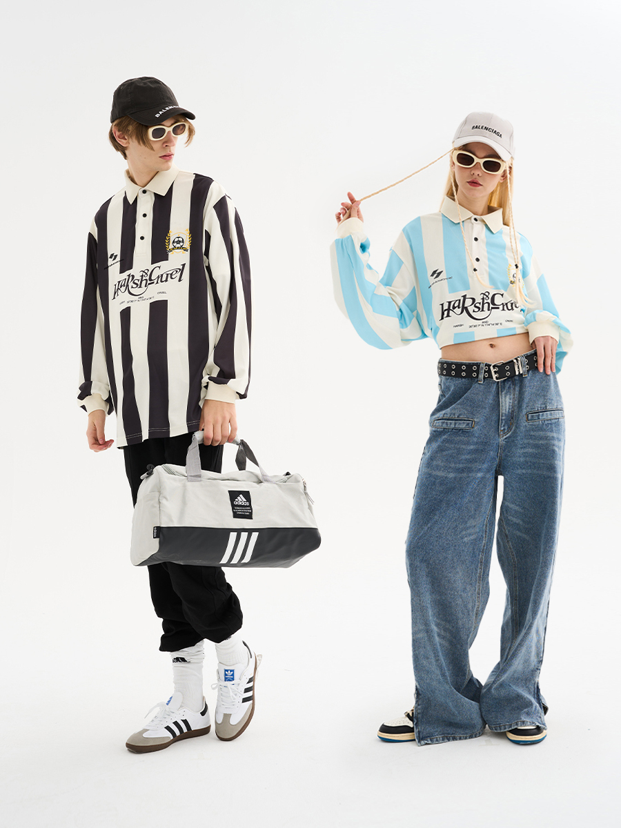 Harsh and Cruel 23SS 復古足球條紋長袖polo衫 HN231170018