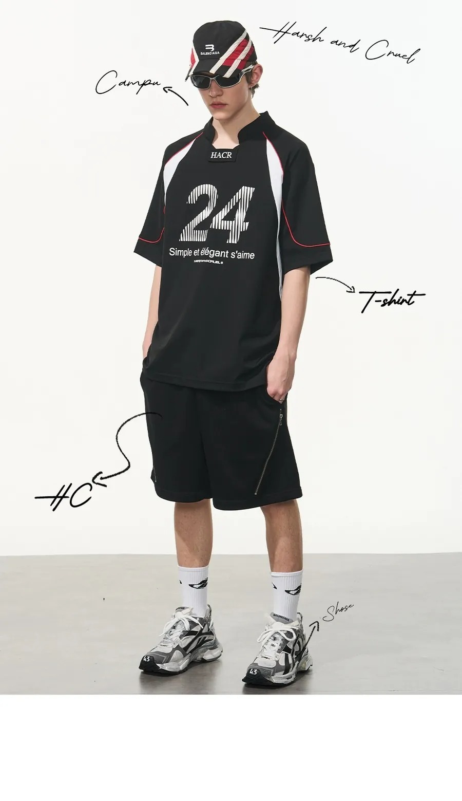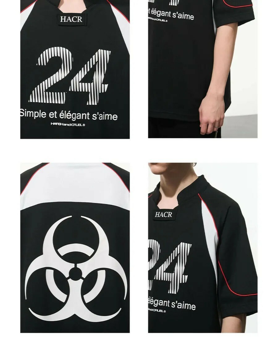Harsh and Cruel 24SS Sports Mesh Spliced ​​Biochemical Logo Structure Short Sleeves HL242020088