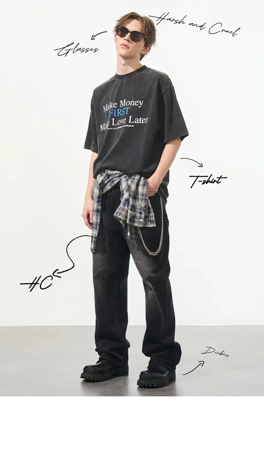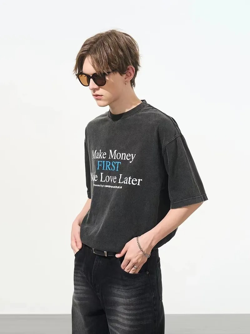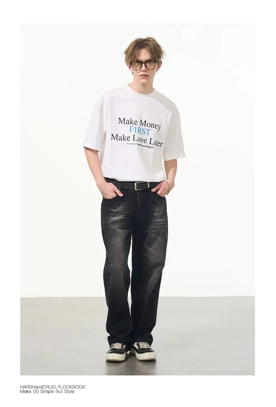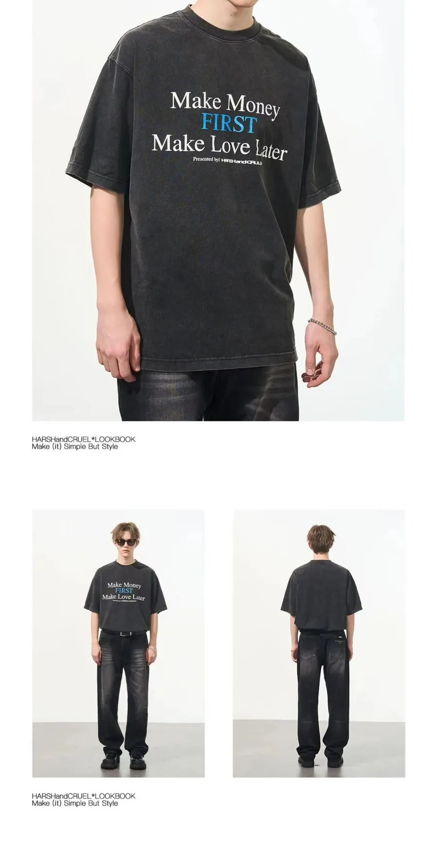 Harsh and Cruel 24SS Letter Slogan Layout Short Sleeve HL241020014