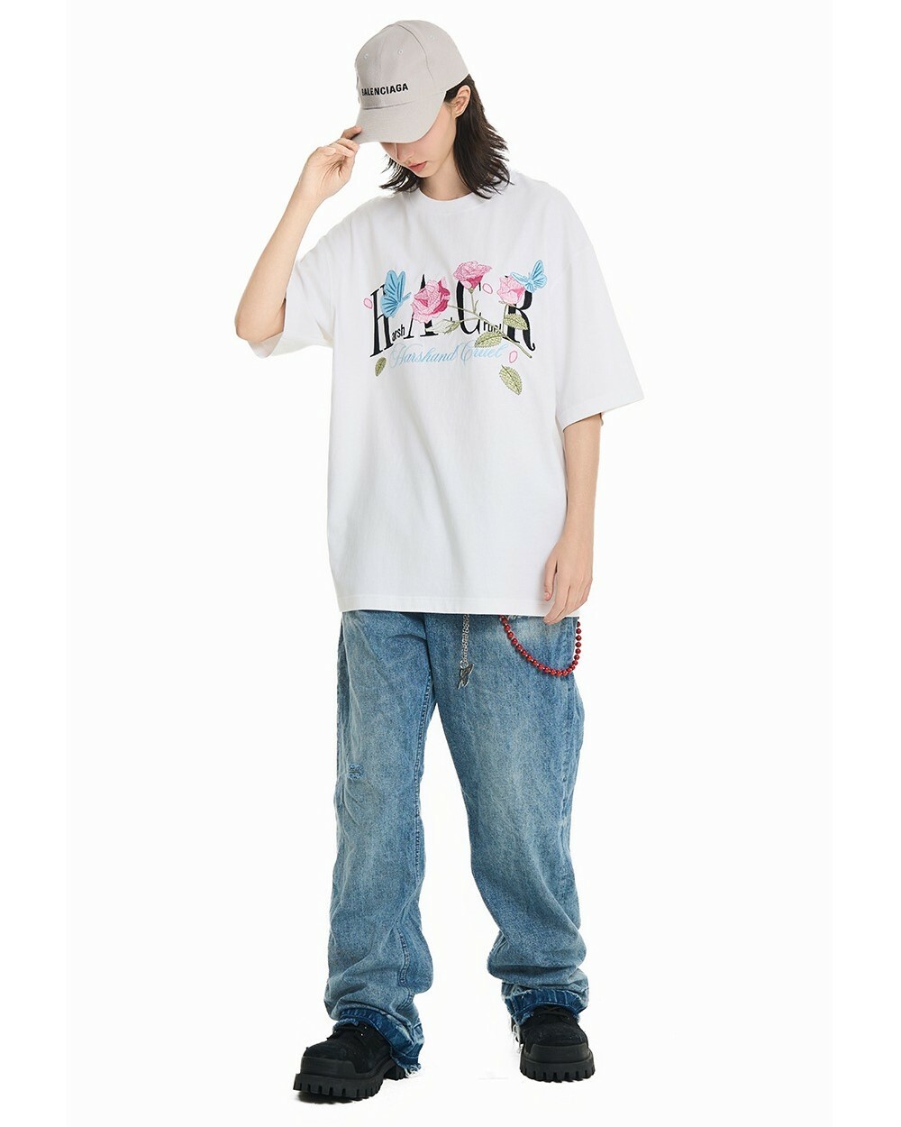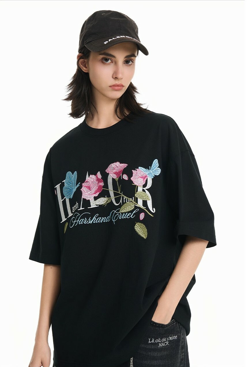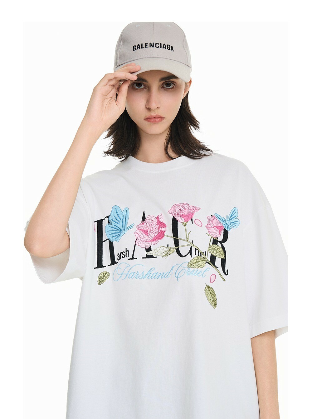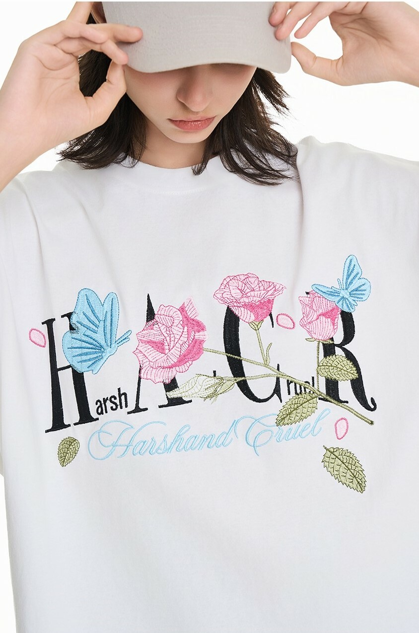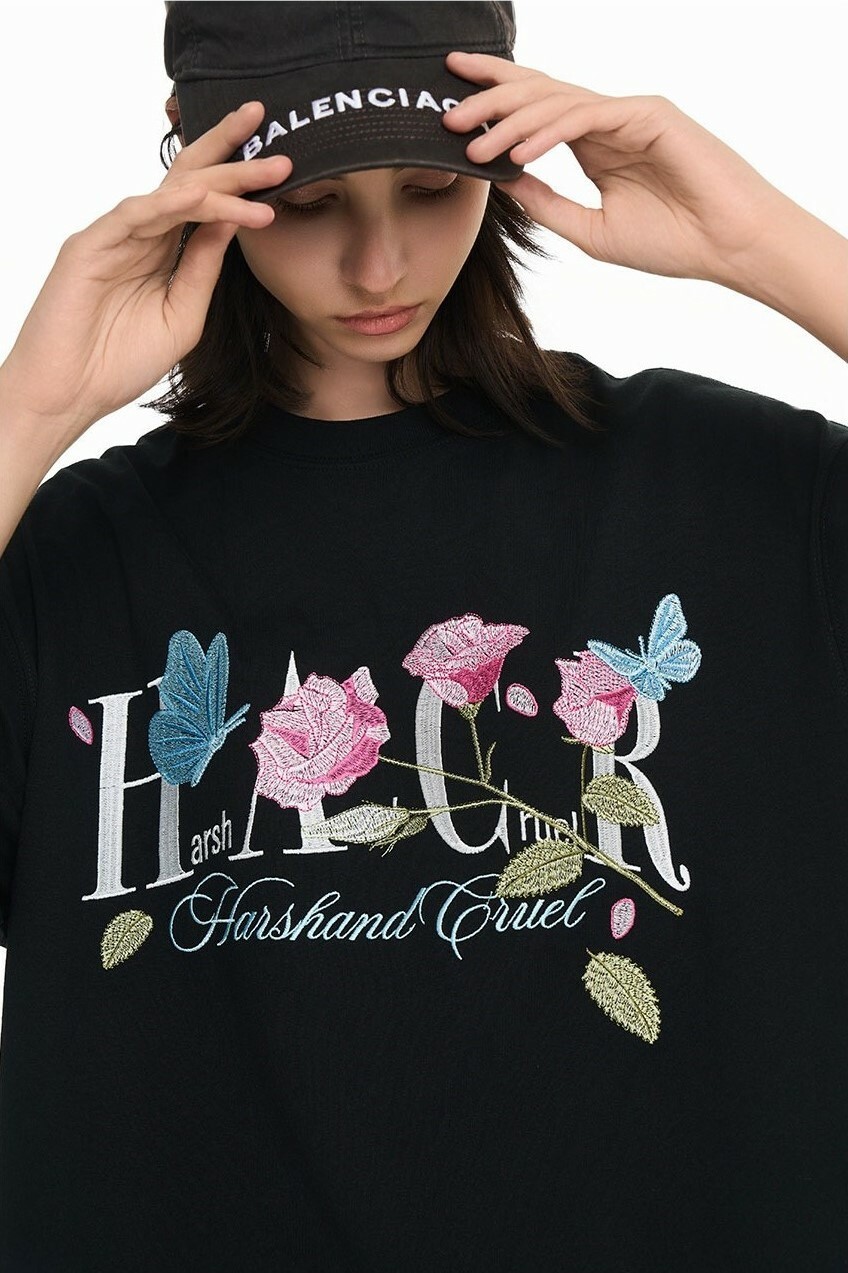 Harsh and Cruel 24SS Retro Embroidered Butterfly Flower Breathable Short Sleeve T HL242020205