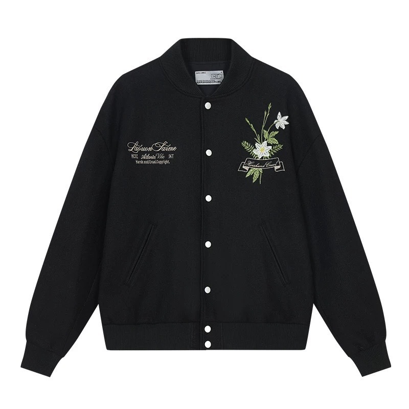 Harsh and Cruel Heavy Embroidery Floral Font Logo College Style Baseball Jacket HL244090401