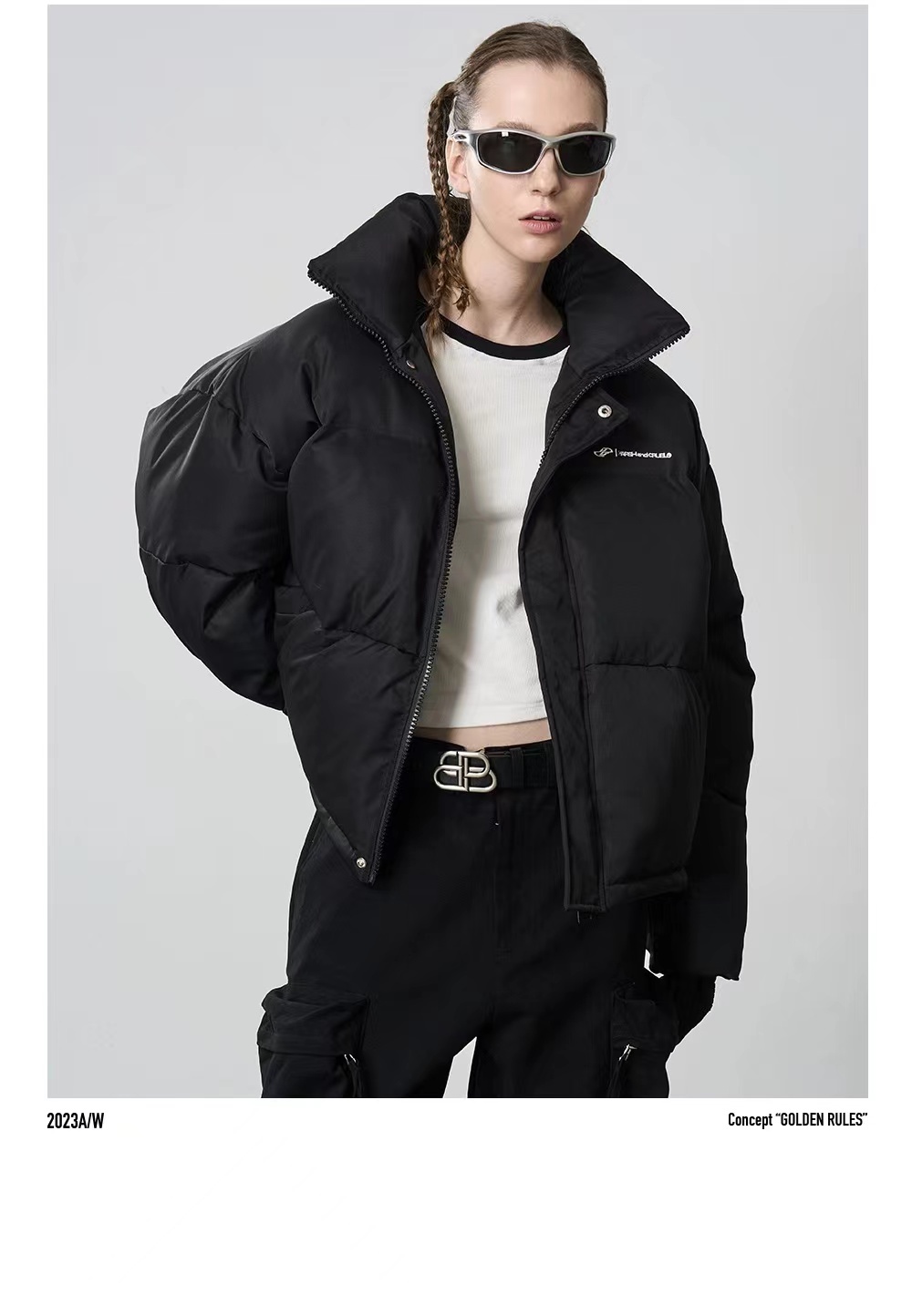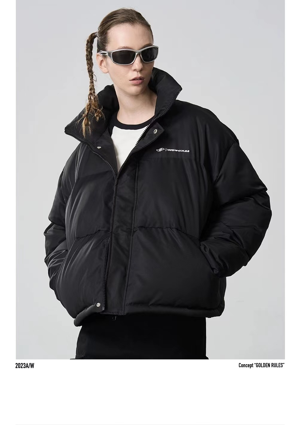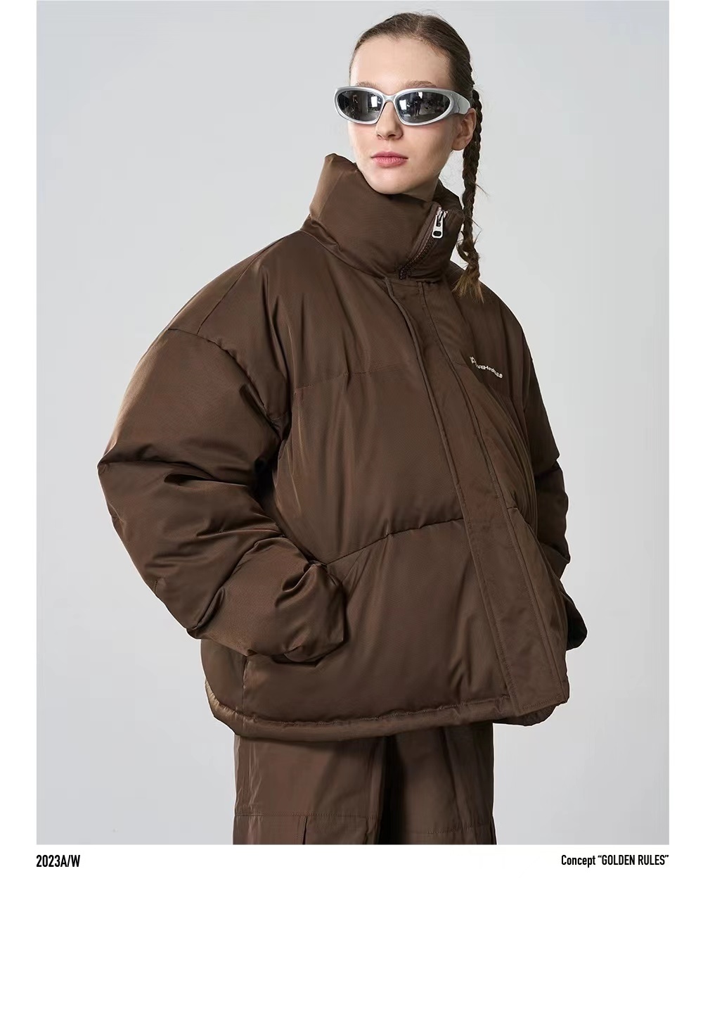 HARSH AND CRUEL Maillard structural design embroidery simple stand collar thickened cotton jacket HZ233040518