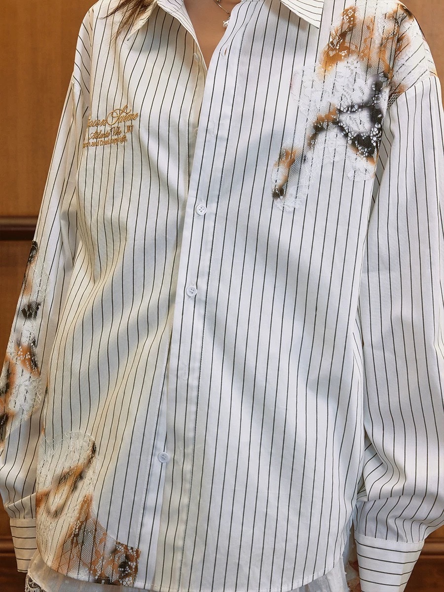 Harsh and Cruel Burning Destruction Lace Embroidery Striped Shirt HZ251070007
