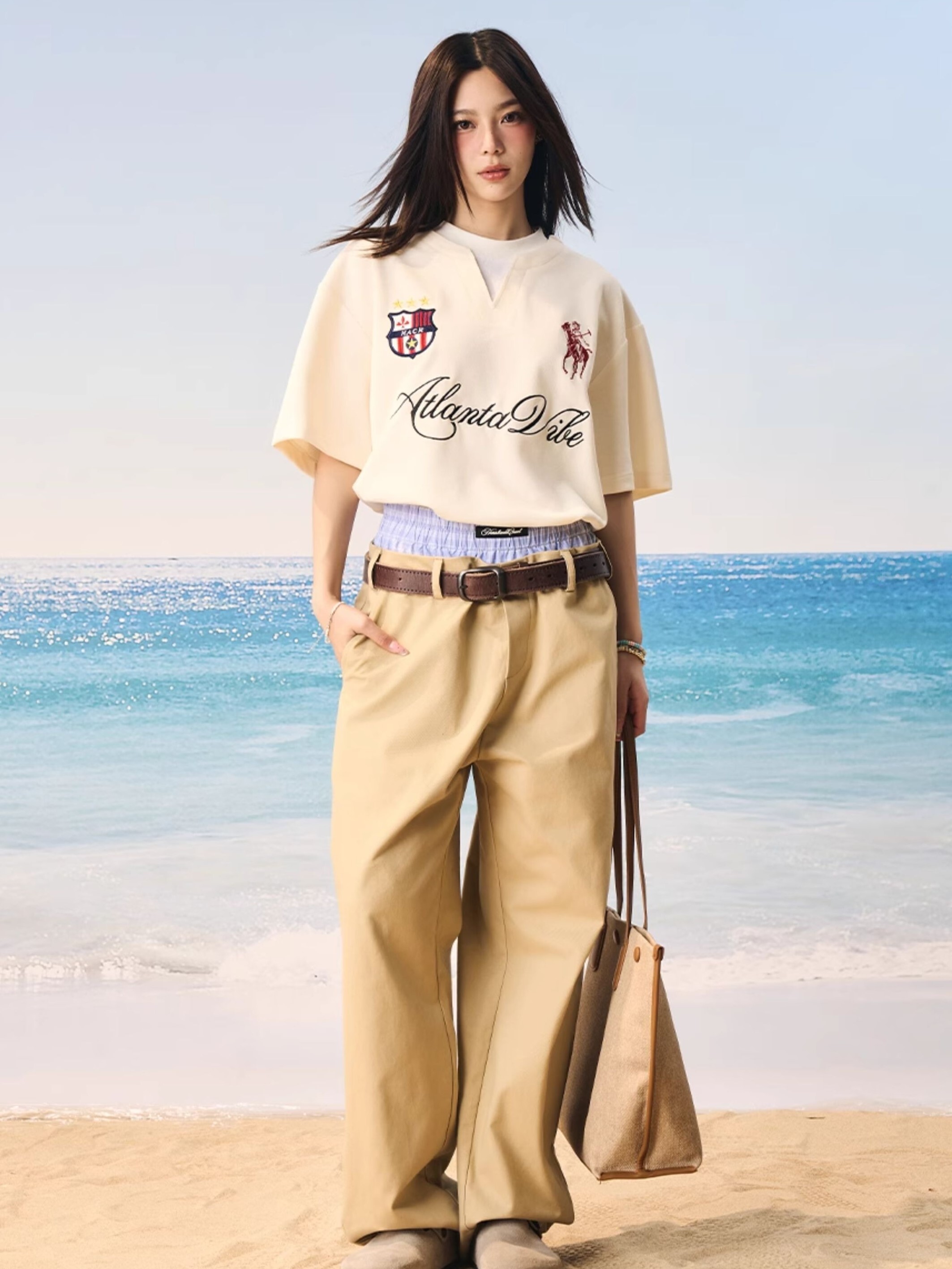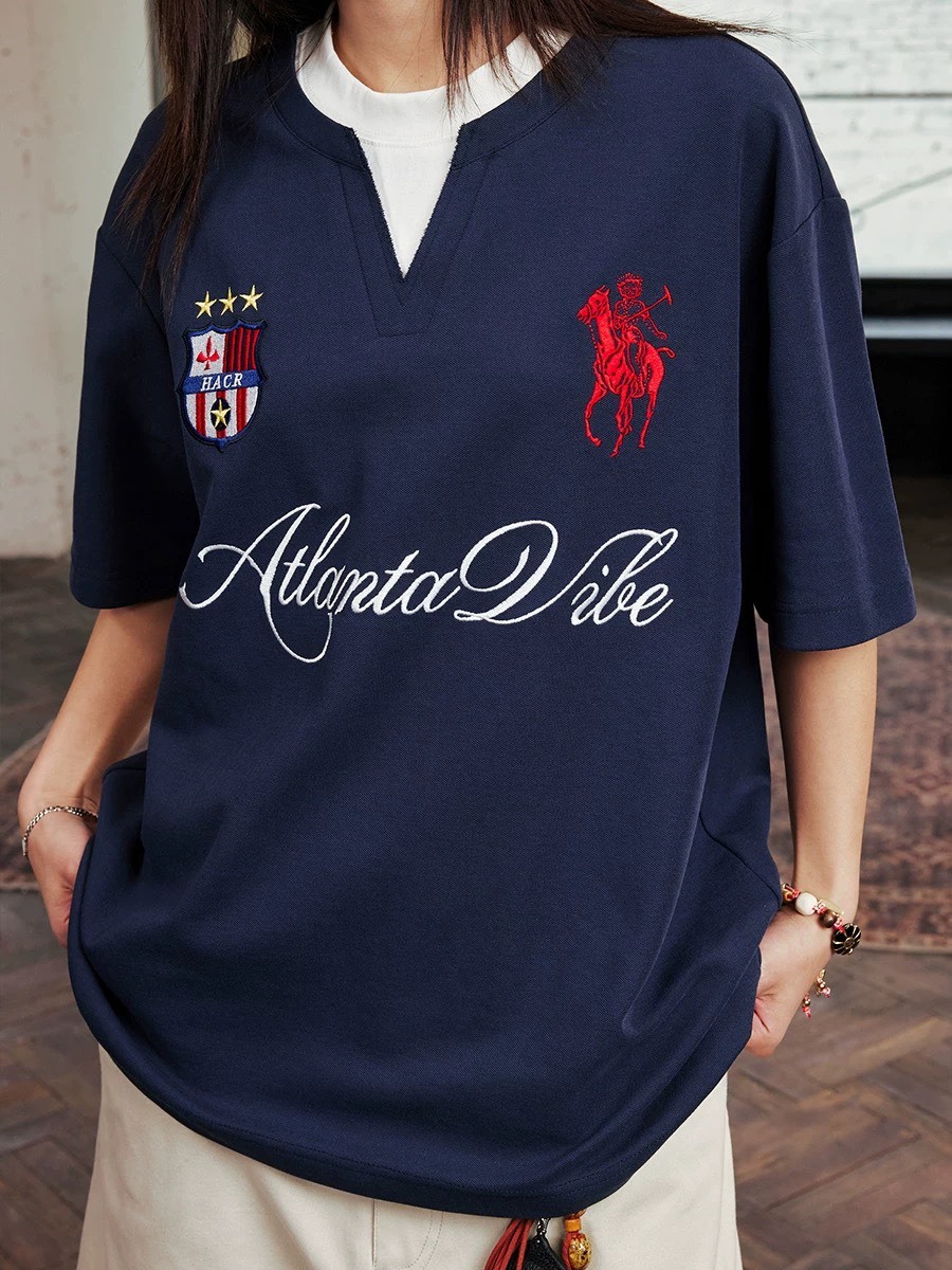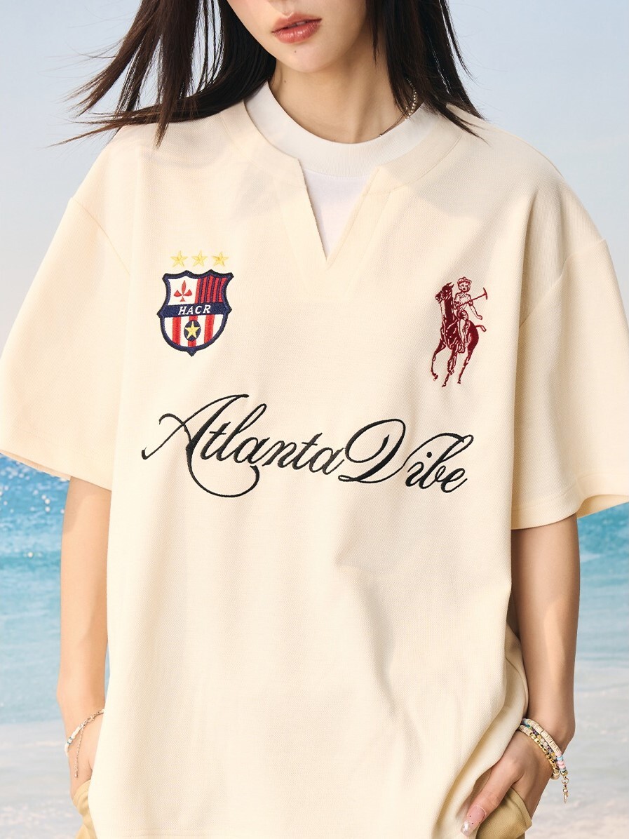 Harsh and Cruel 學院風刺繡 假兩件亨利領 短袖 T恤 HL251020084