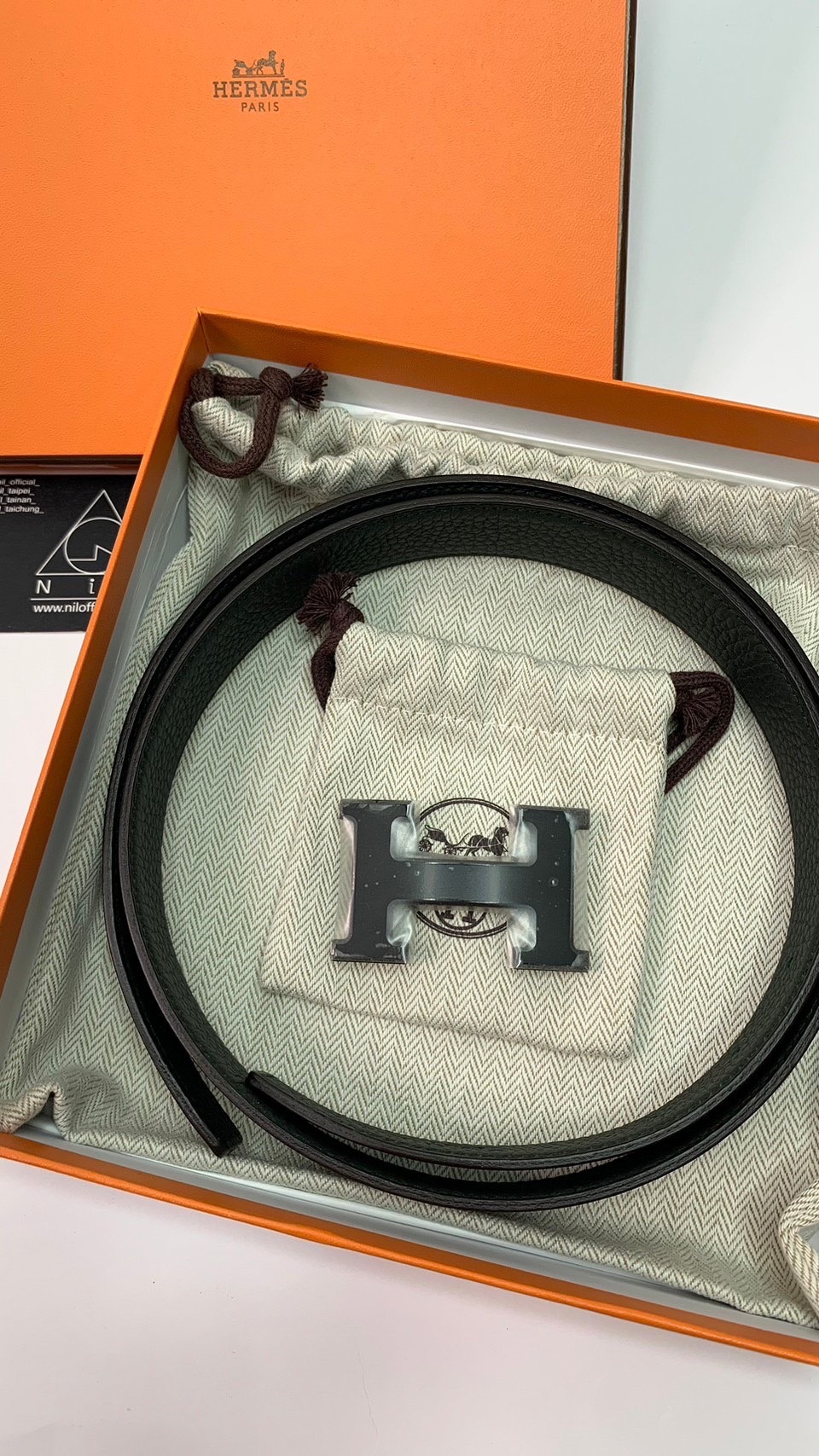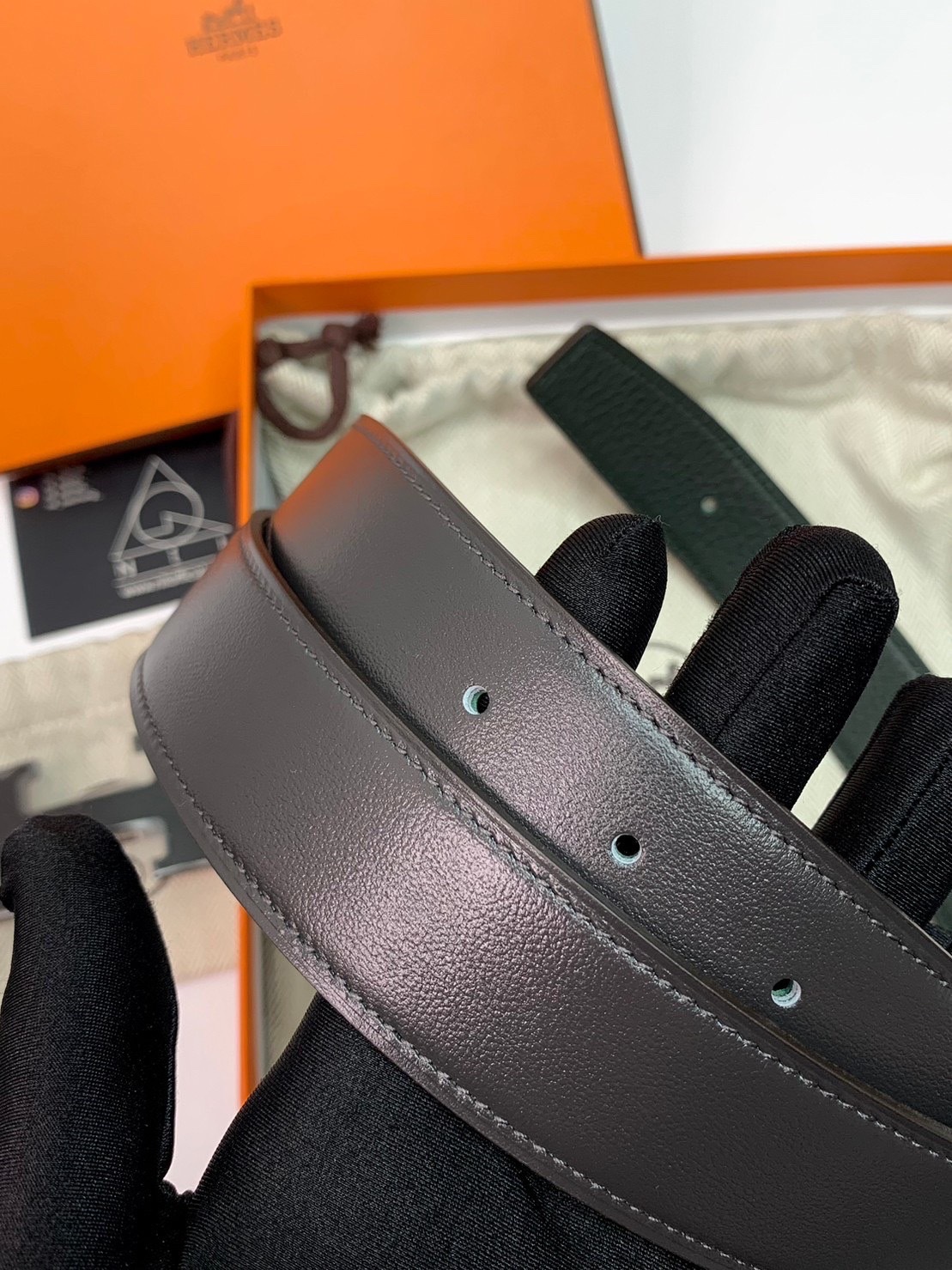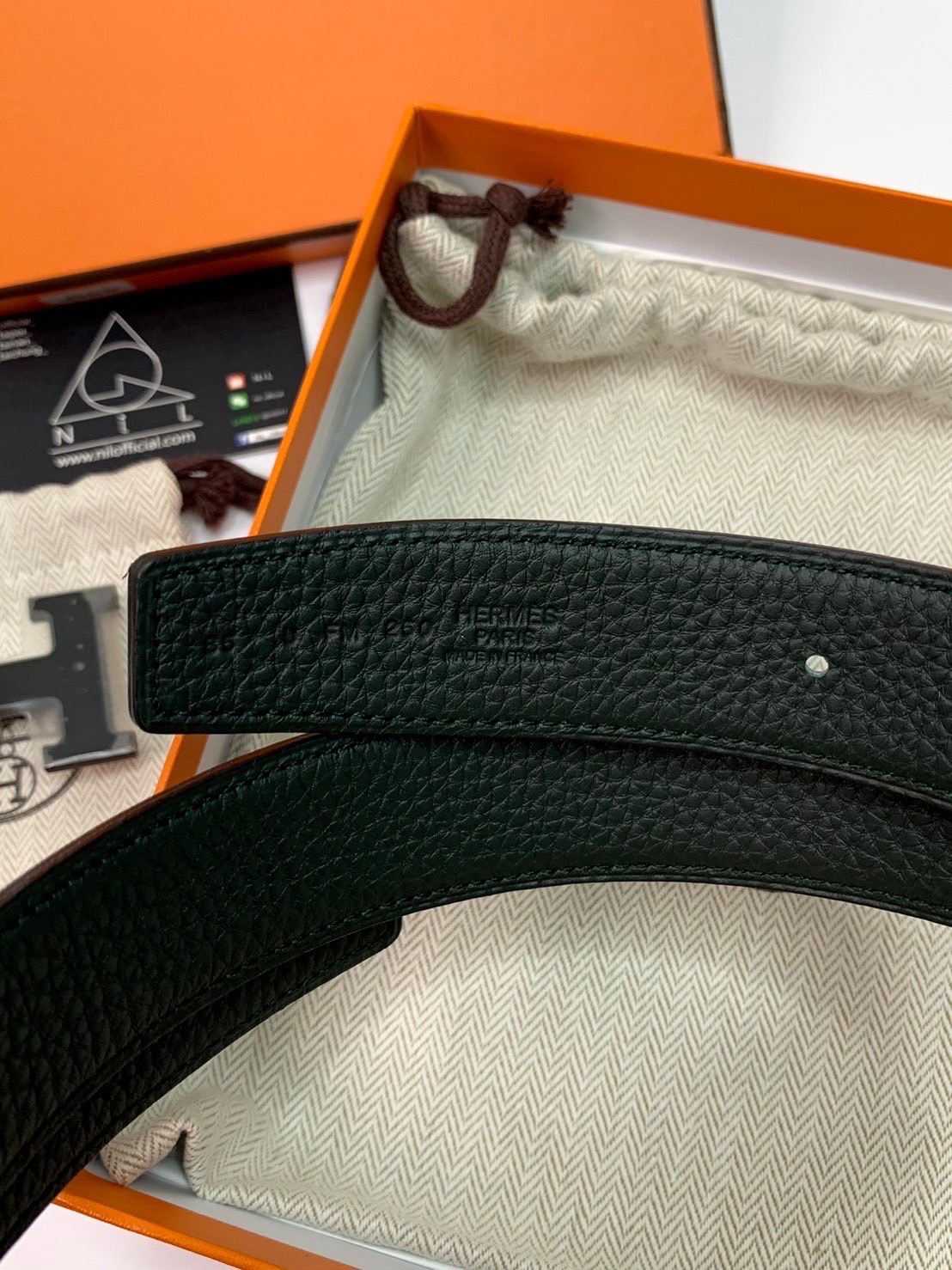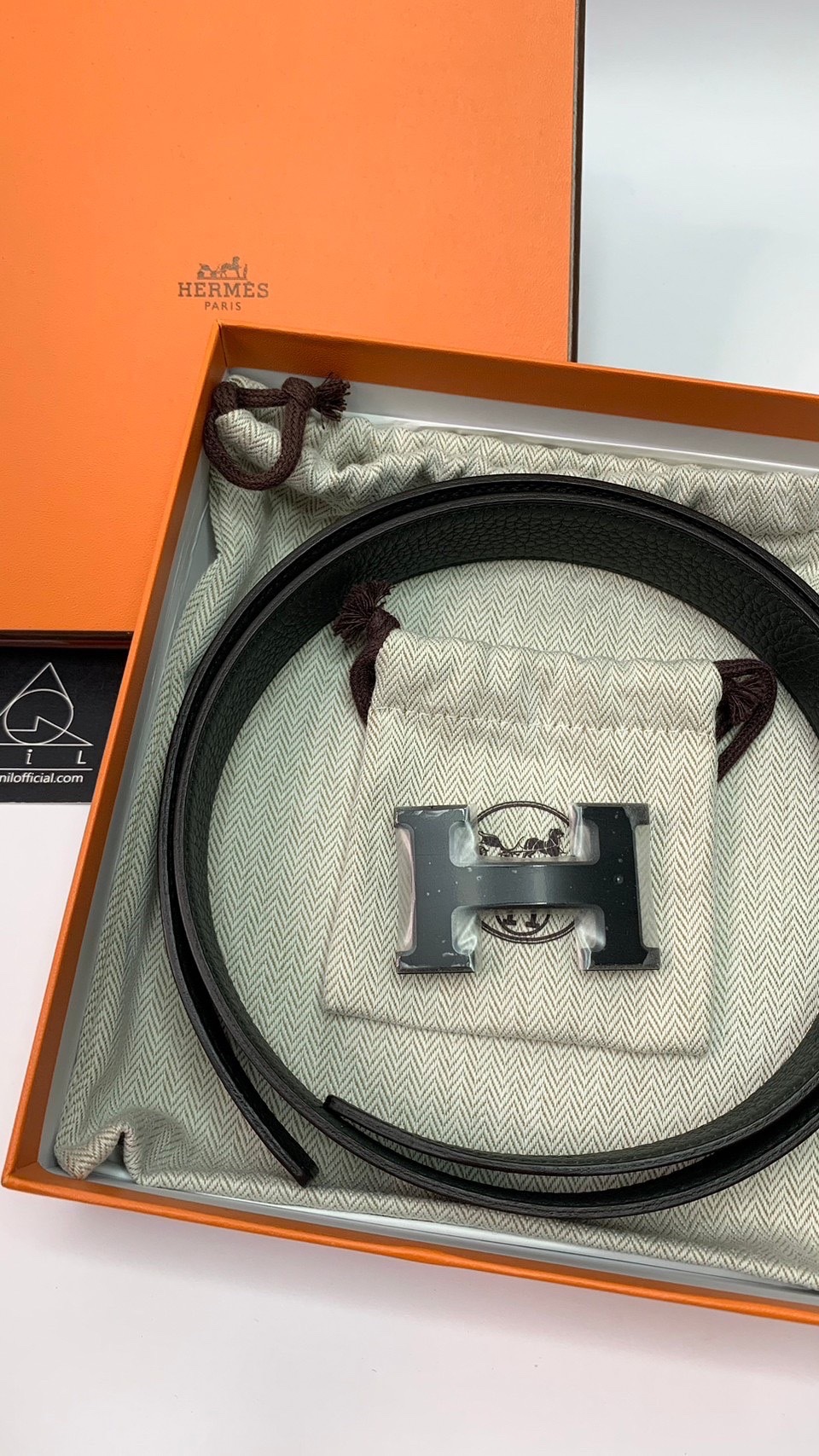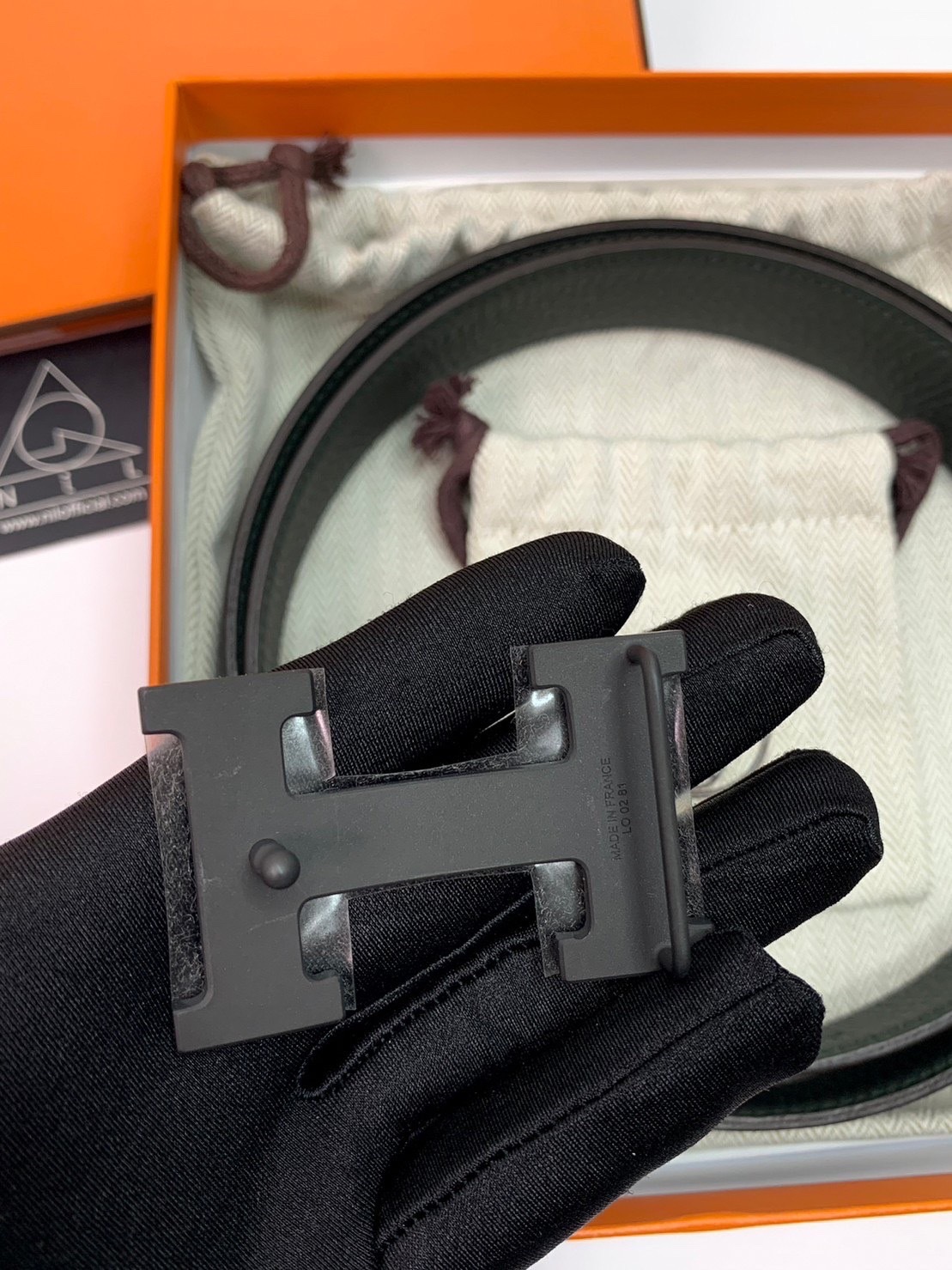 Hermes 愛馬仕 經典黑色霧面H LOGO雙面兩穿小牛皮腰帶/皮帶