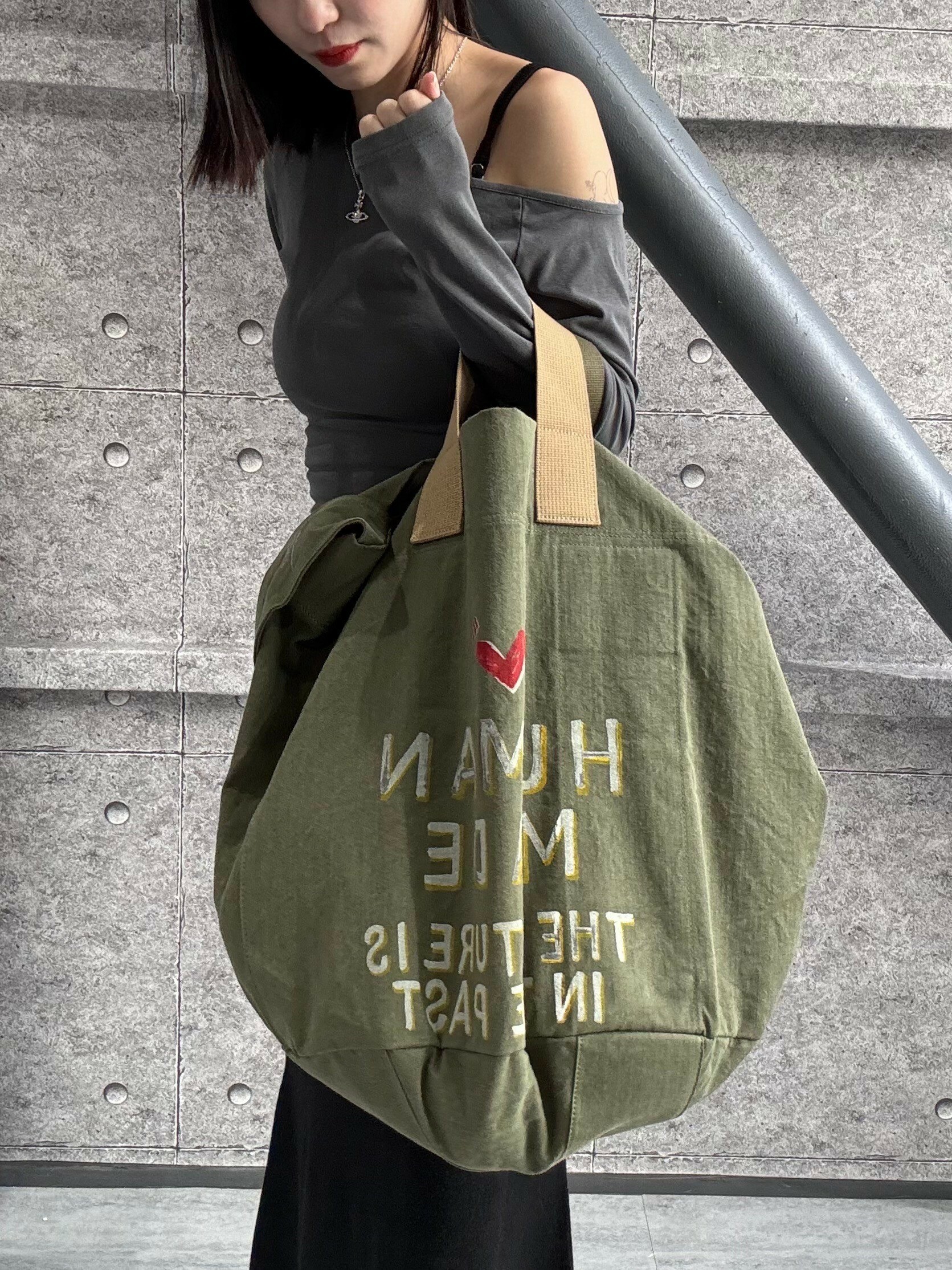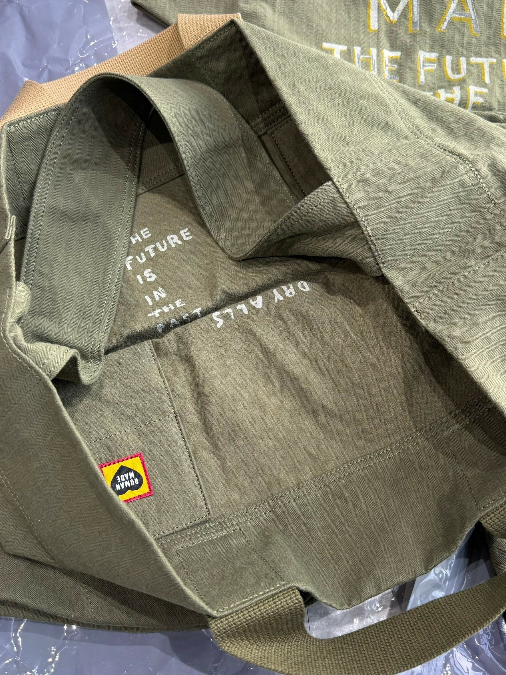HUMAN MADE 塗鴉軍布水桶包 軍綠色