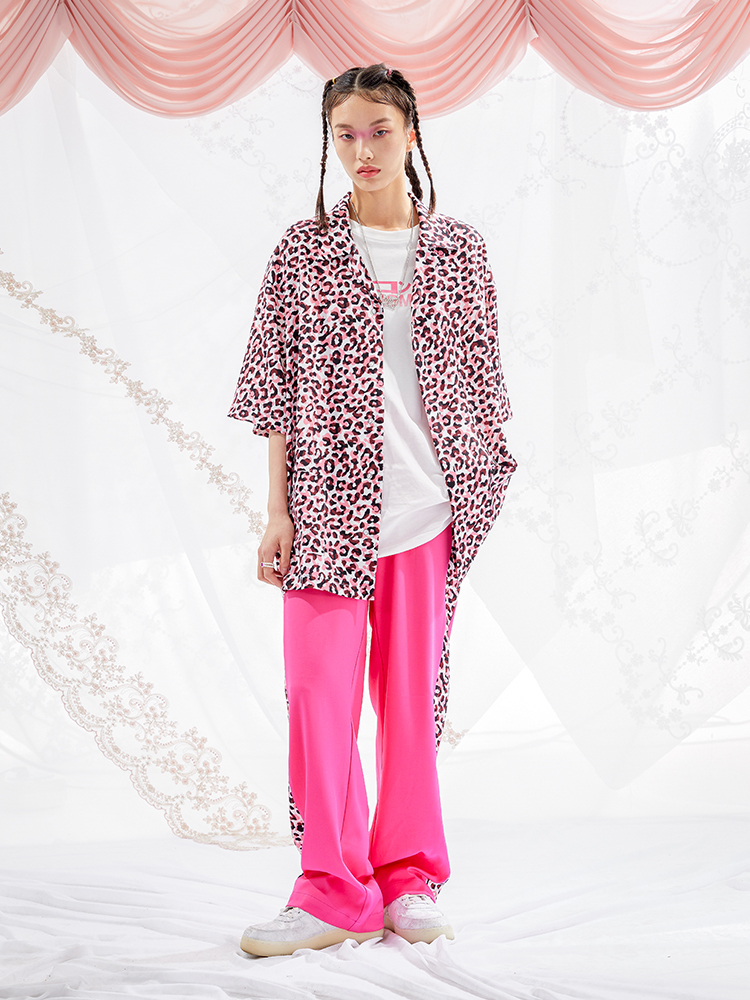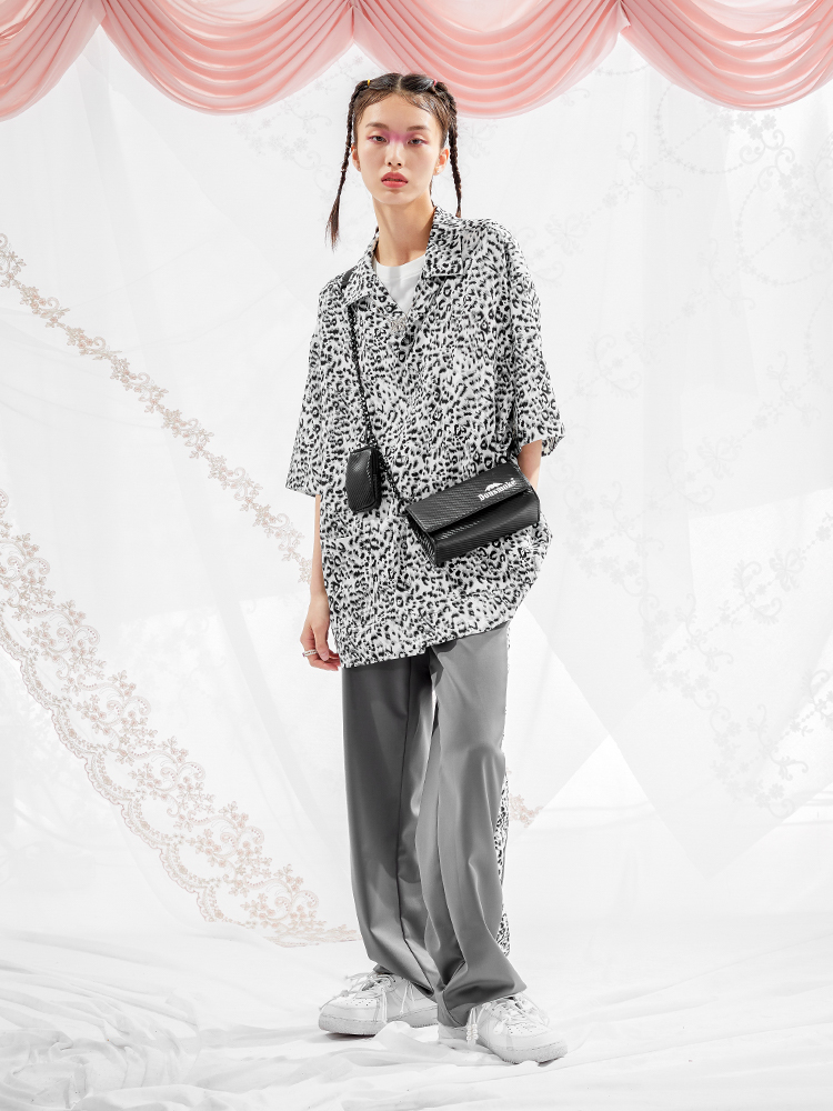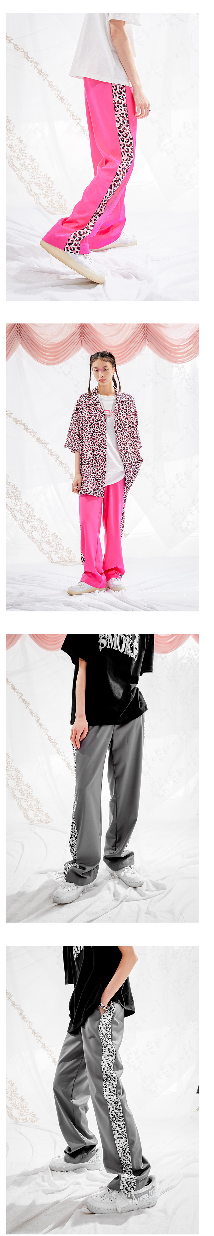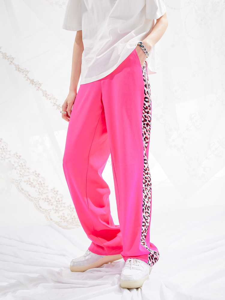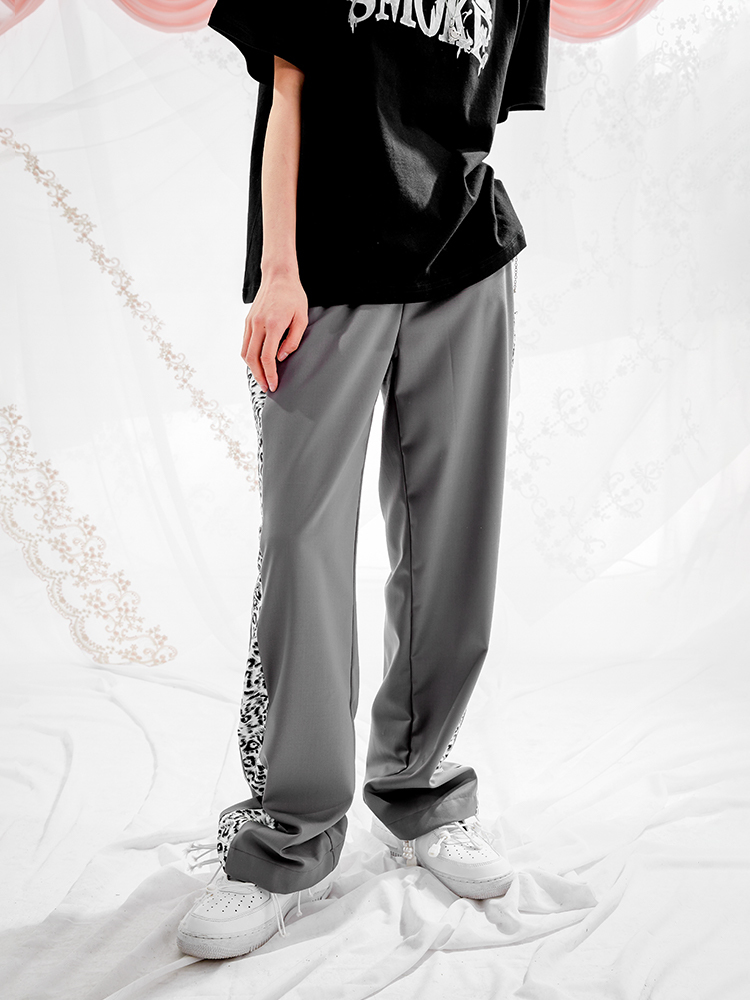 I do not smoke Leopard print stitching draped casual trousers DONSMOKE do not smoke
