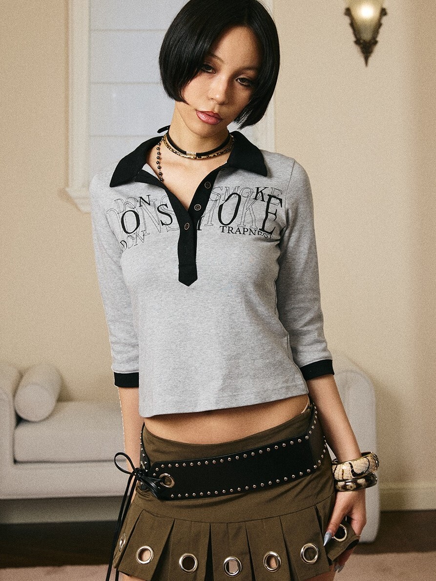 I DON‘T SMOKE X NANA 背圖印花 撞色 七分Polo長袖T DONSMOKE