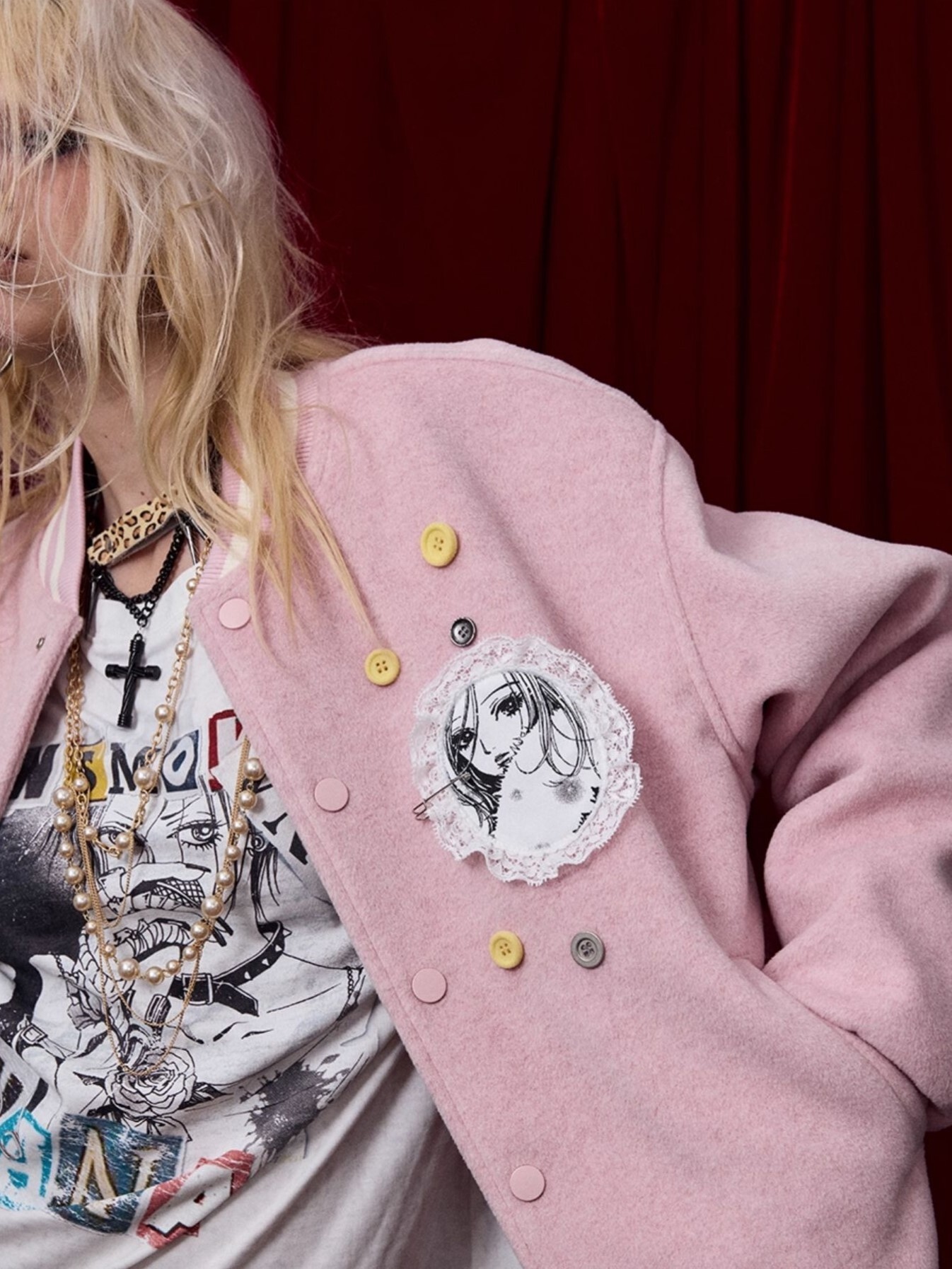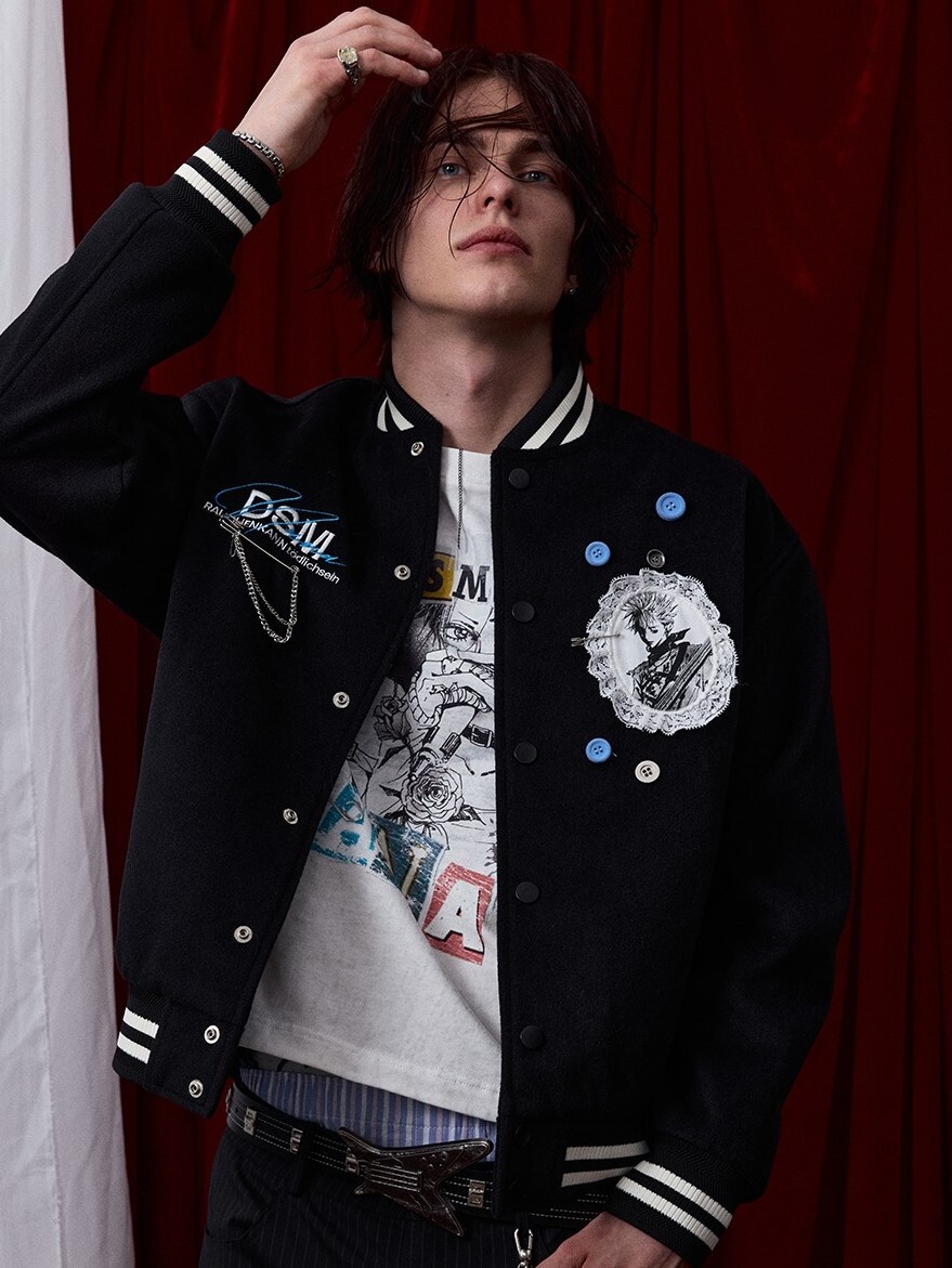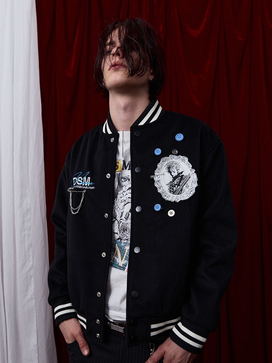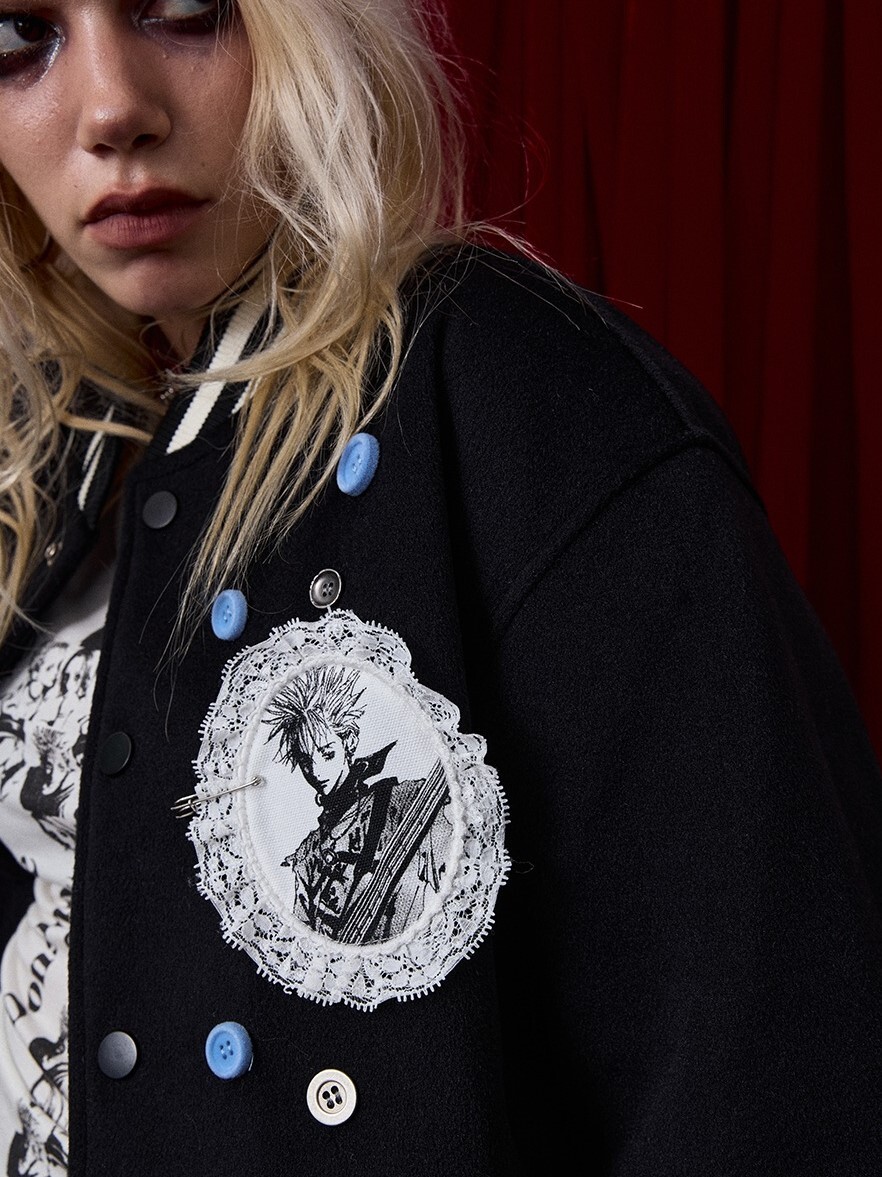 I DON'T SMOKE X NANA lace character embroidery button baseball jacket DONSMOKE