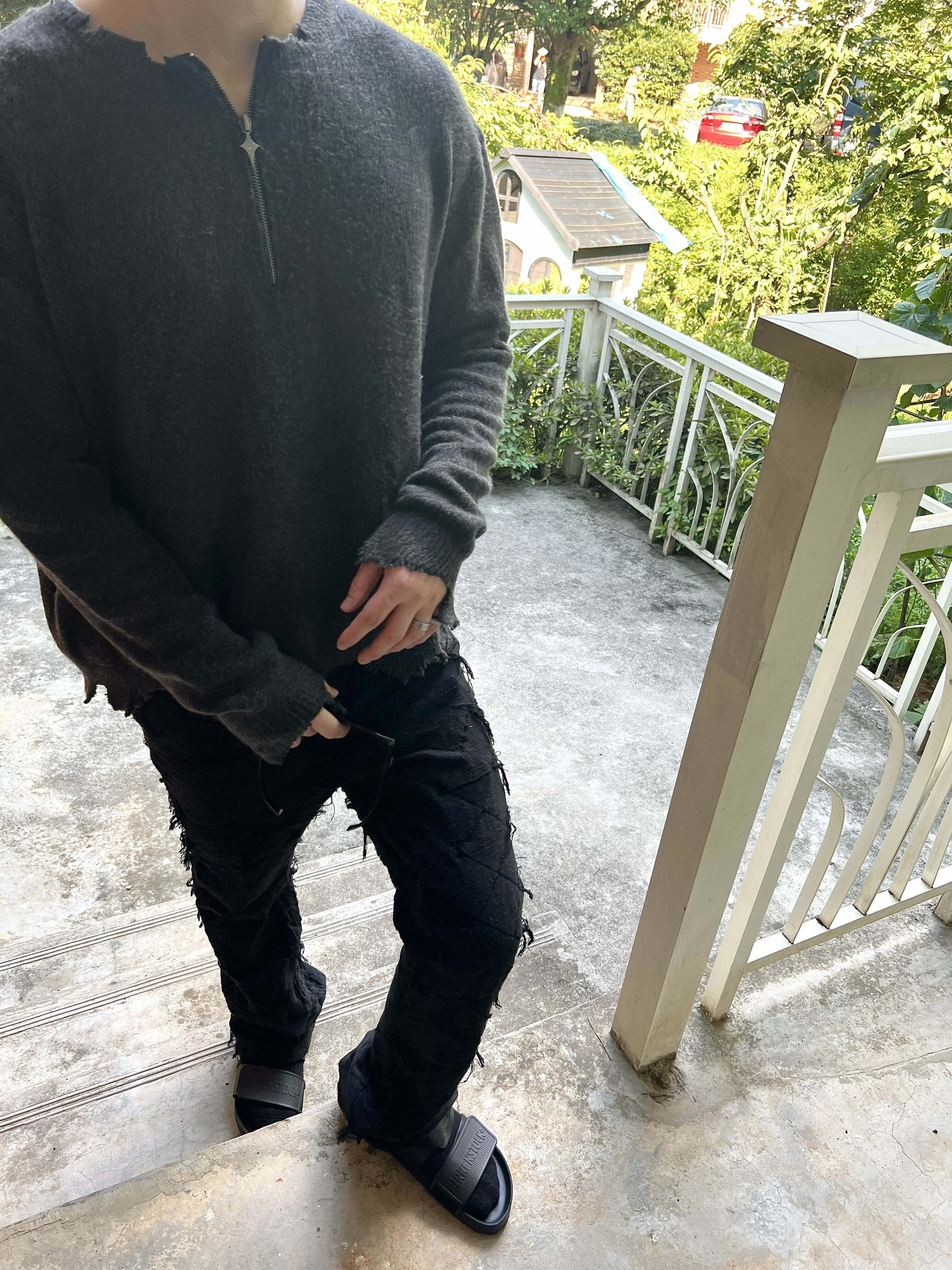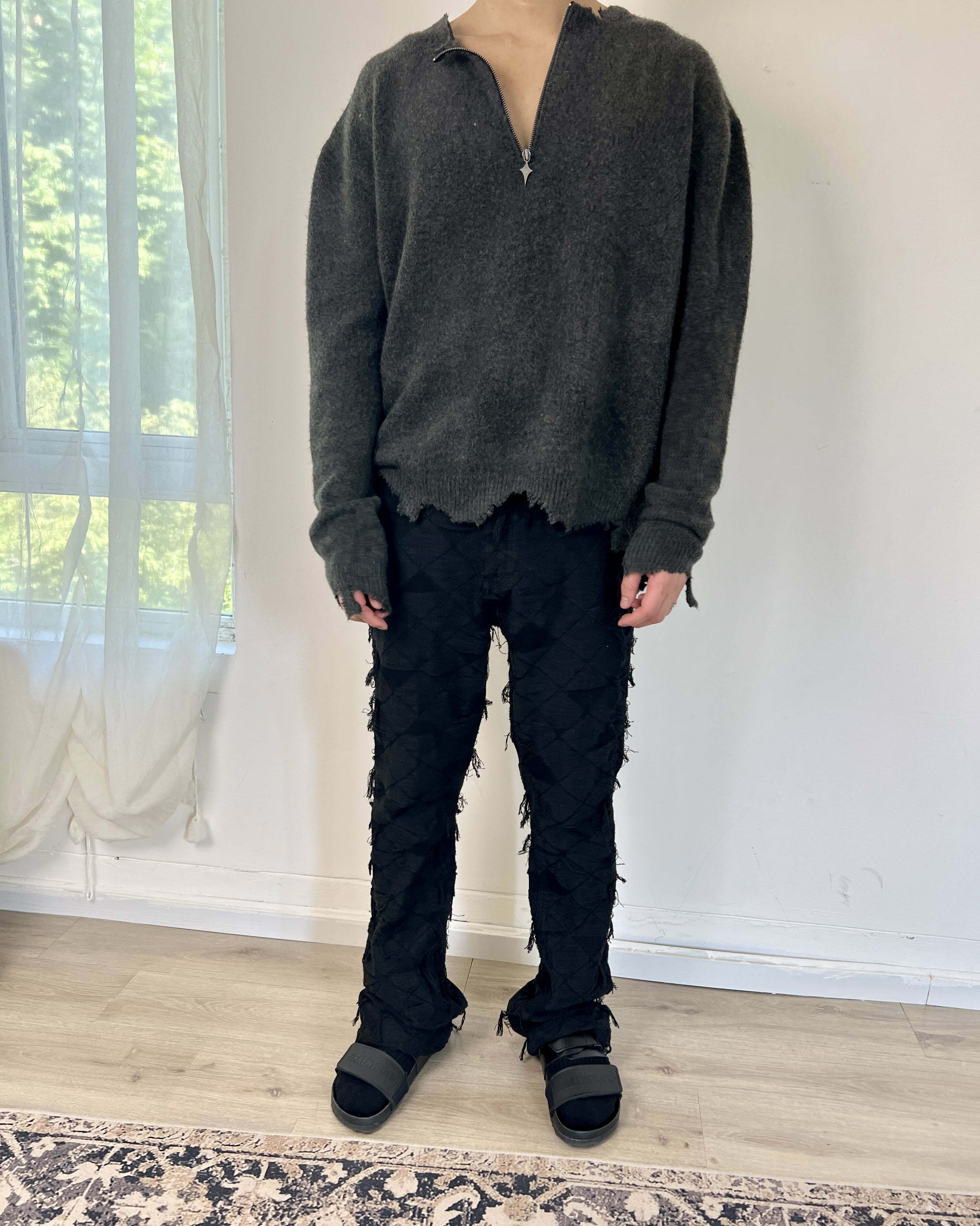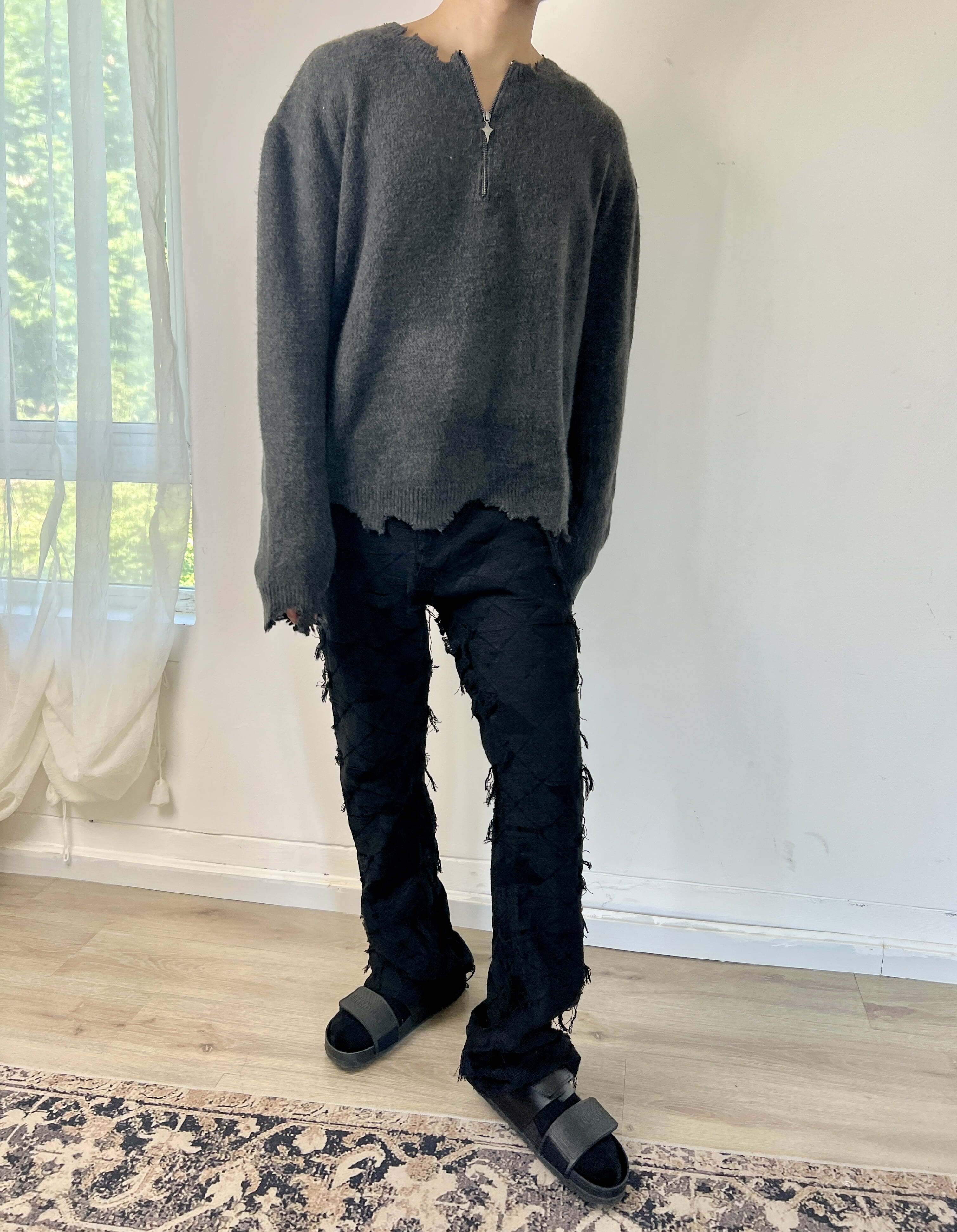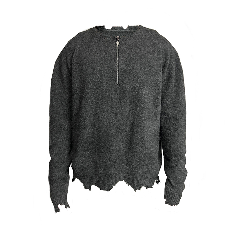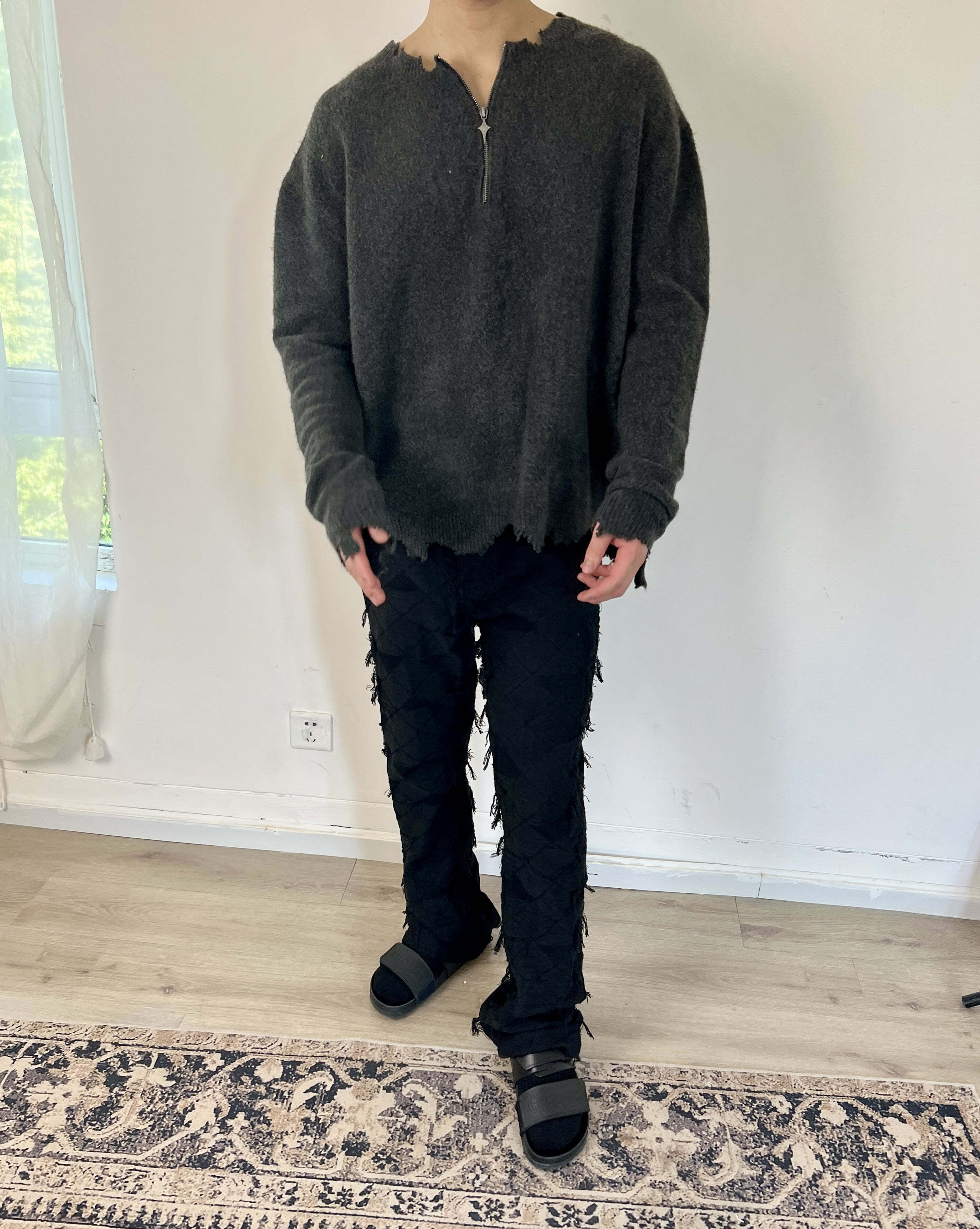 J CAESAR 22FW Half Zipper Sweater 灰色半拉鍊美式破壞毛衣
