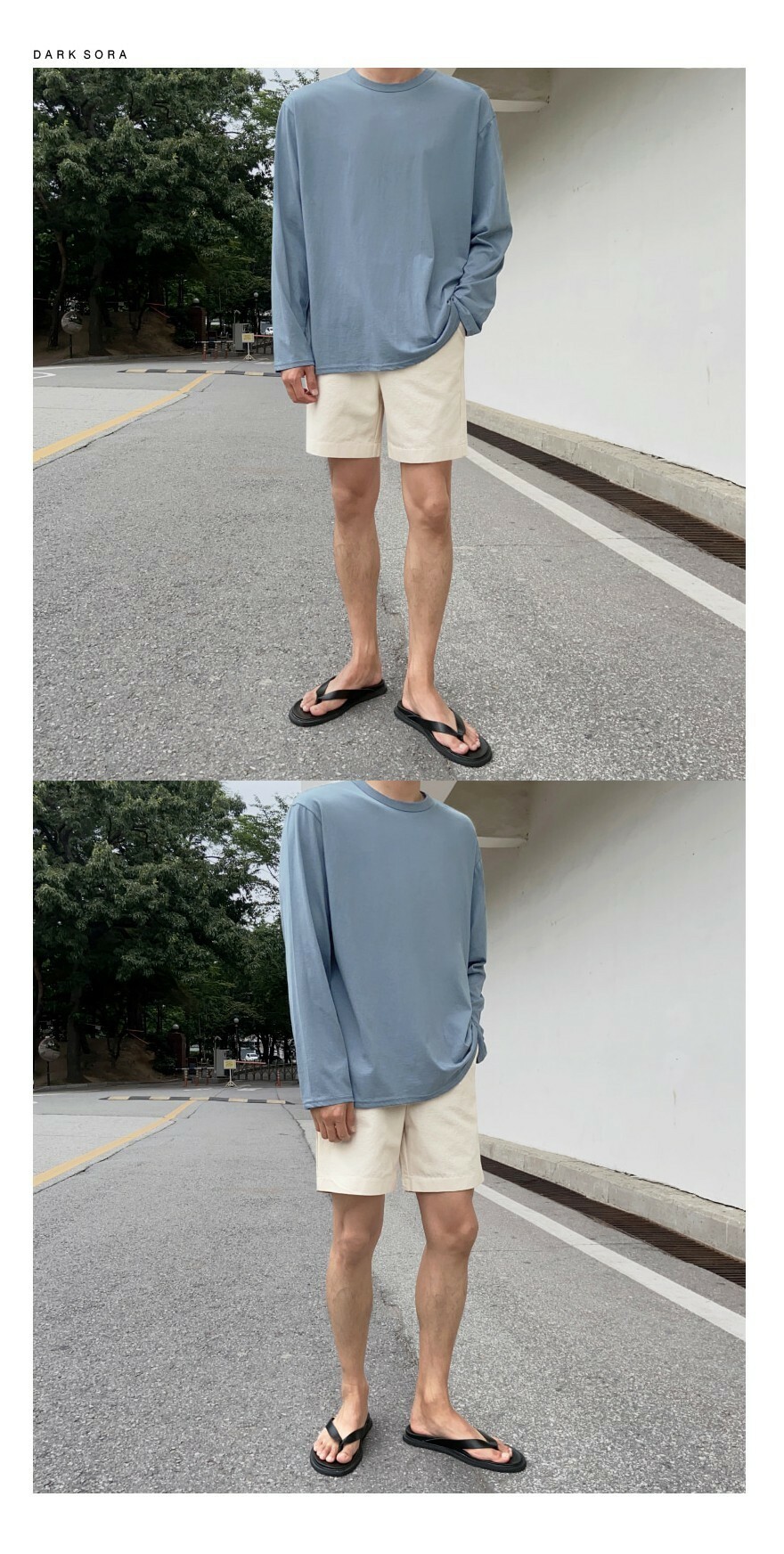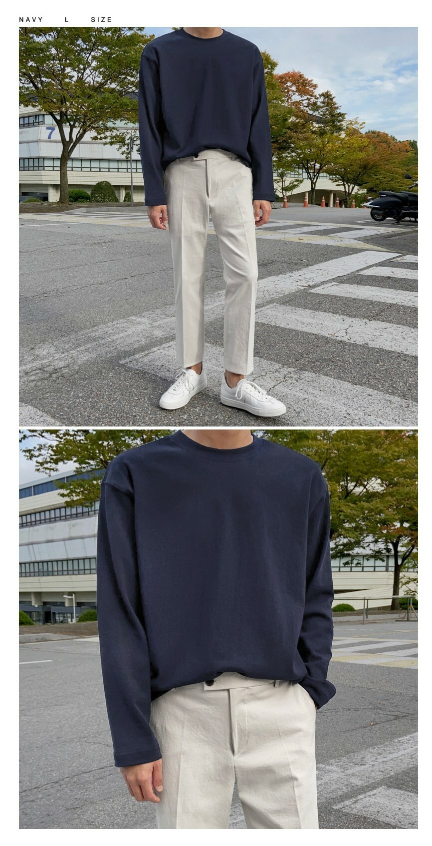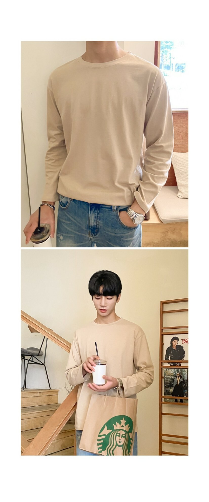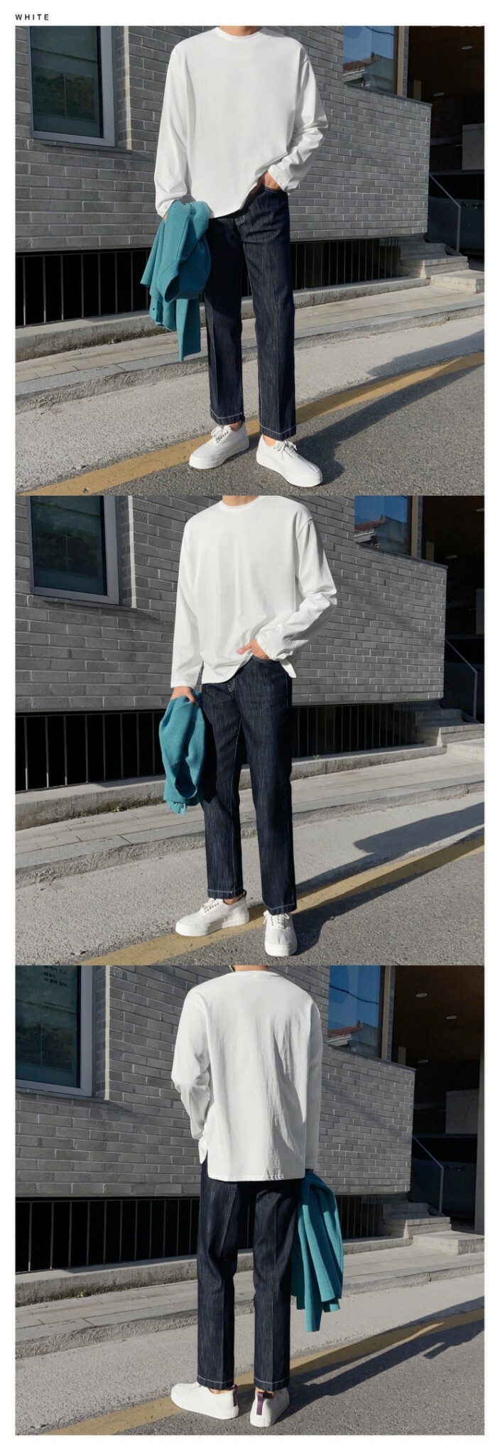 韓國 寬鬆百搭 素色薄長袖 單穿內搭長T 男女款 情侶衣