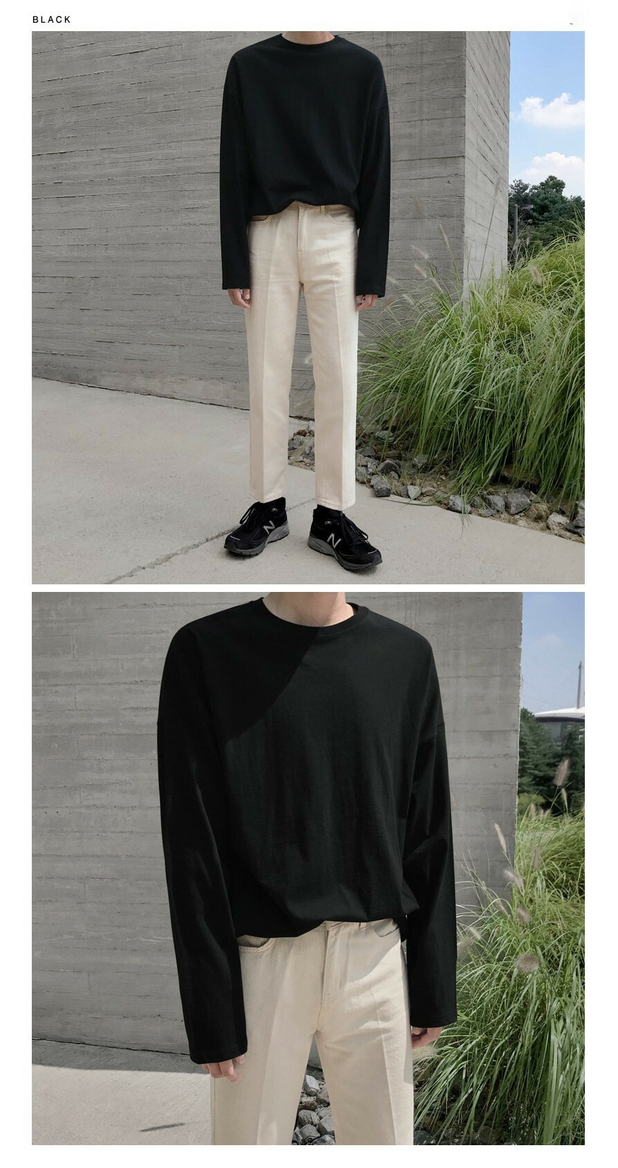 全部商品 / 韓國 寬鬆百搭 素色薄長袖 單穿內搭長T 男女款 情侶衣
