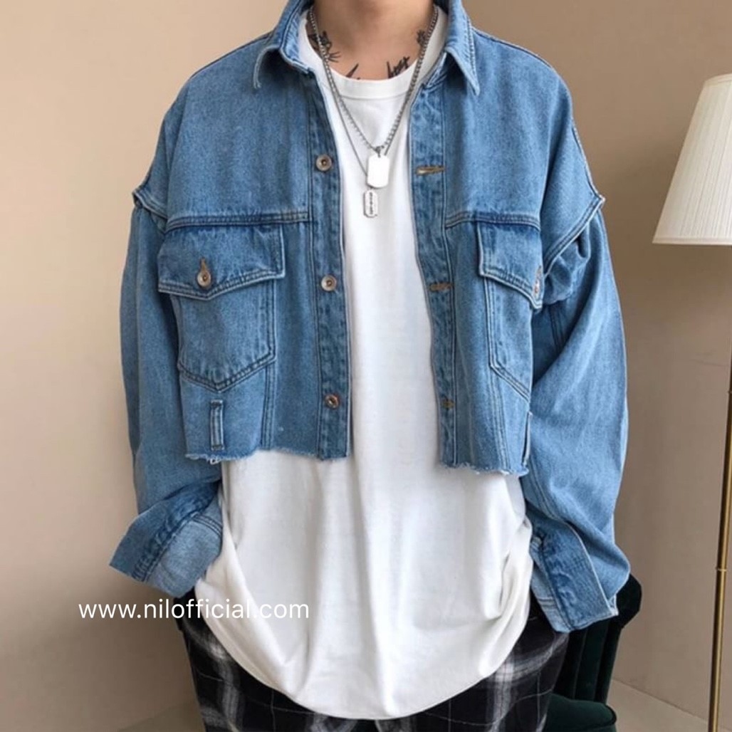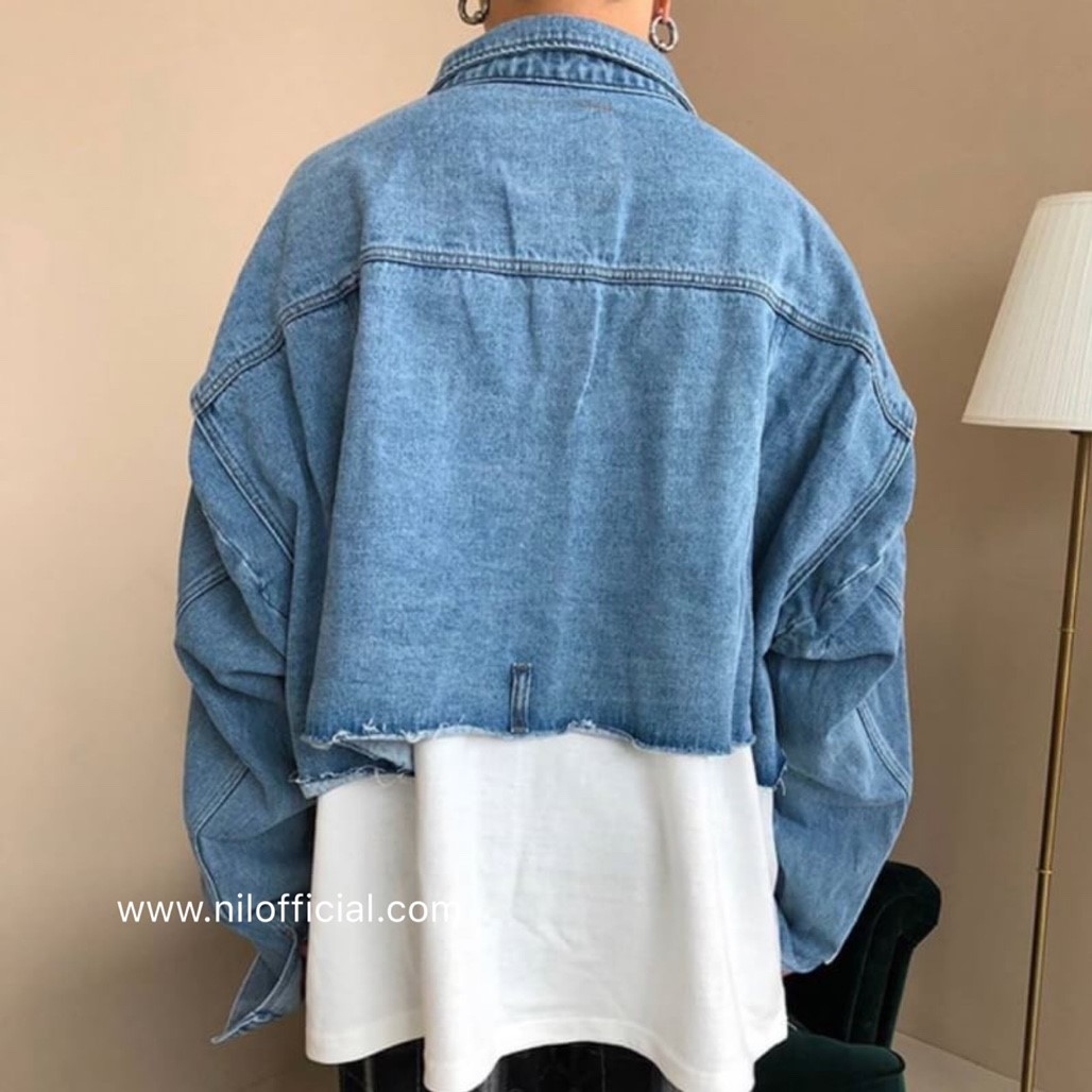 韓國 短板落肩寬鬆牛仔外套