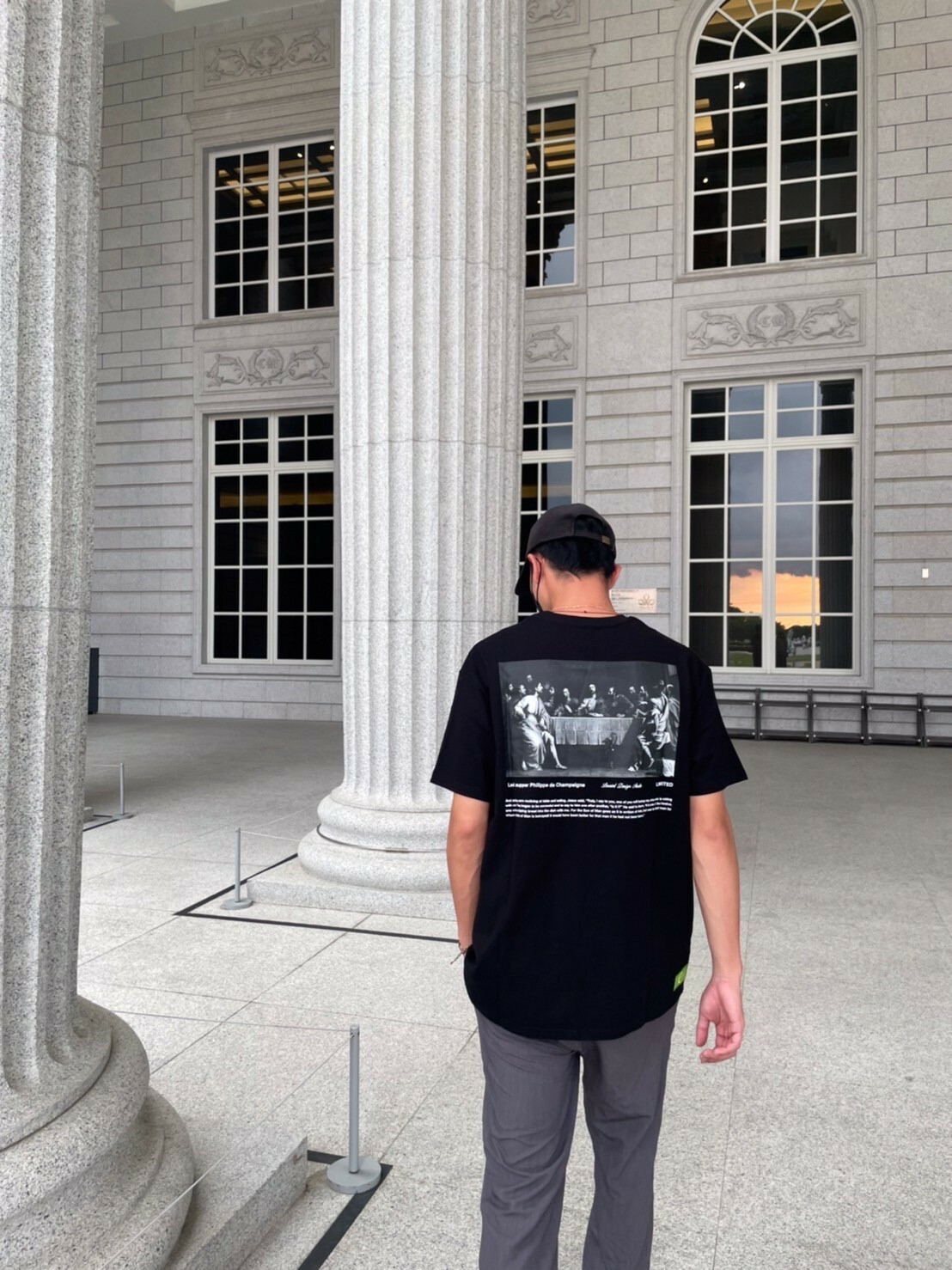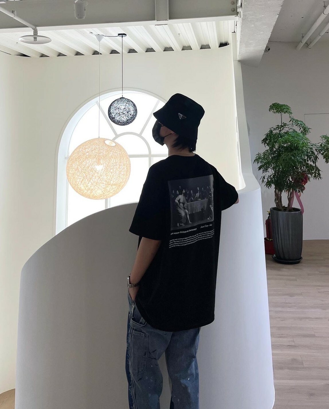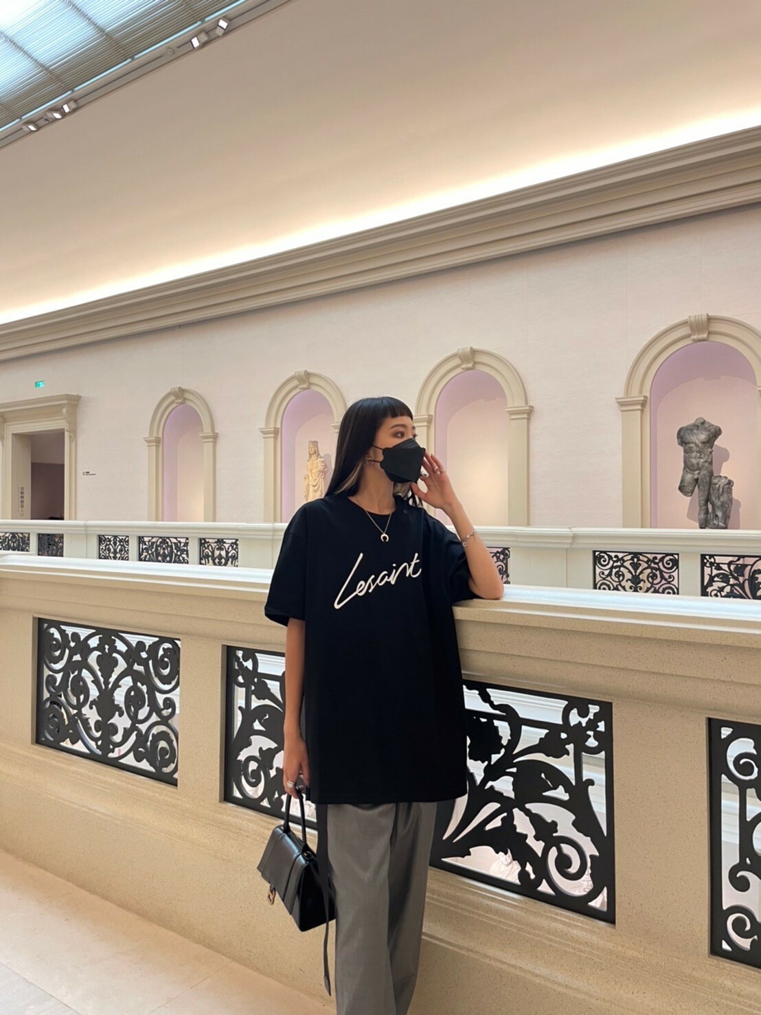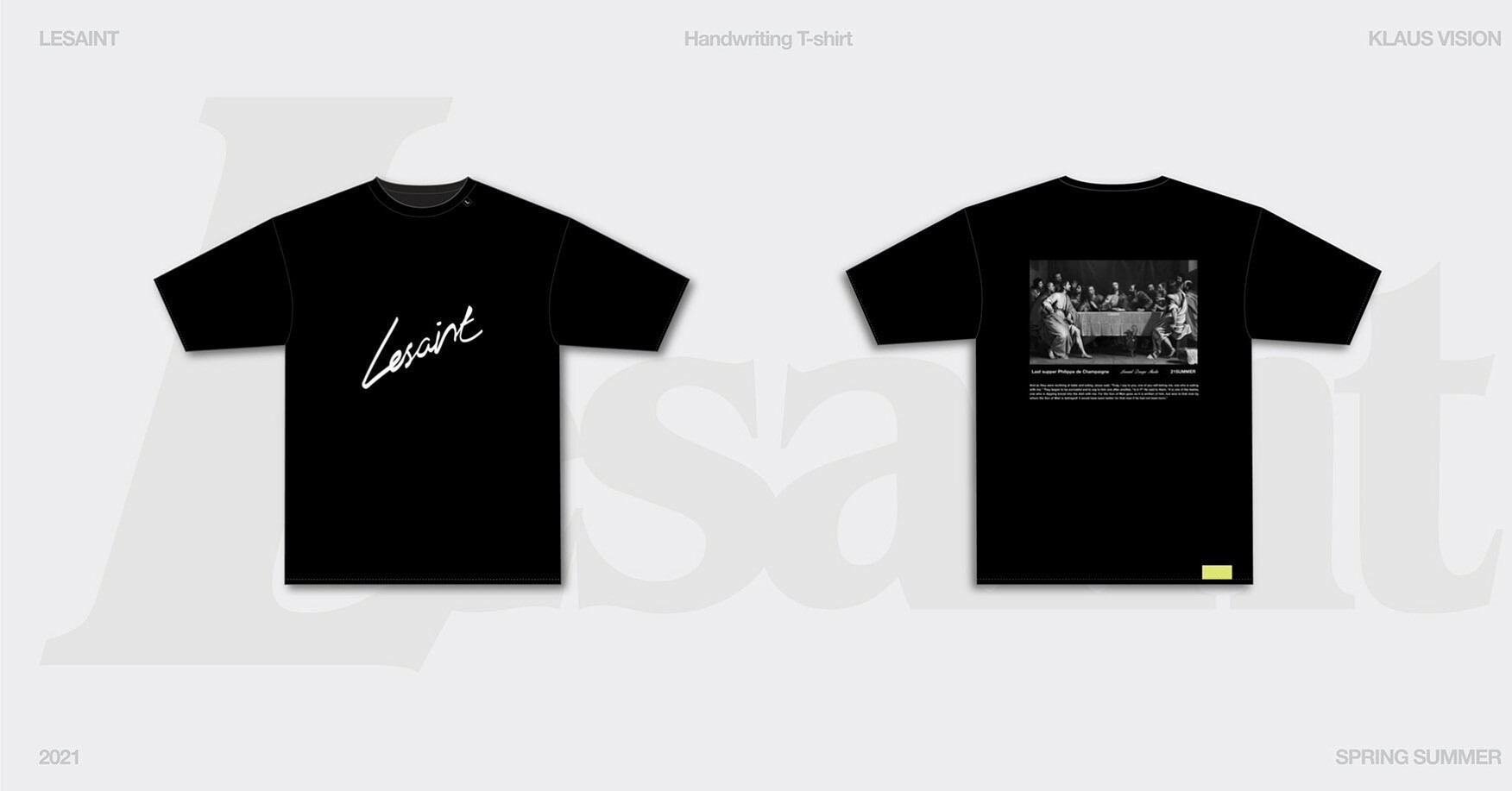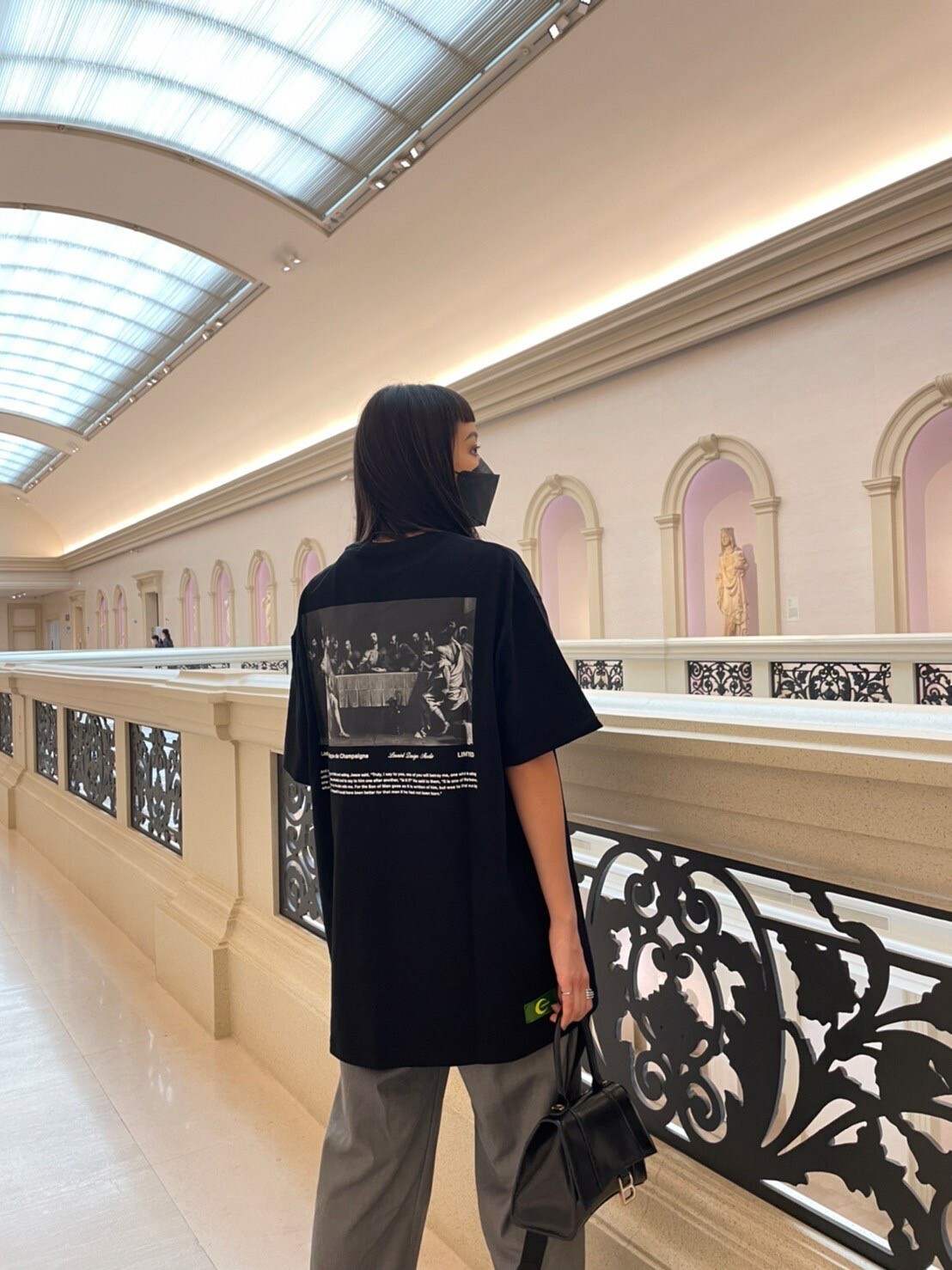 Korean brand LESAINT new last supper religious oil painting negative black and gray loose slogan short sleeve T
