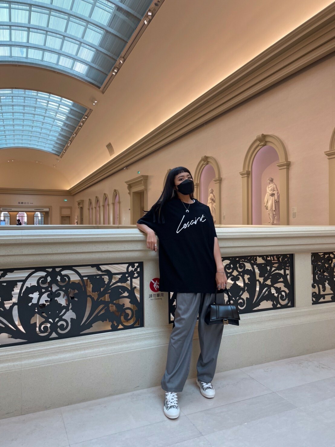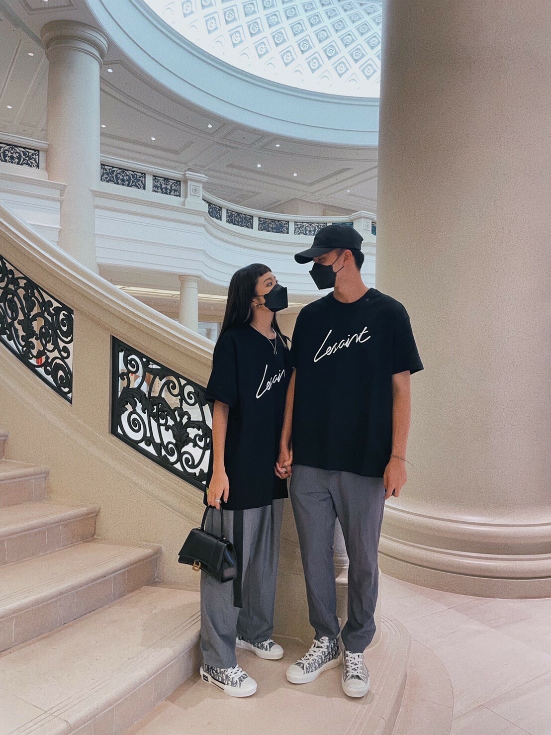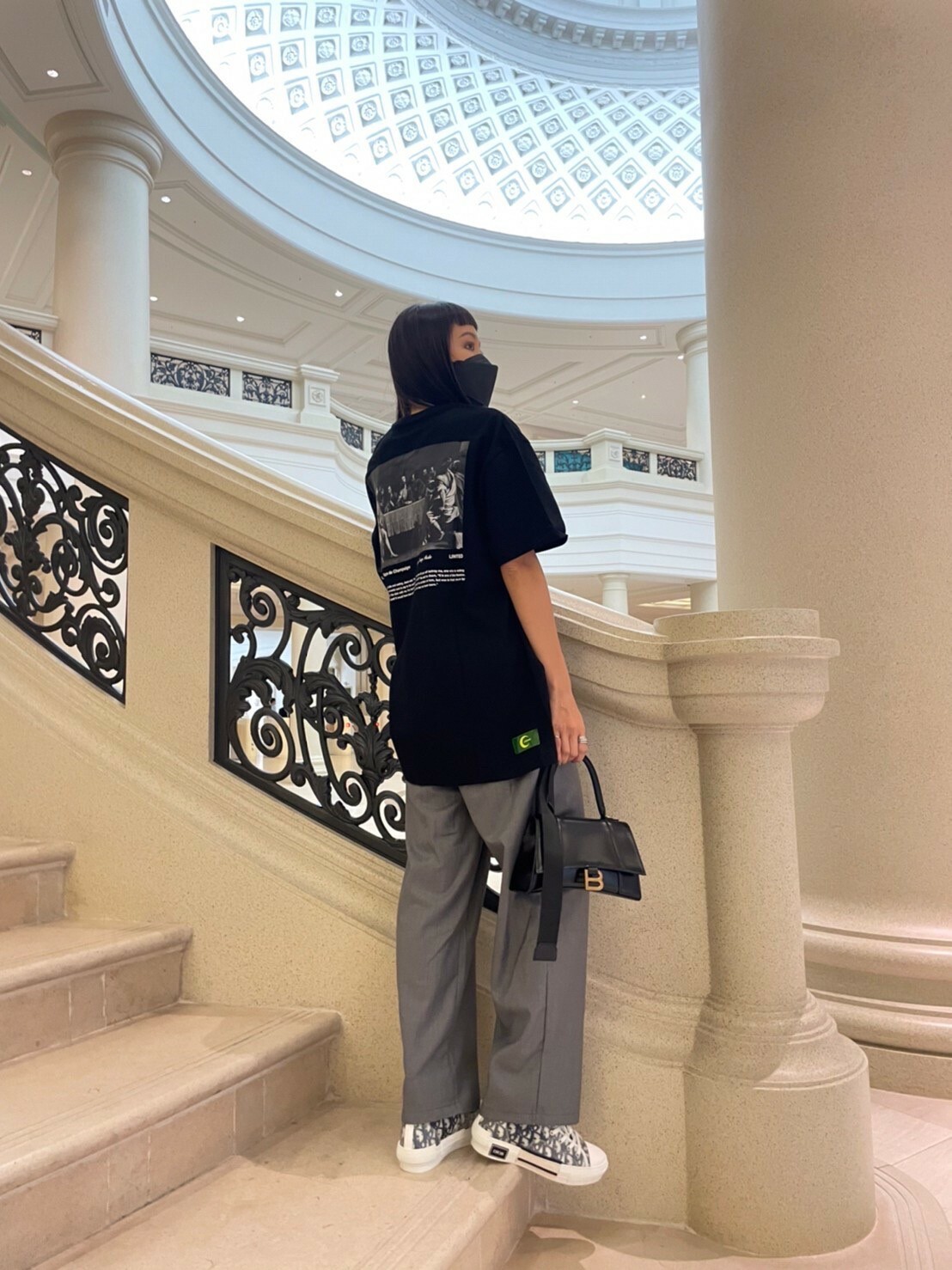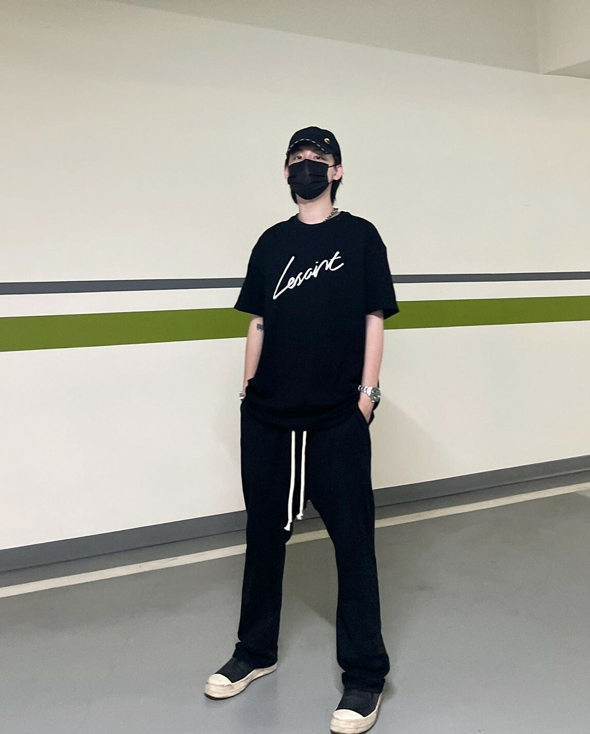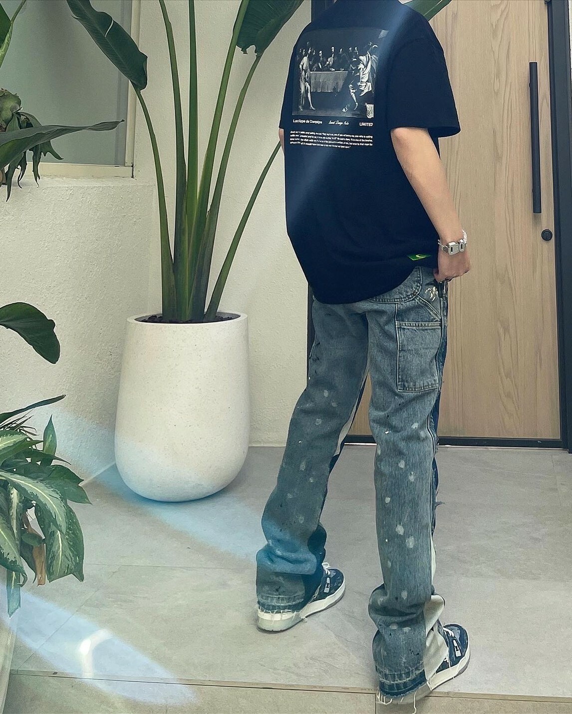Korean brand LESAINT new last supper religious oil painting negative black and gray loose slogan short sleeve T