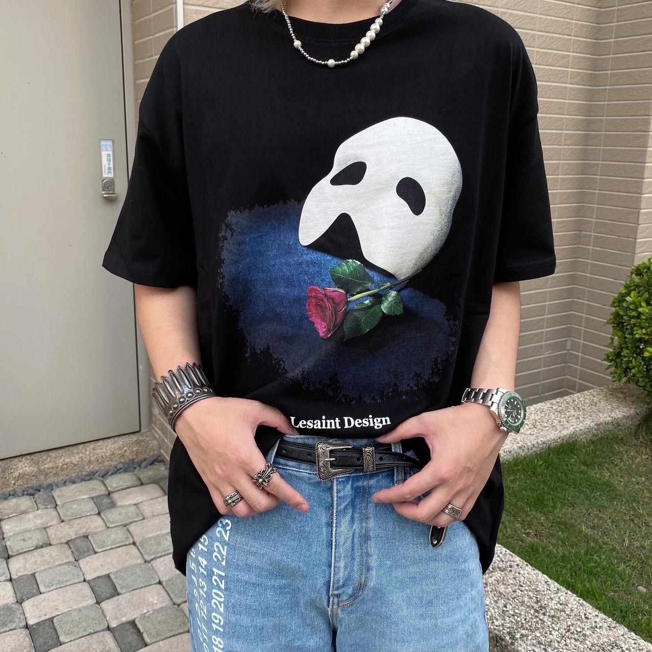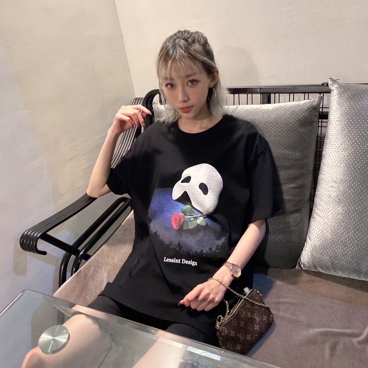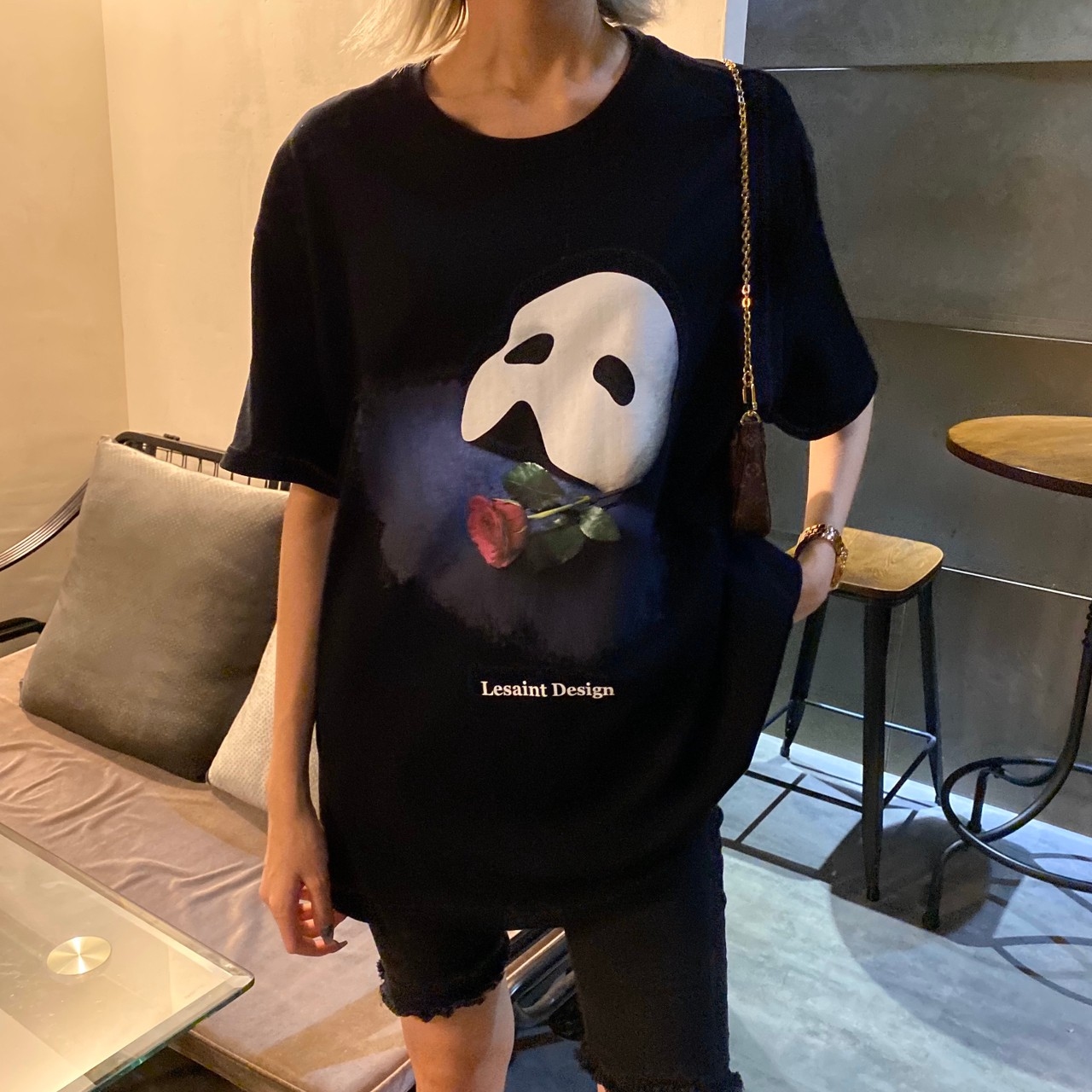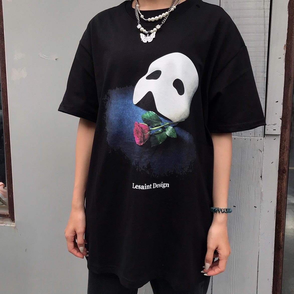 Korean brand LESAINT Phantom of the Opera Mask Rose Mottled Short Sleeve Tee