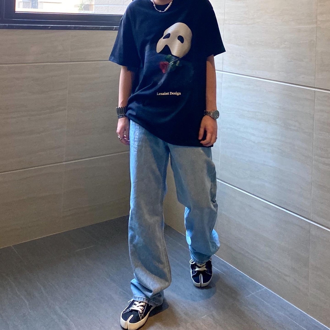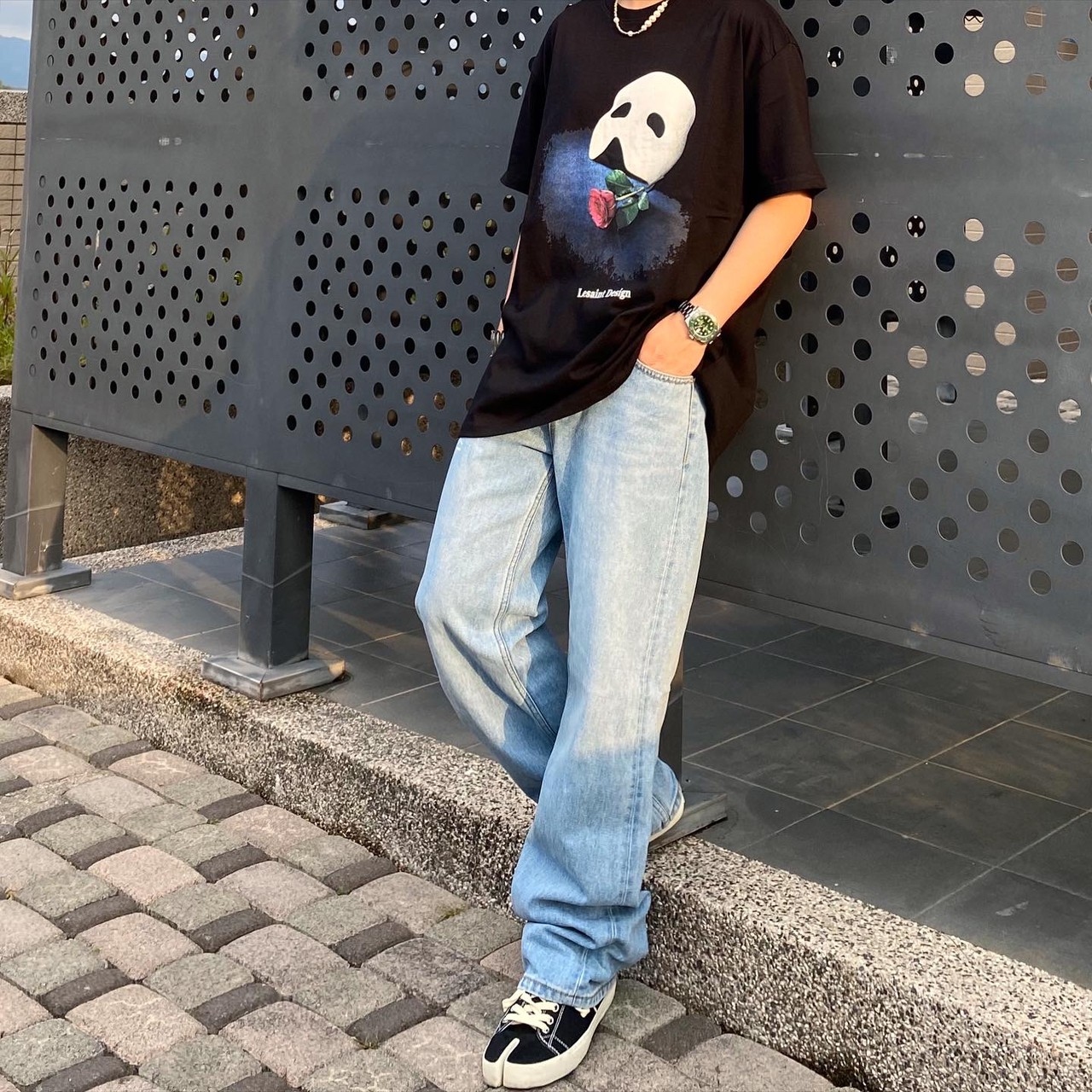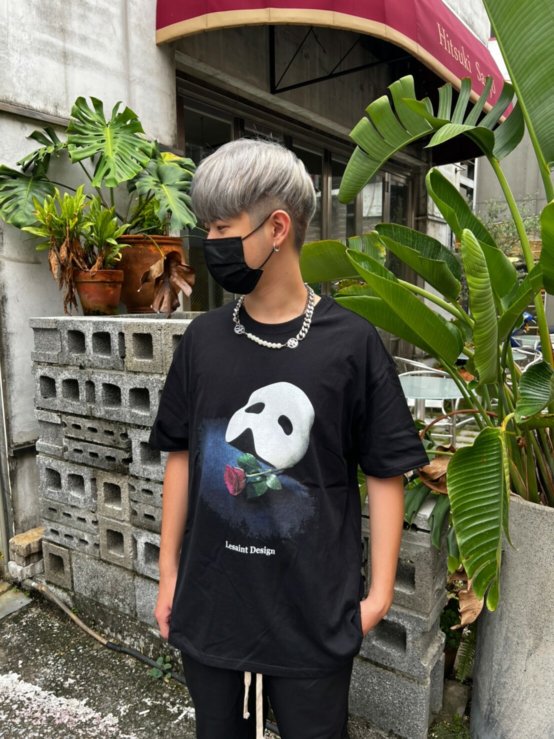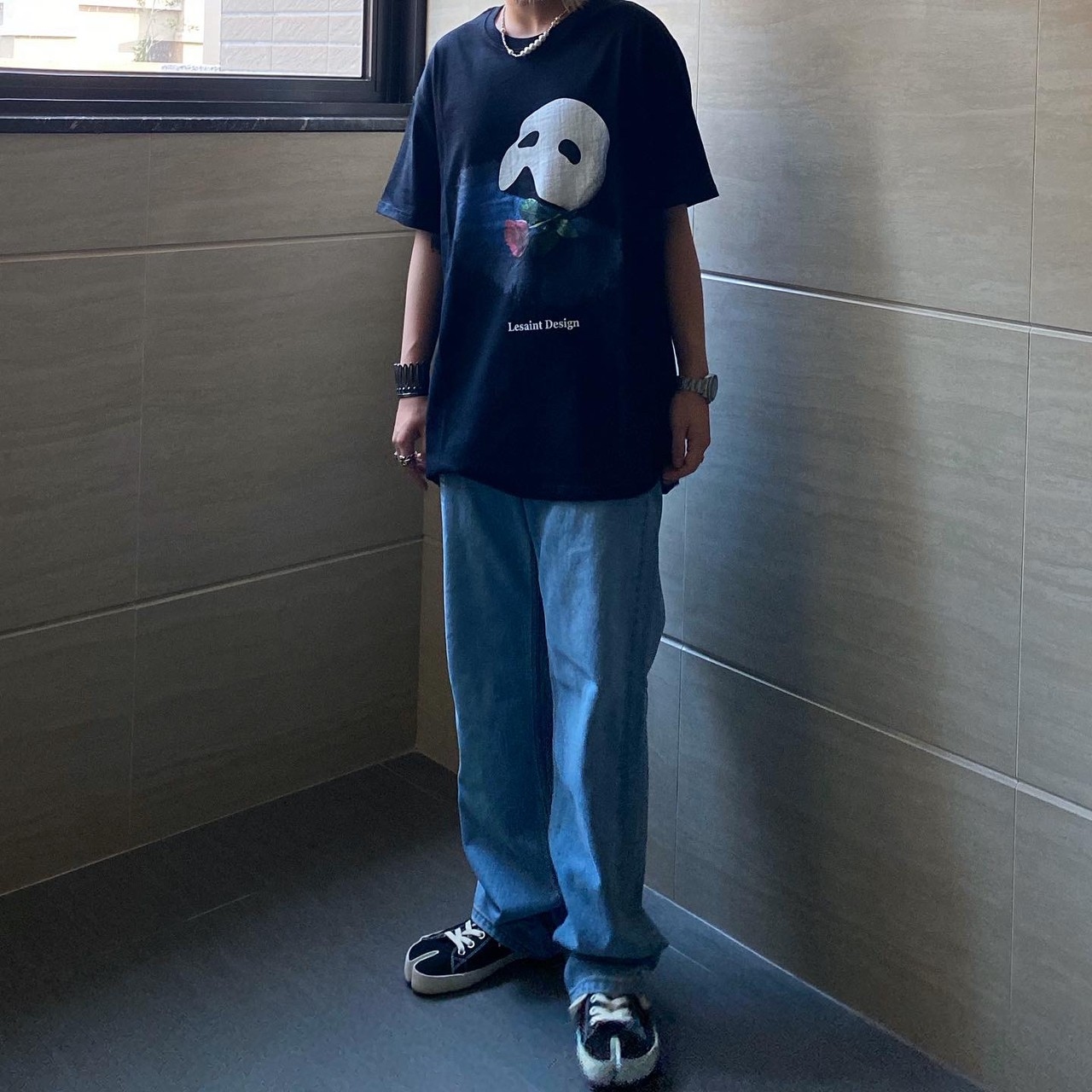 Korean brand LESAINT Phantom of the Opera Mask Rose Mottled Short Sleeve Tee