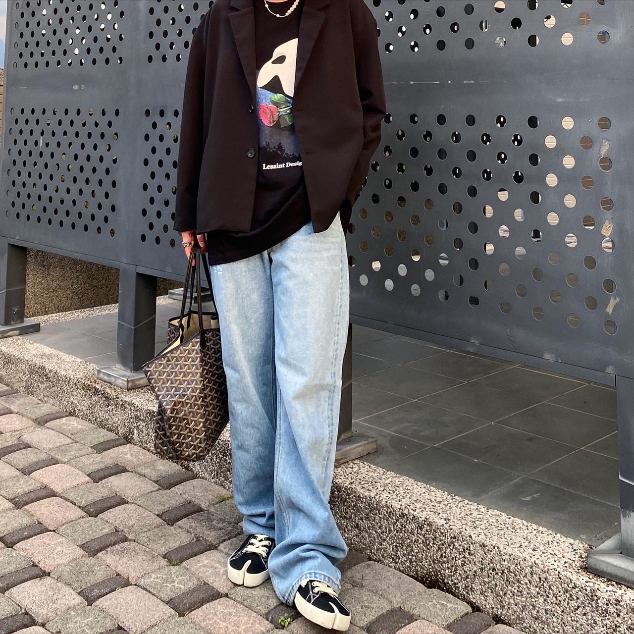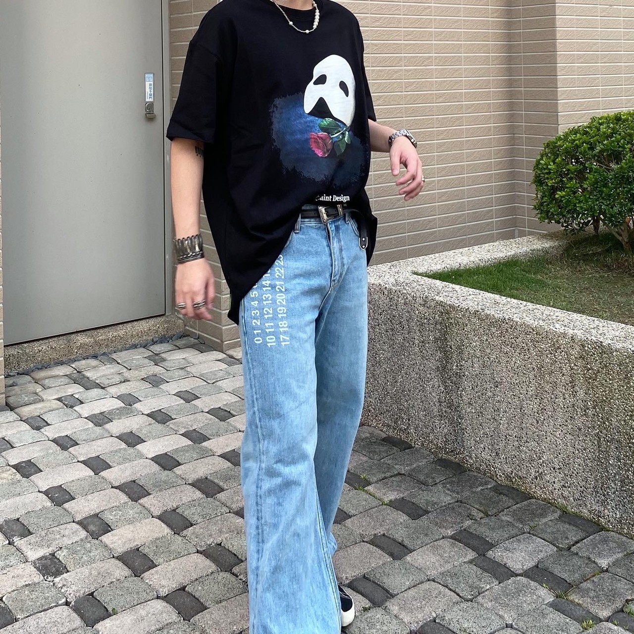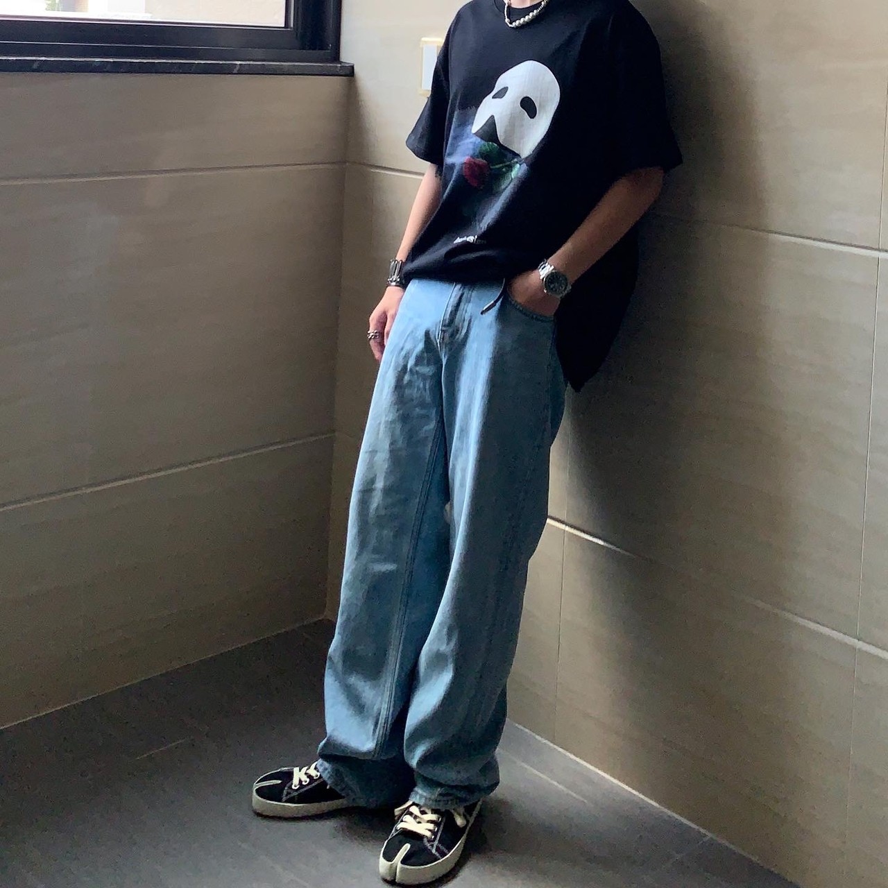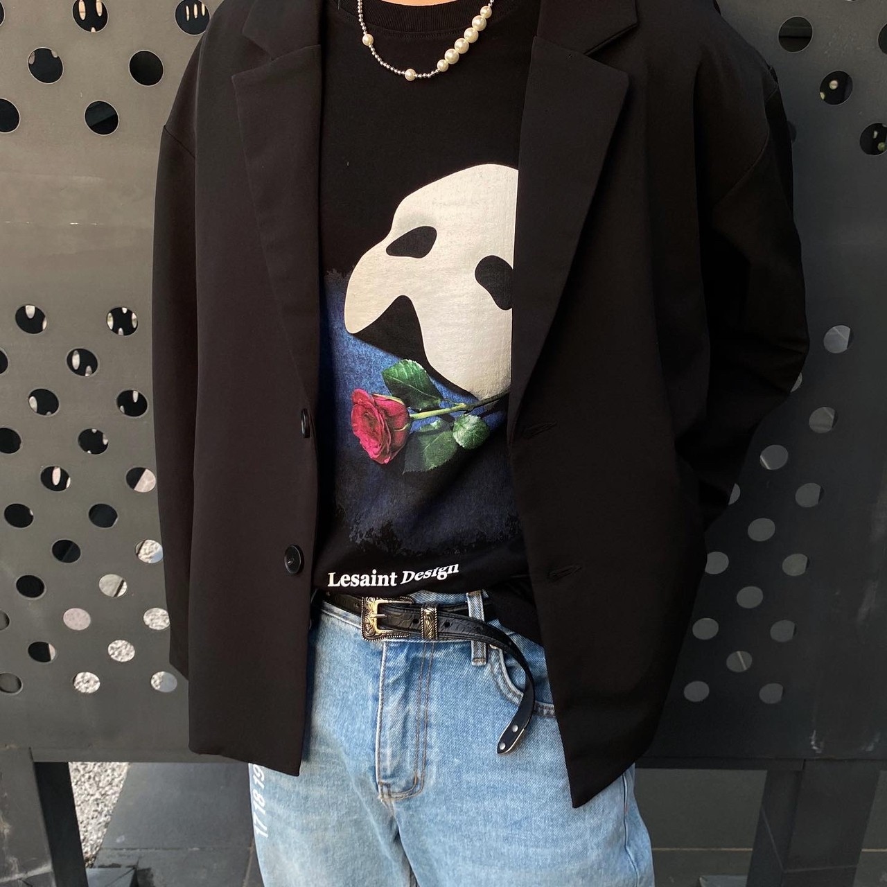 Korean brand LESAINT Phantom of the Opera Mask Rose Mottled Short Sleeve Tee