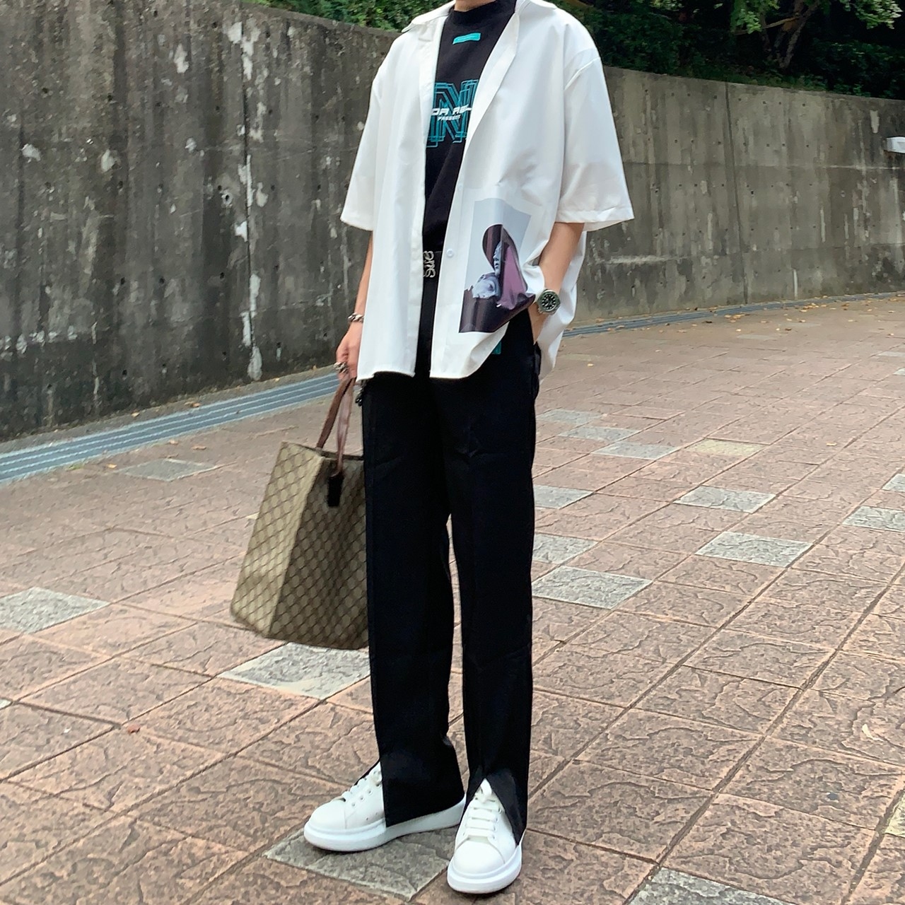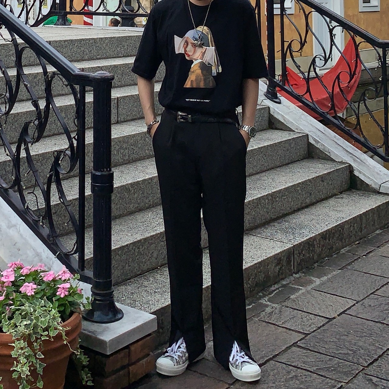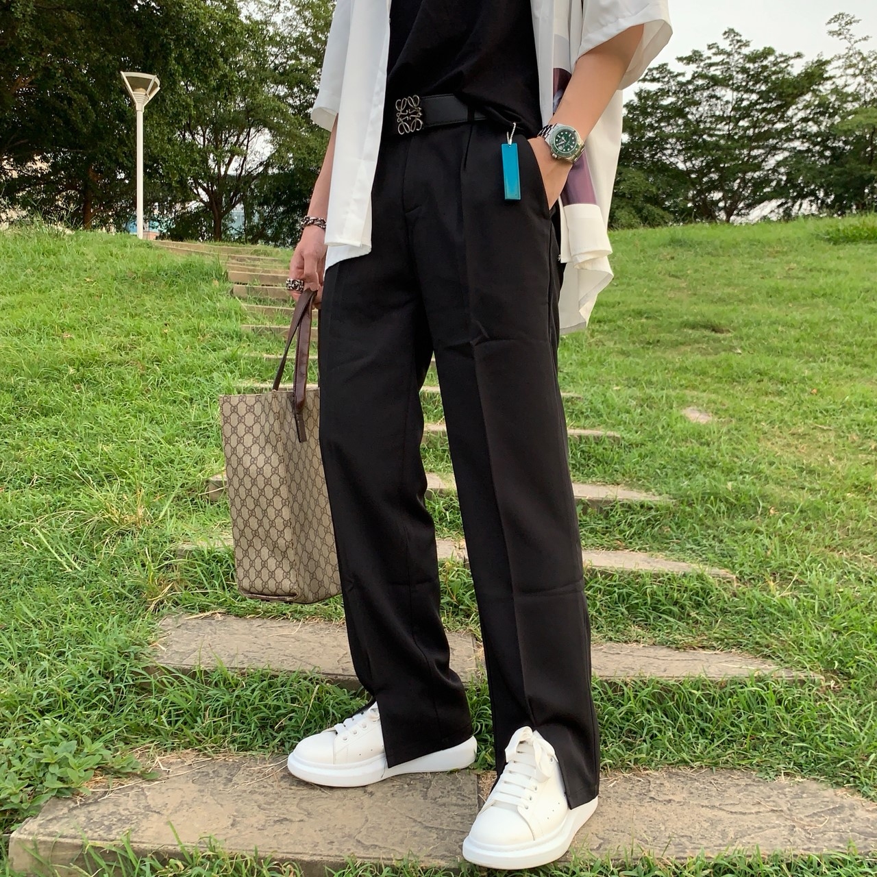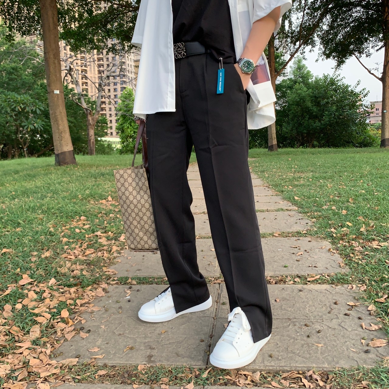 韓國 前開岔 闊腿 西裝褲