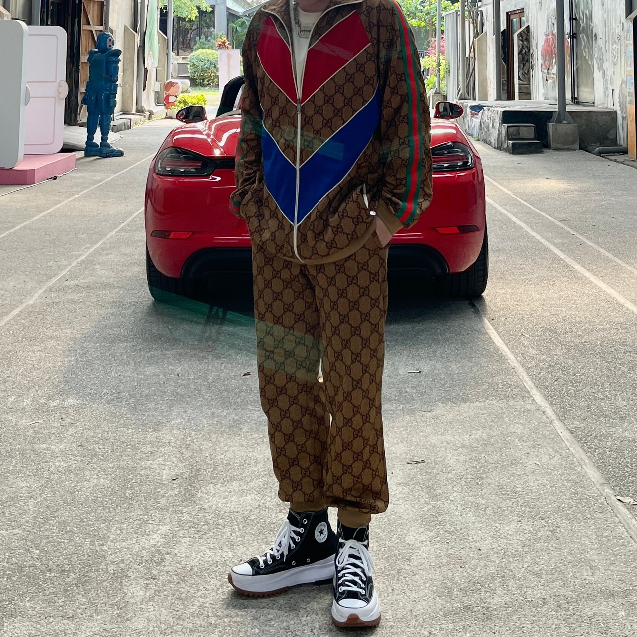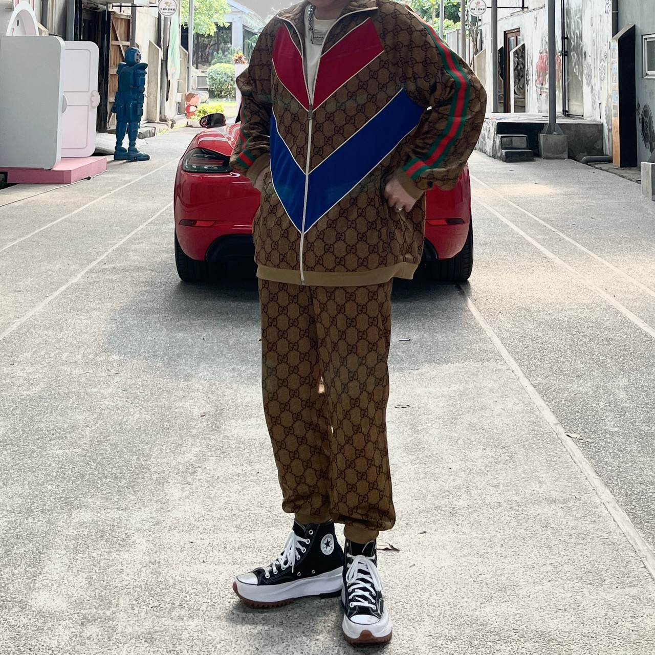 Limited Time Discount GUCCI Classic Full Version Logo Big V Sports Suit Jacket Trousers