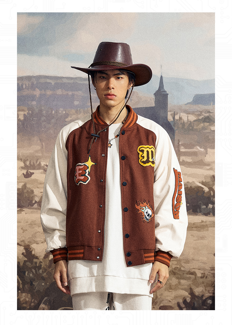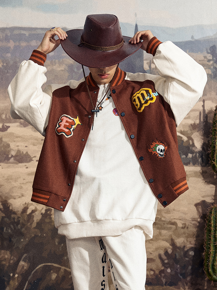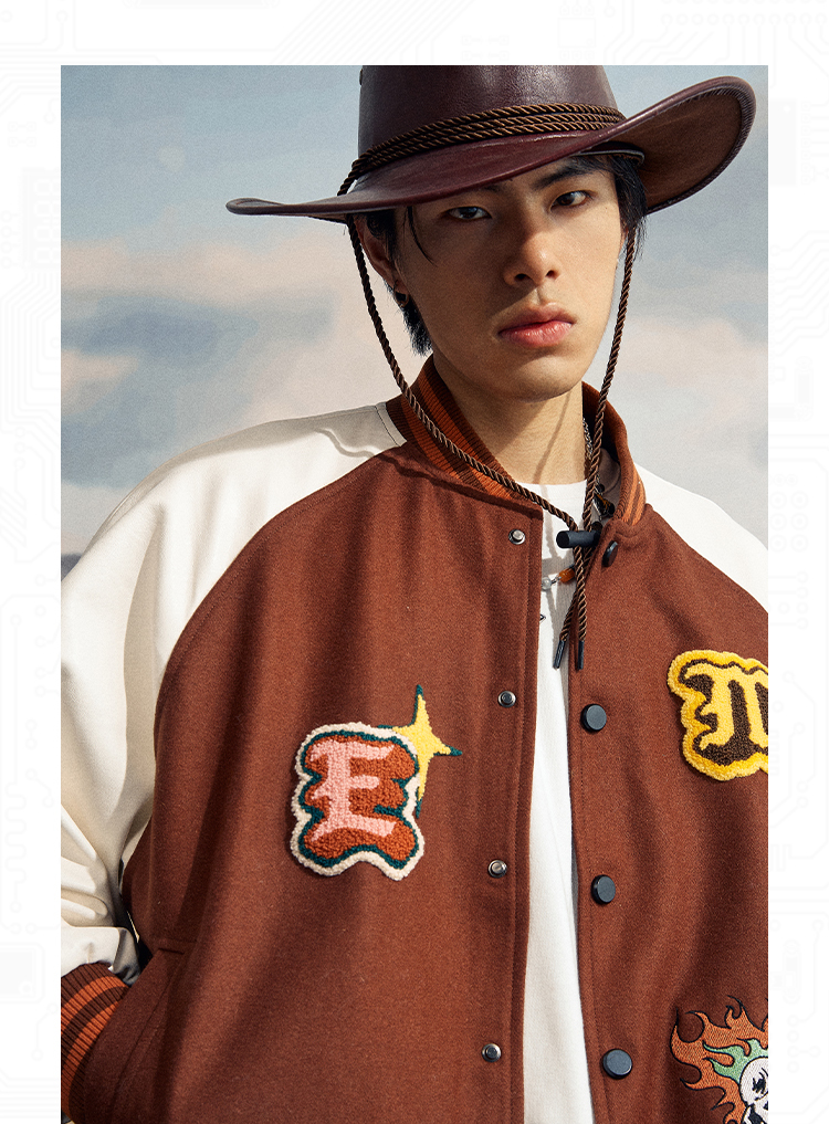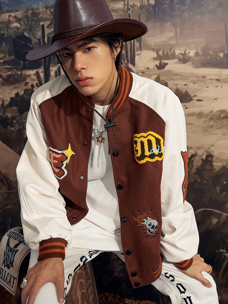 Maison Emerald 卡其毛巾繡字母棒球外套