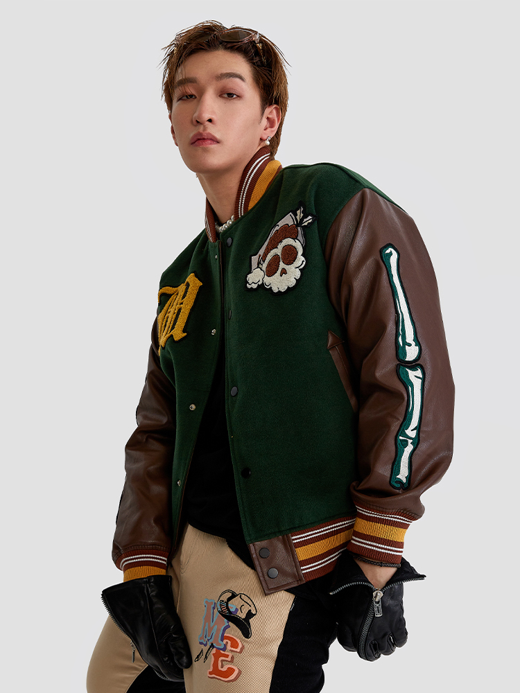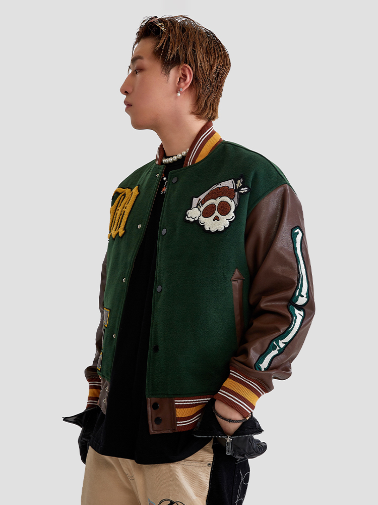Maison Emerald 復古骷髏圖像棒球外套