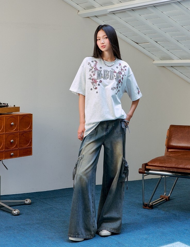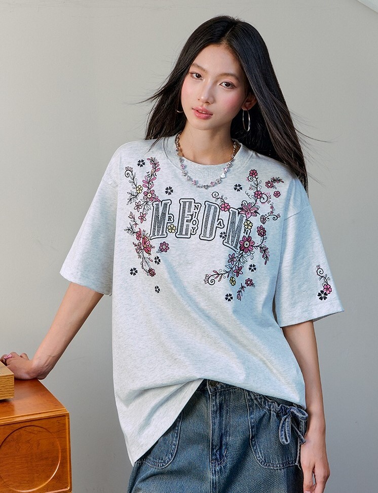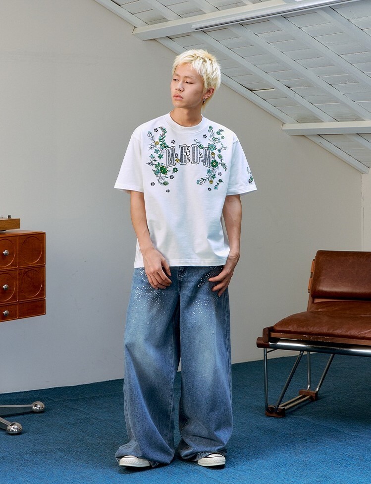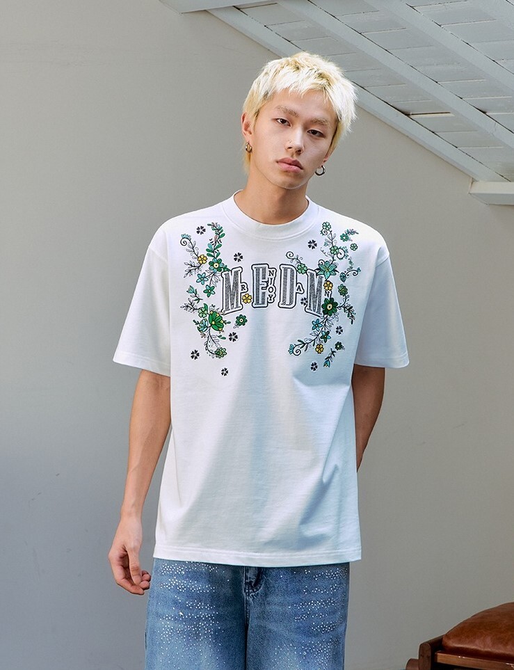 MEDM Arrangement Flower Embroidery Short Sleeve T
