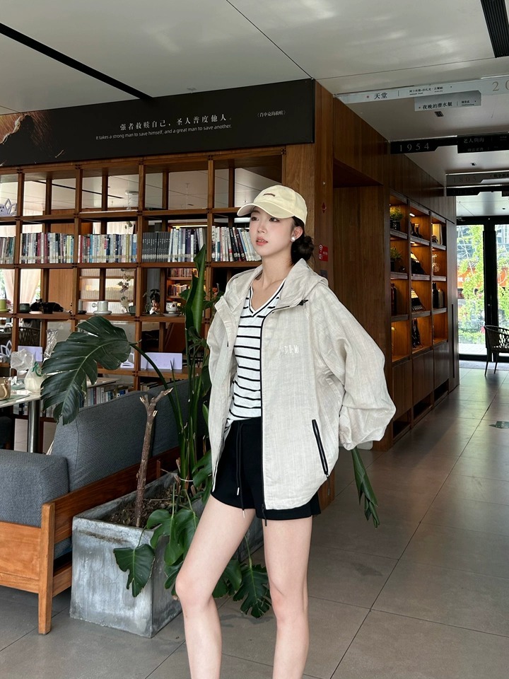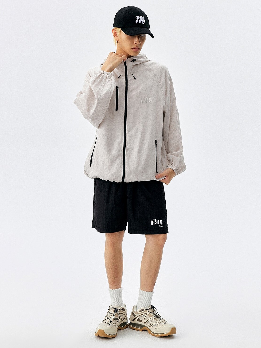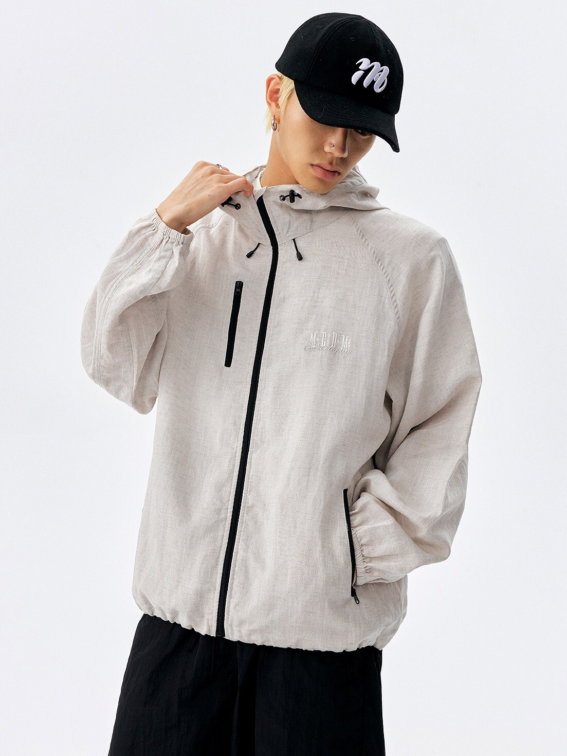 MEDM embroidered logo linen windbreaker jacket