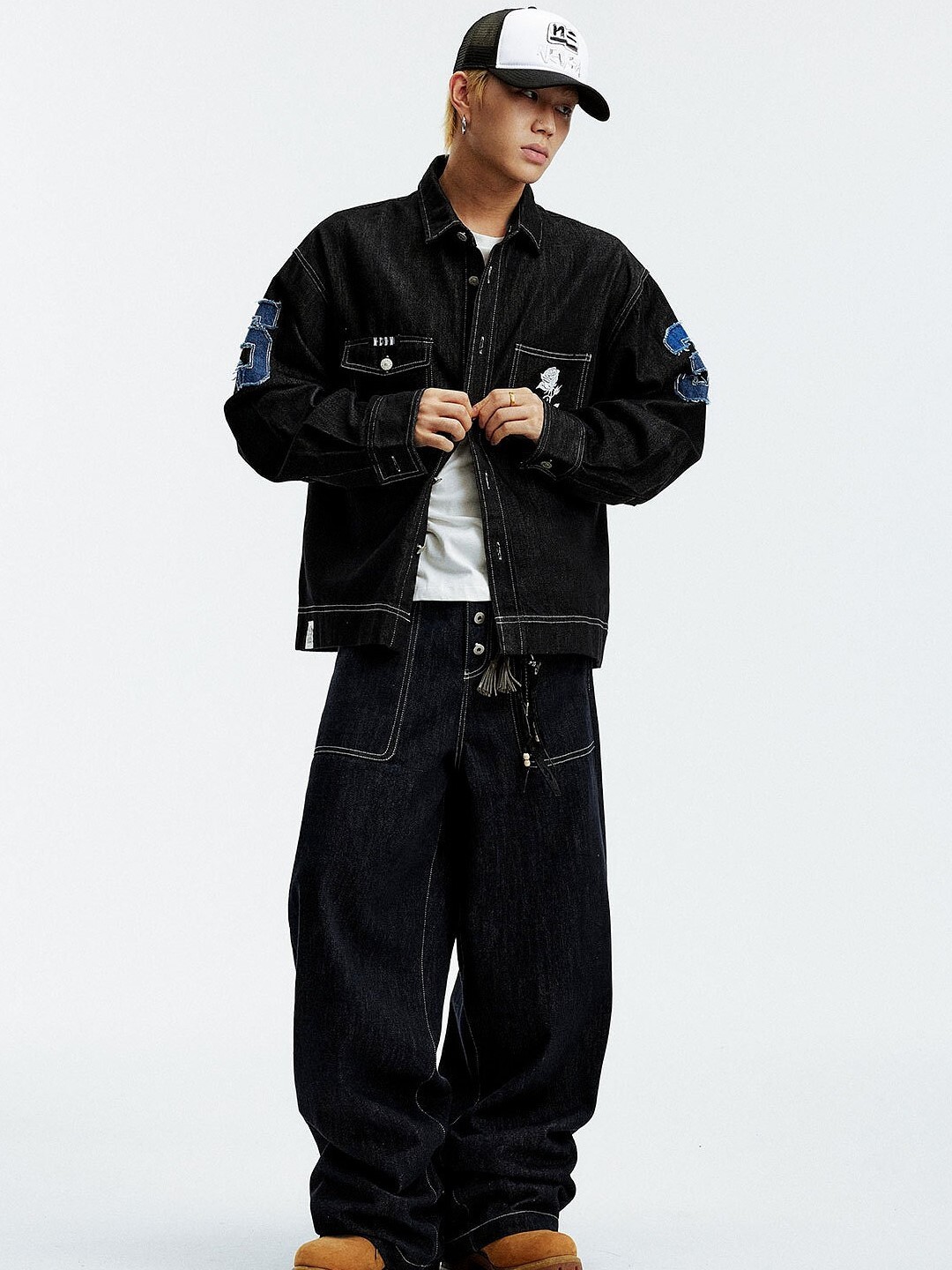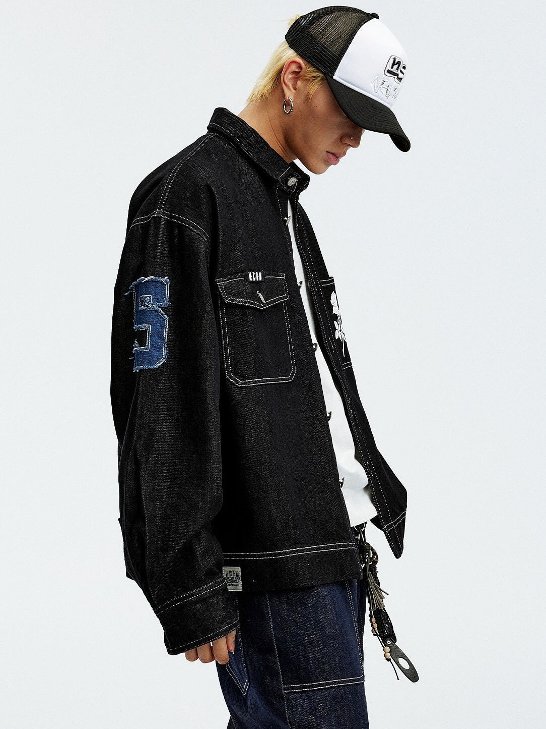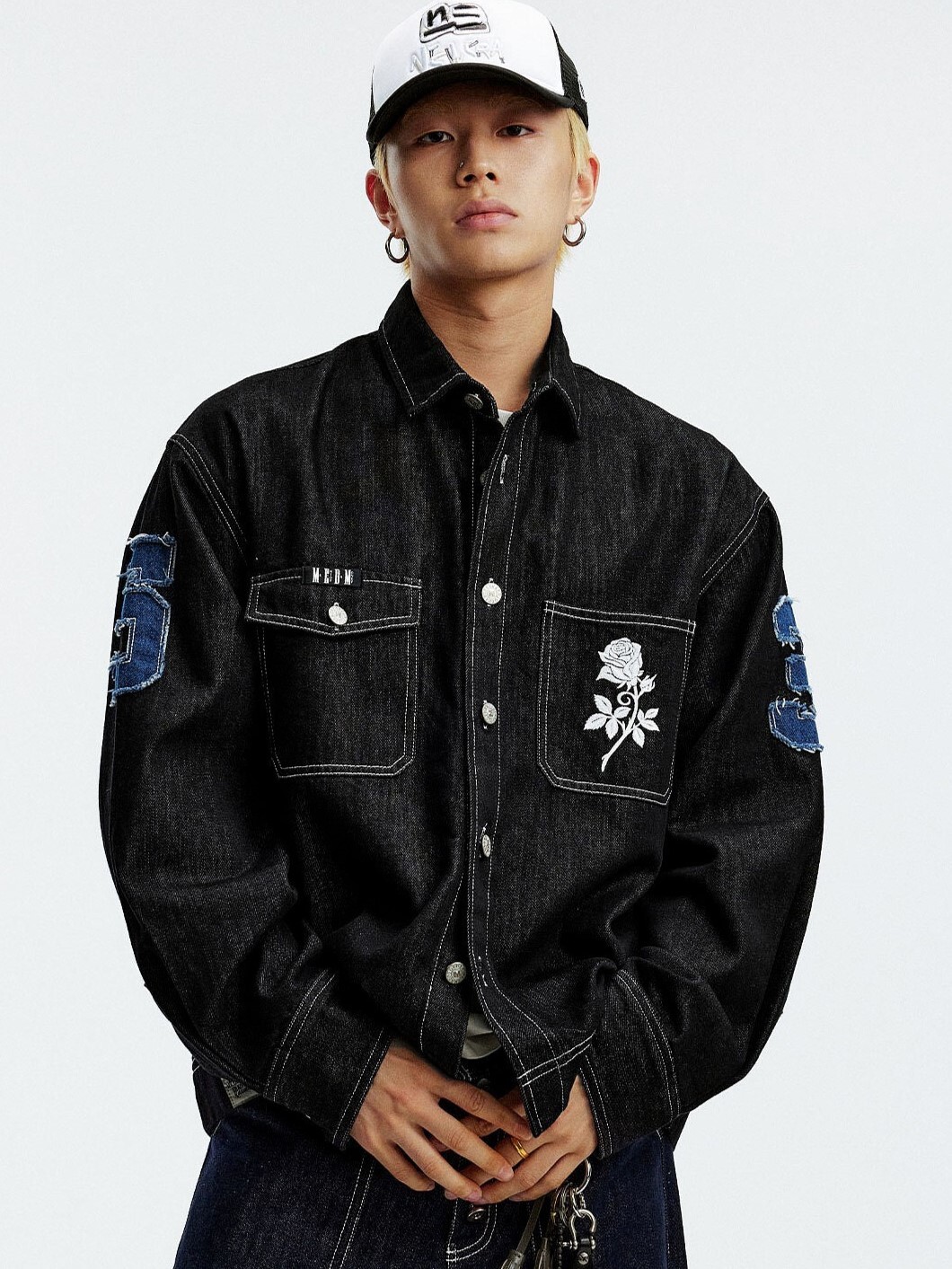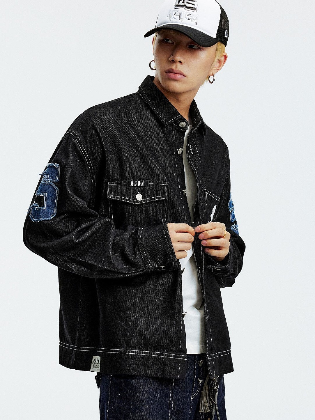 MEDM 胸前口袋 背後數字貼布Logo 休閒翻領 牛仔外套