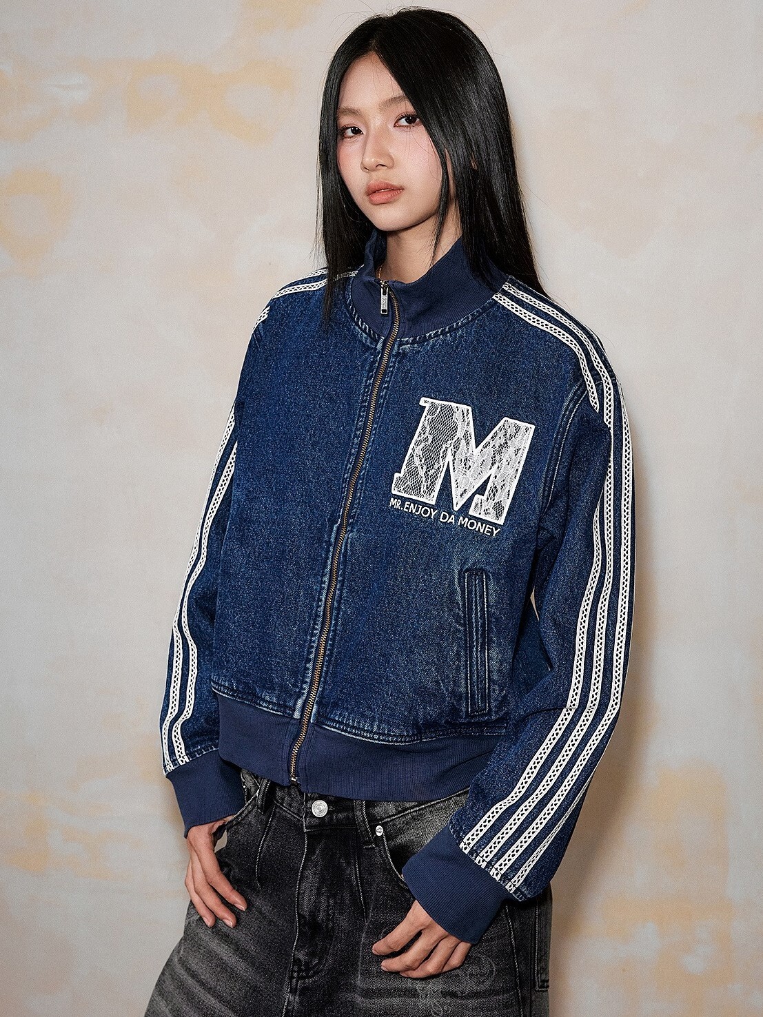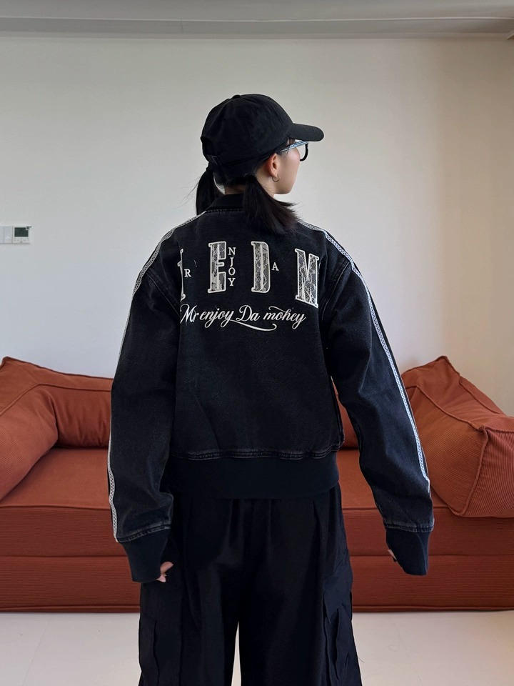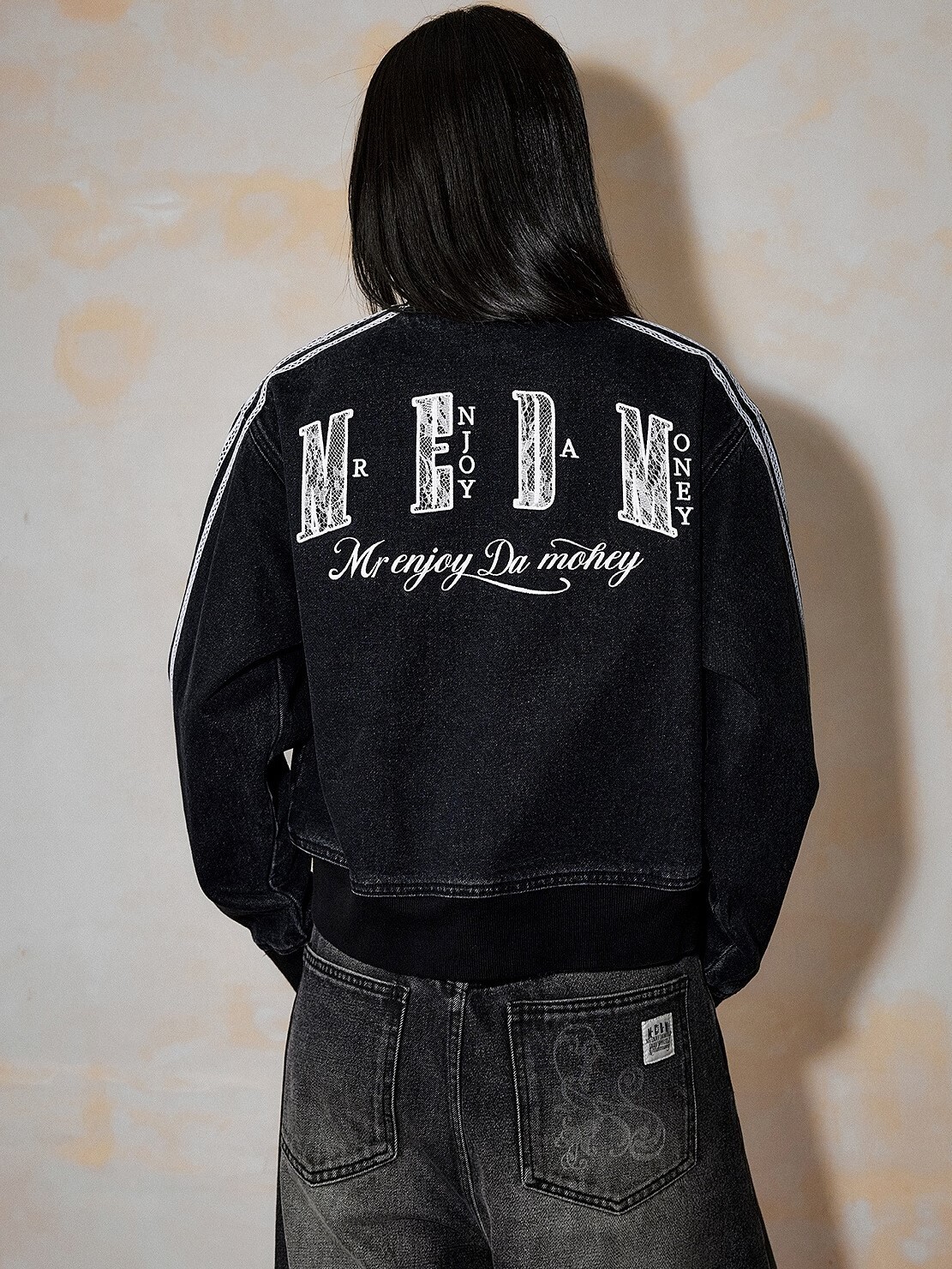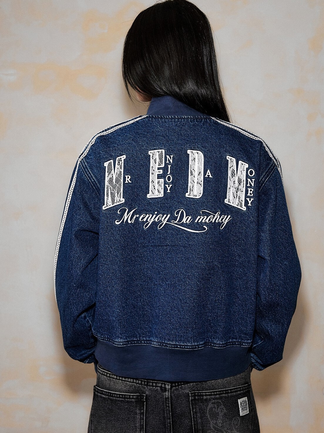 MEDM 蕾絲羅紋字母Logo 休閒牛仔外套