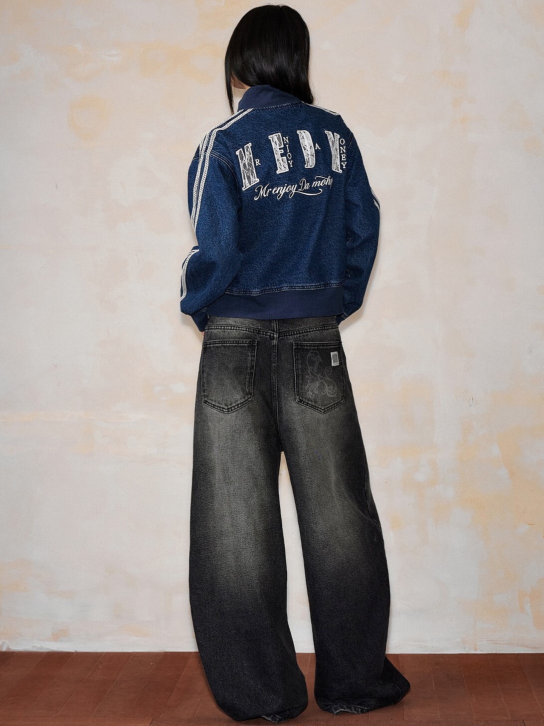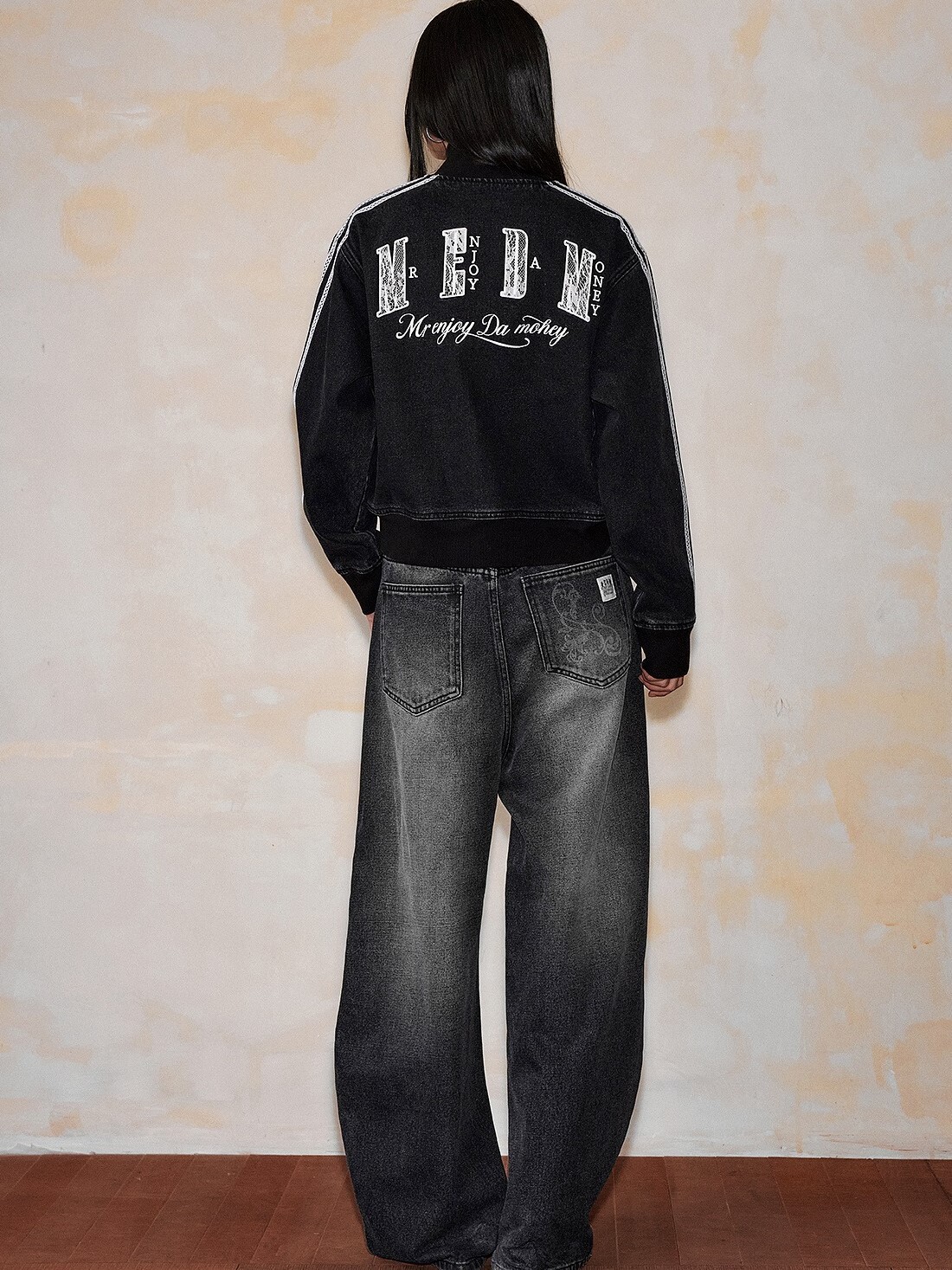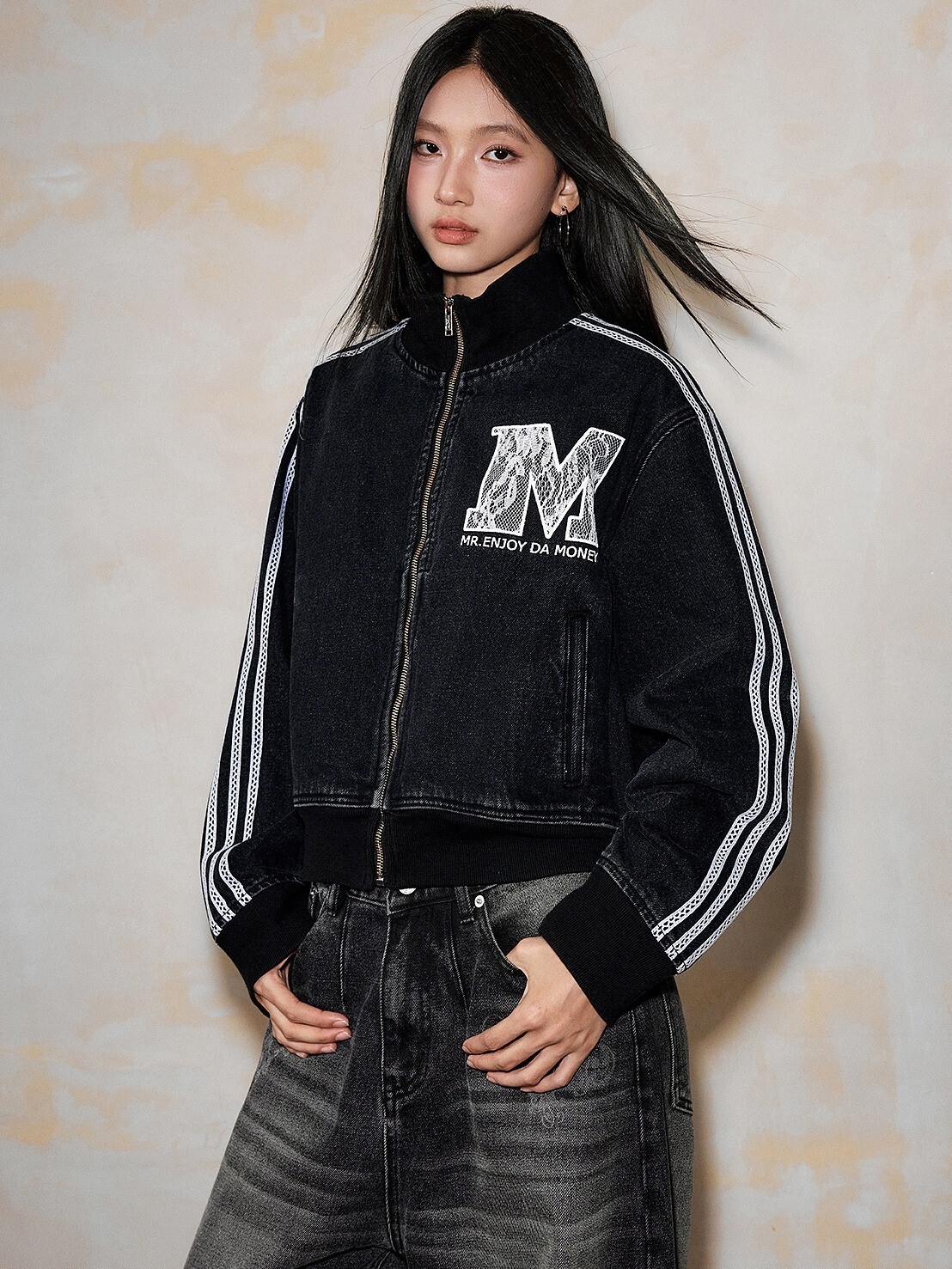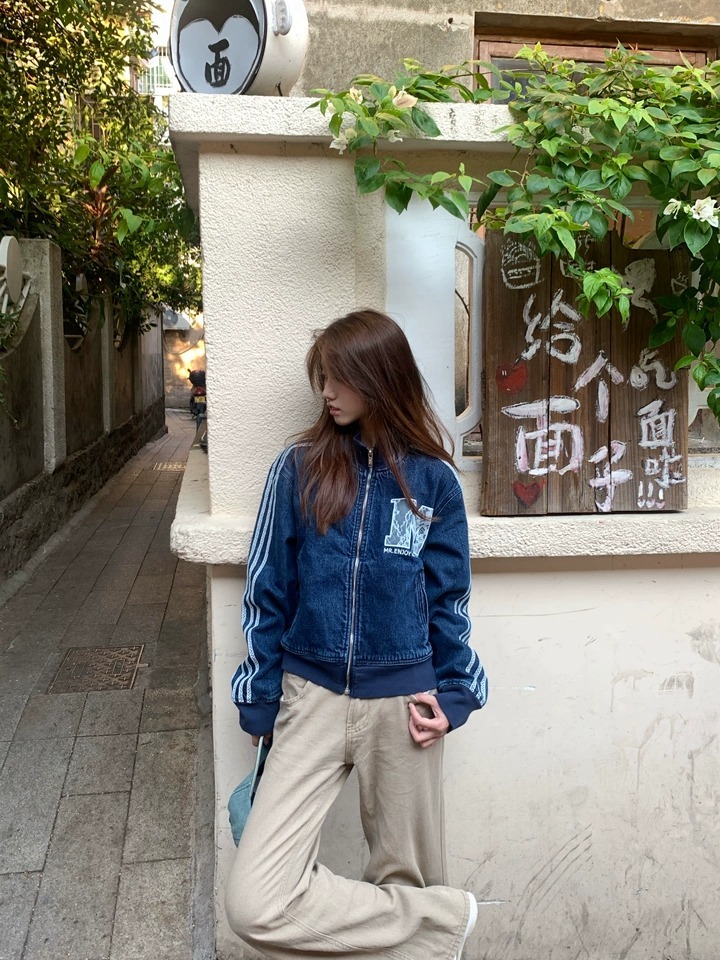 MEDM 蕾絲羅紋字母Logo 休閒牛仔外套