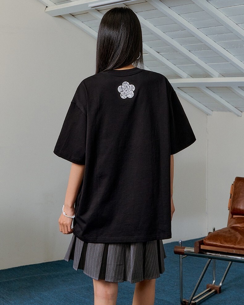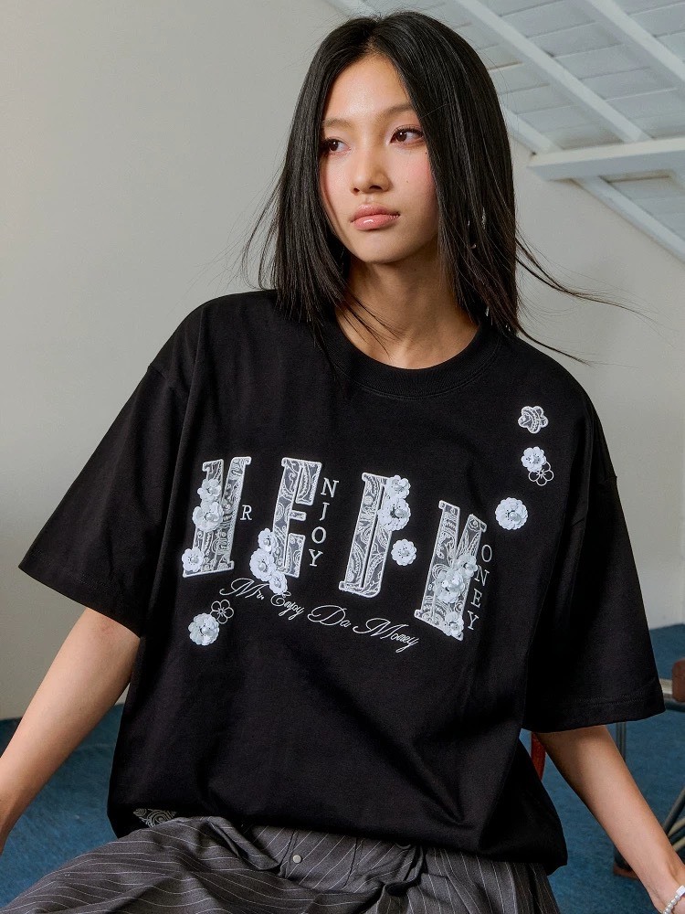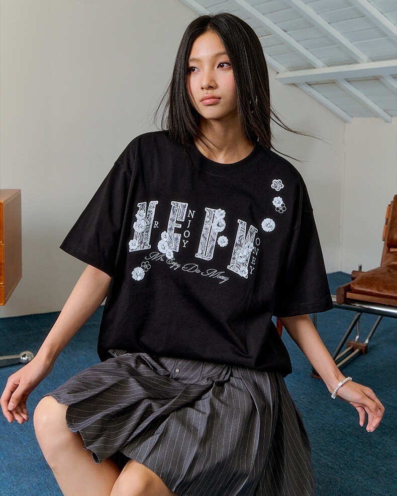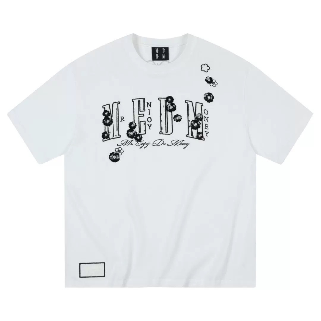 MEDM Lace Flower Patch Embroidered Logo Short Sleeve T