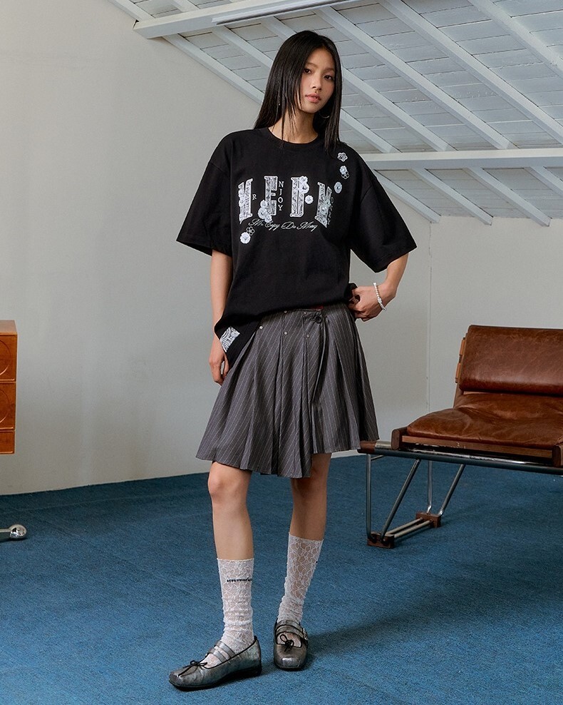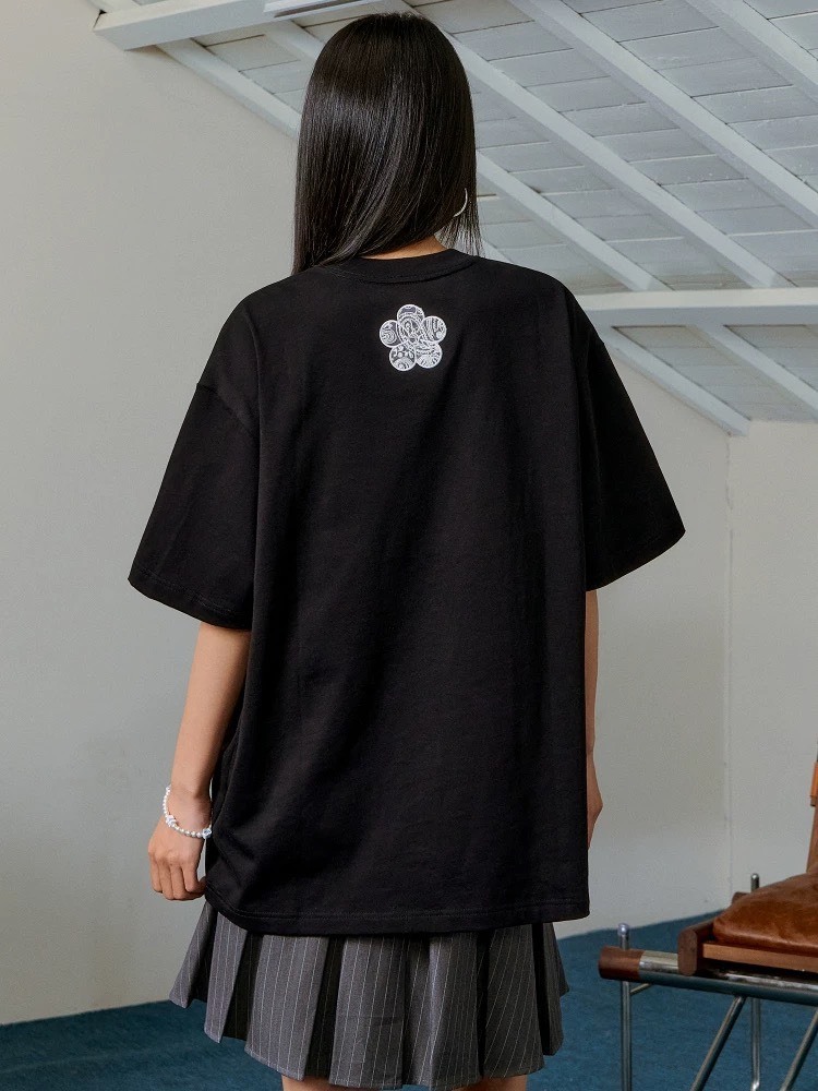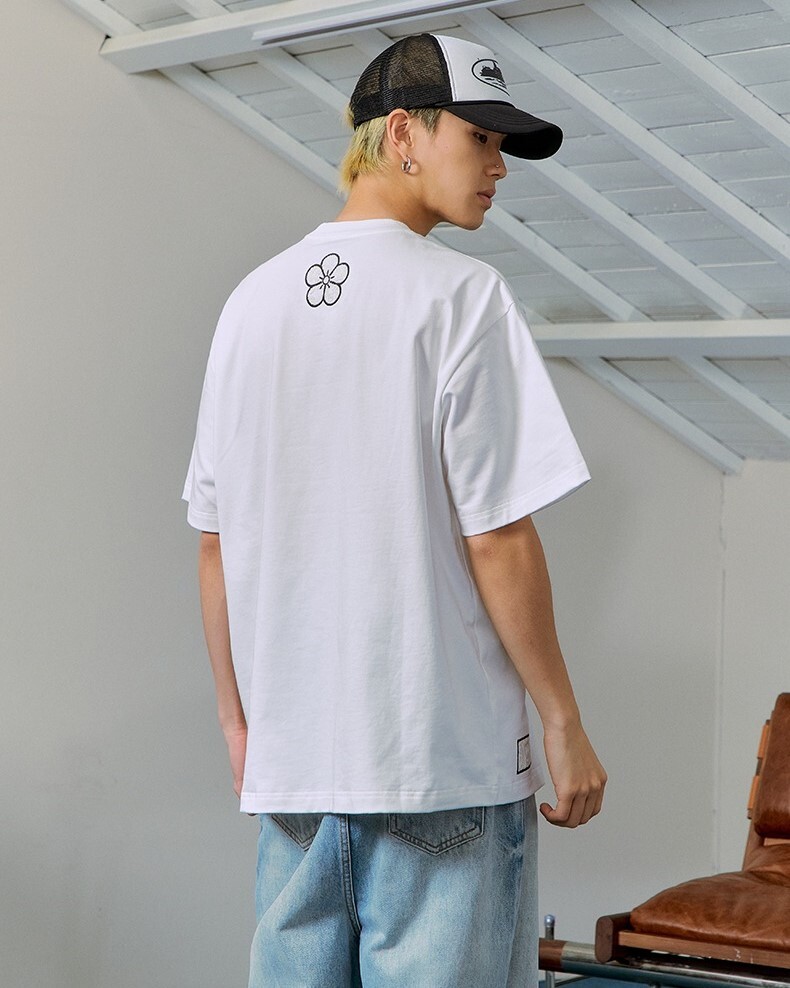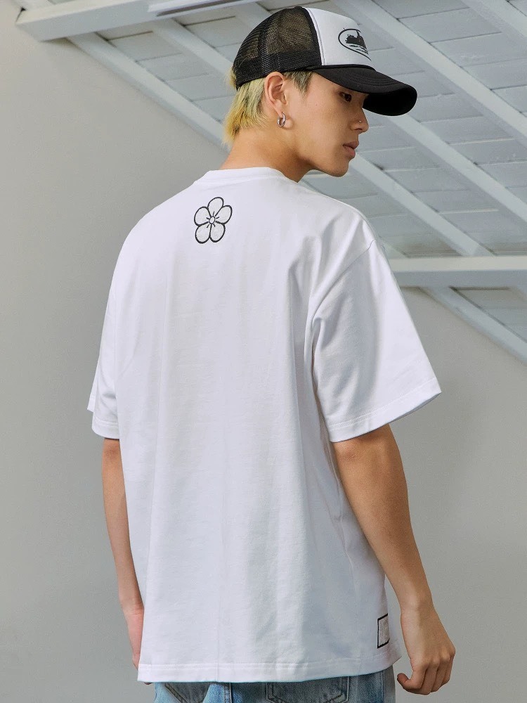 MEDM Lace Flower Patch Embroidered Logo Short Sleeve T
