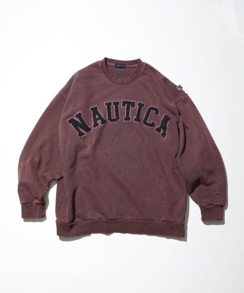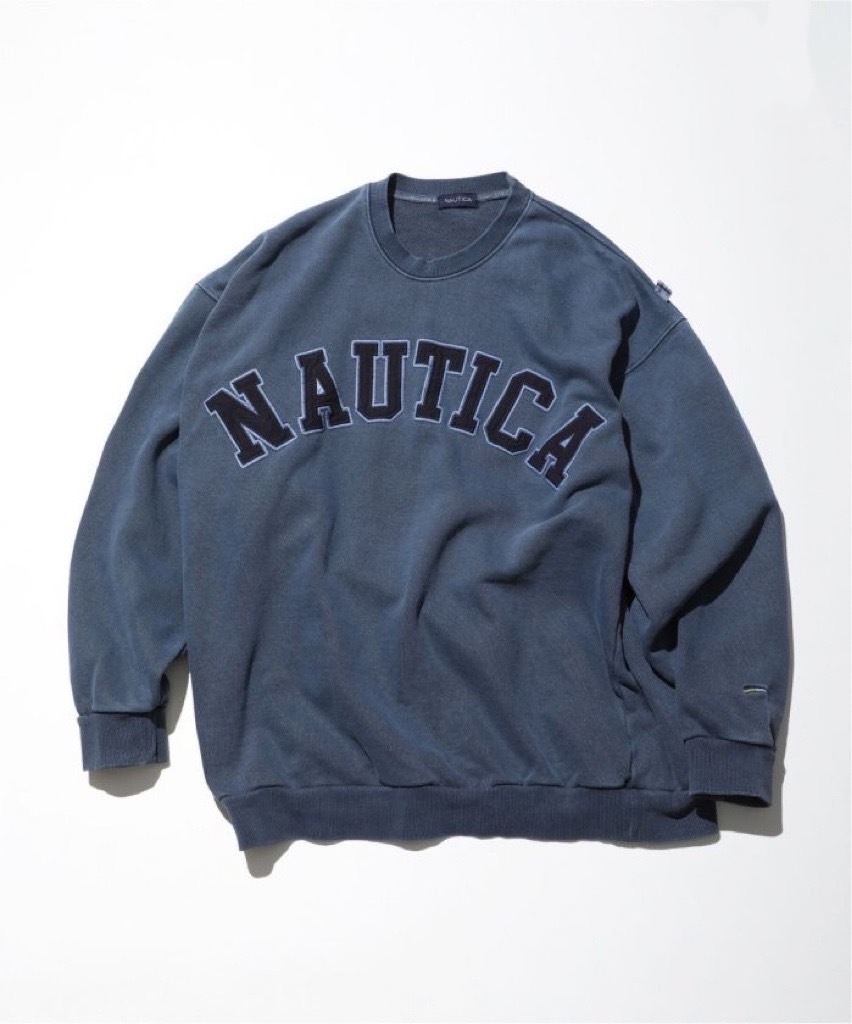 NAUTICA Electric Embroidery Washed Distressed LOGO Round Neck University TEE