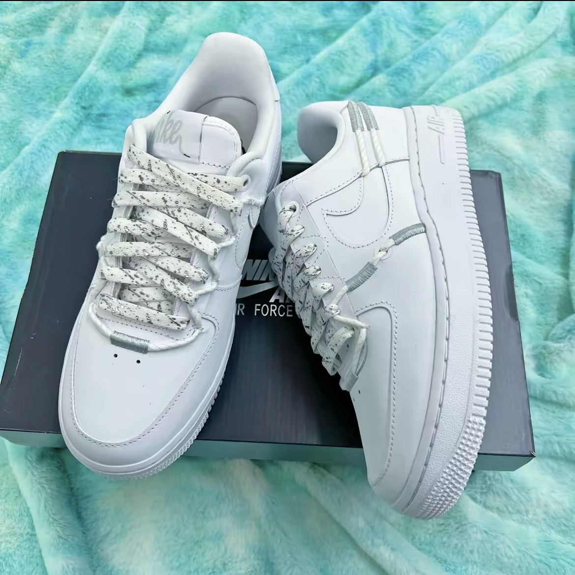 NIKE AIR FORCE 1 LX 鴛鴦 白藍橘 白銀 燕麥 編織 繩 女款