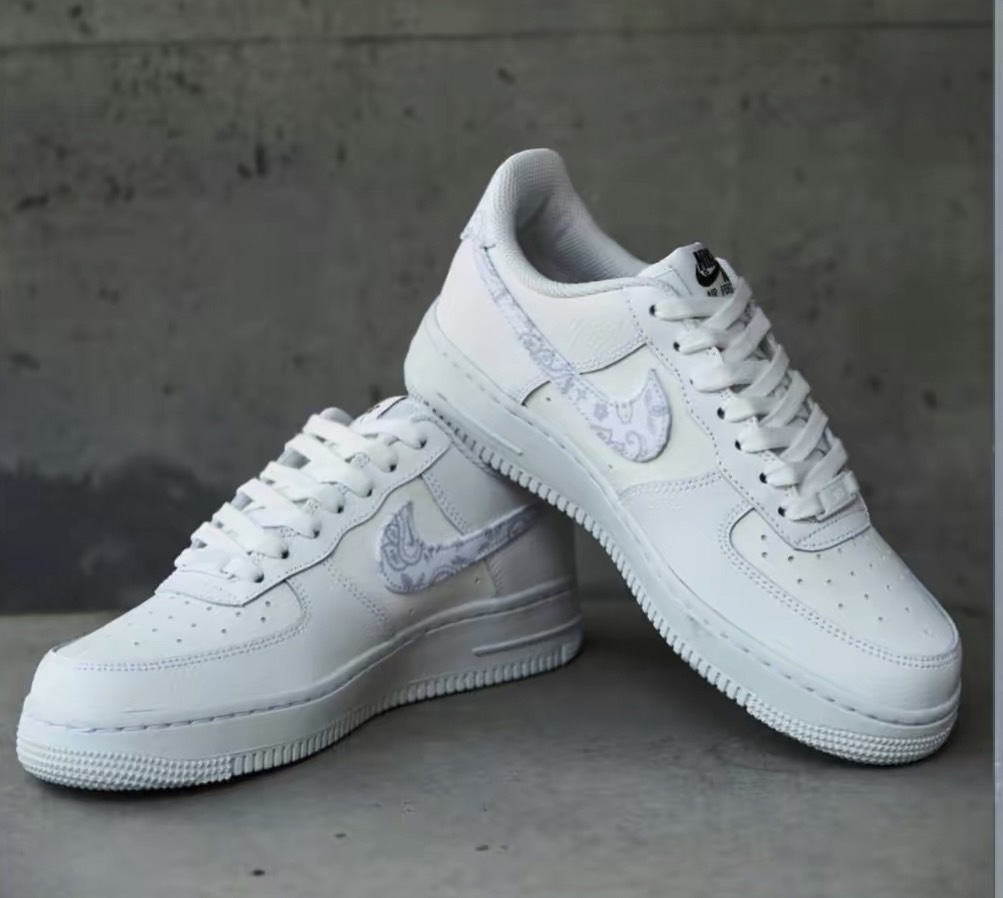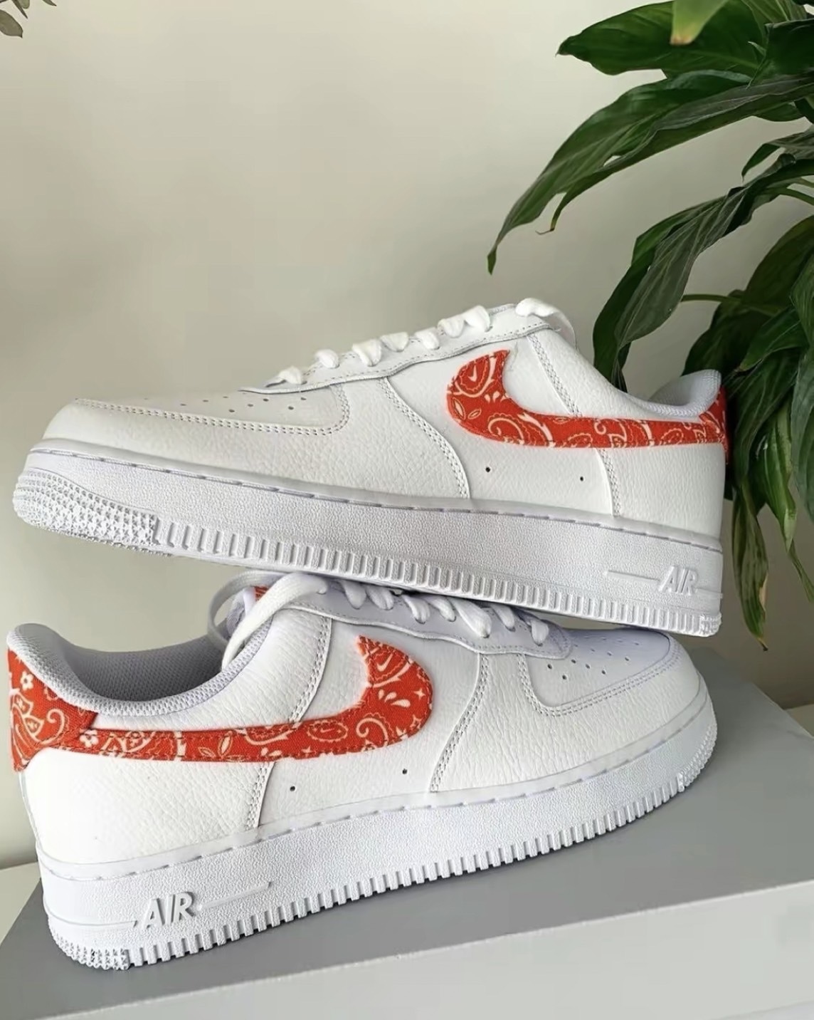 Nike Air Force Low "Paisley" White Orange Grey Amoeba Women's