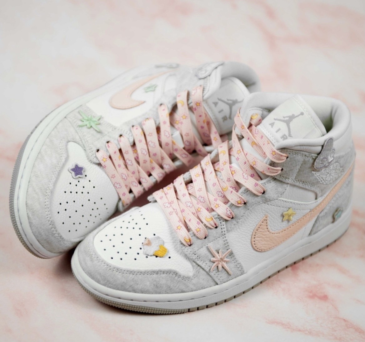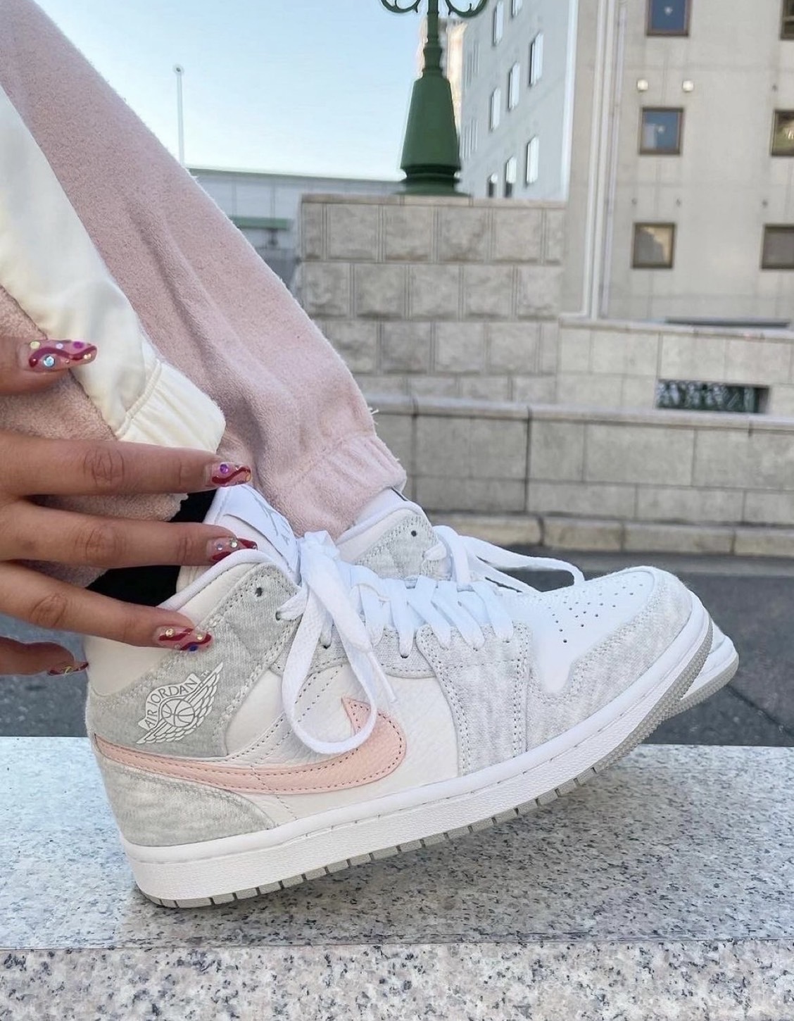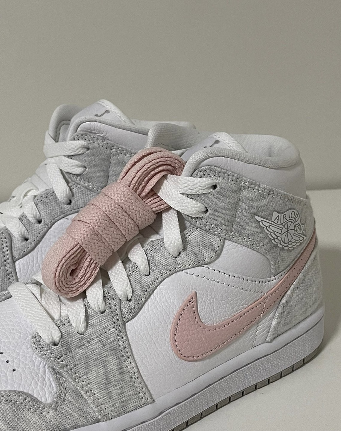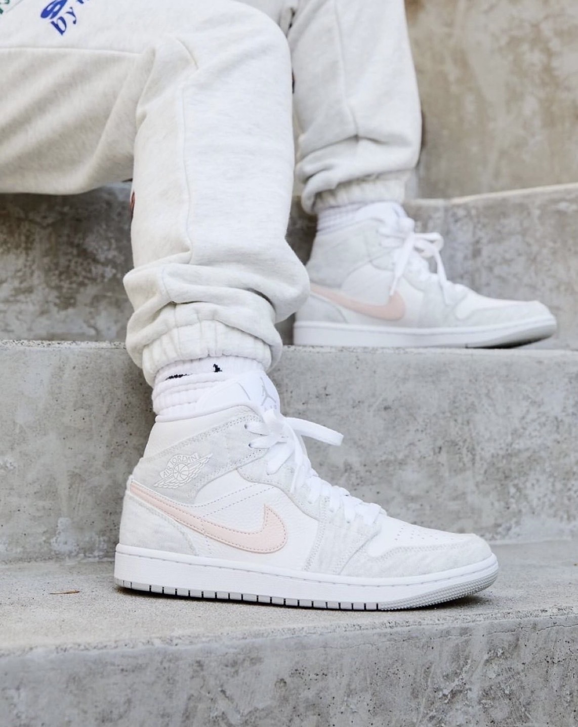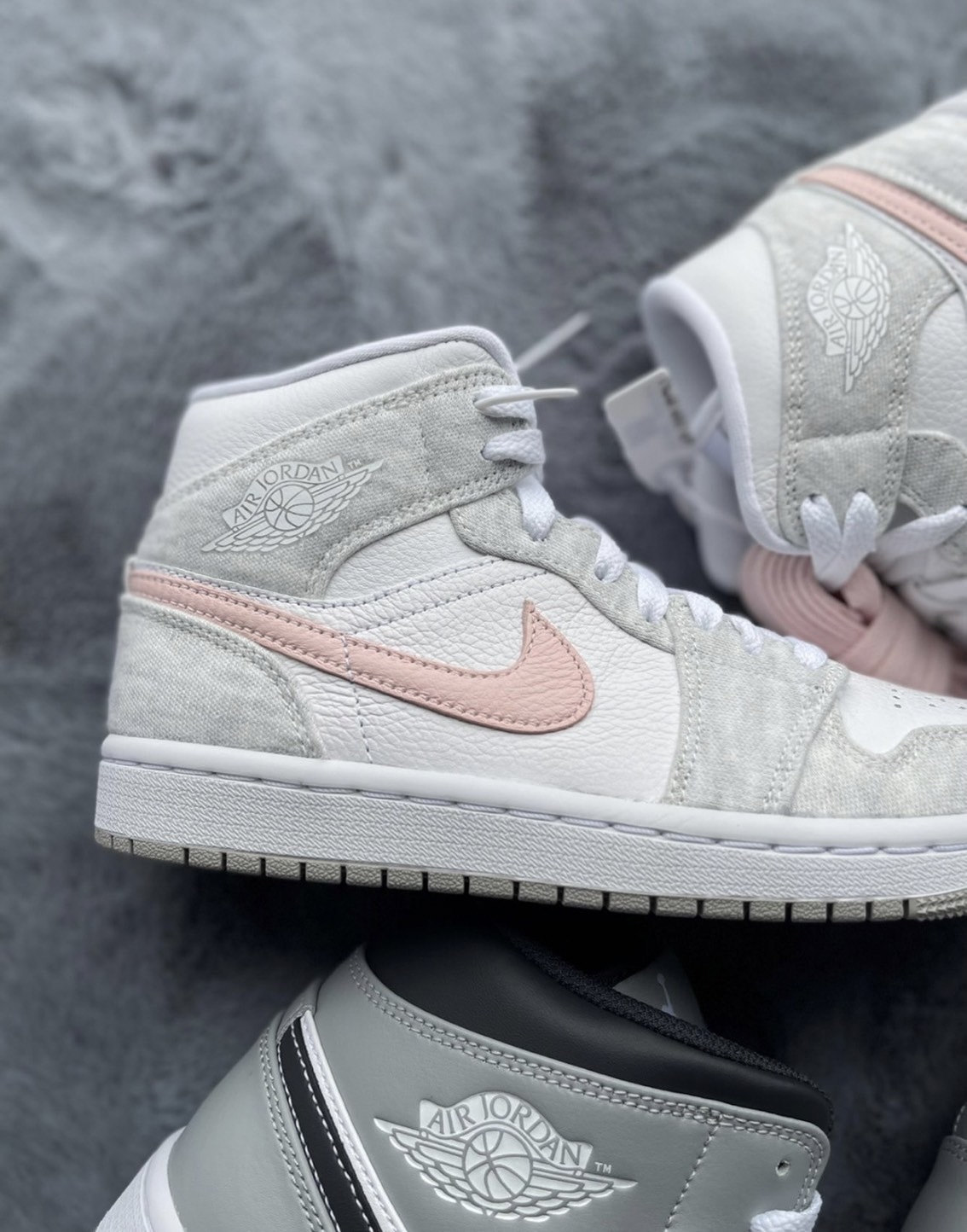 NIKE AIR JORDAN 1 MID "LIGHT IRON ORE 灰粉白 粉勾 女款