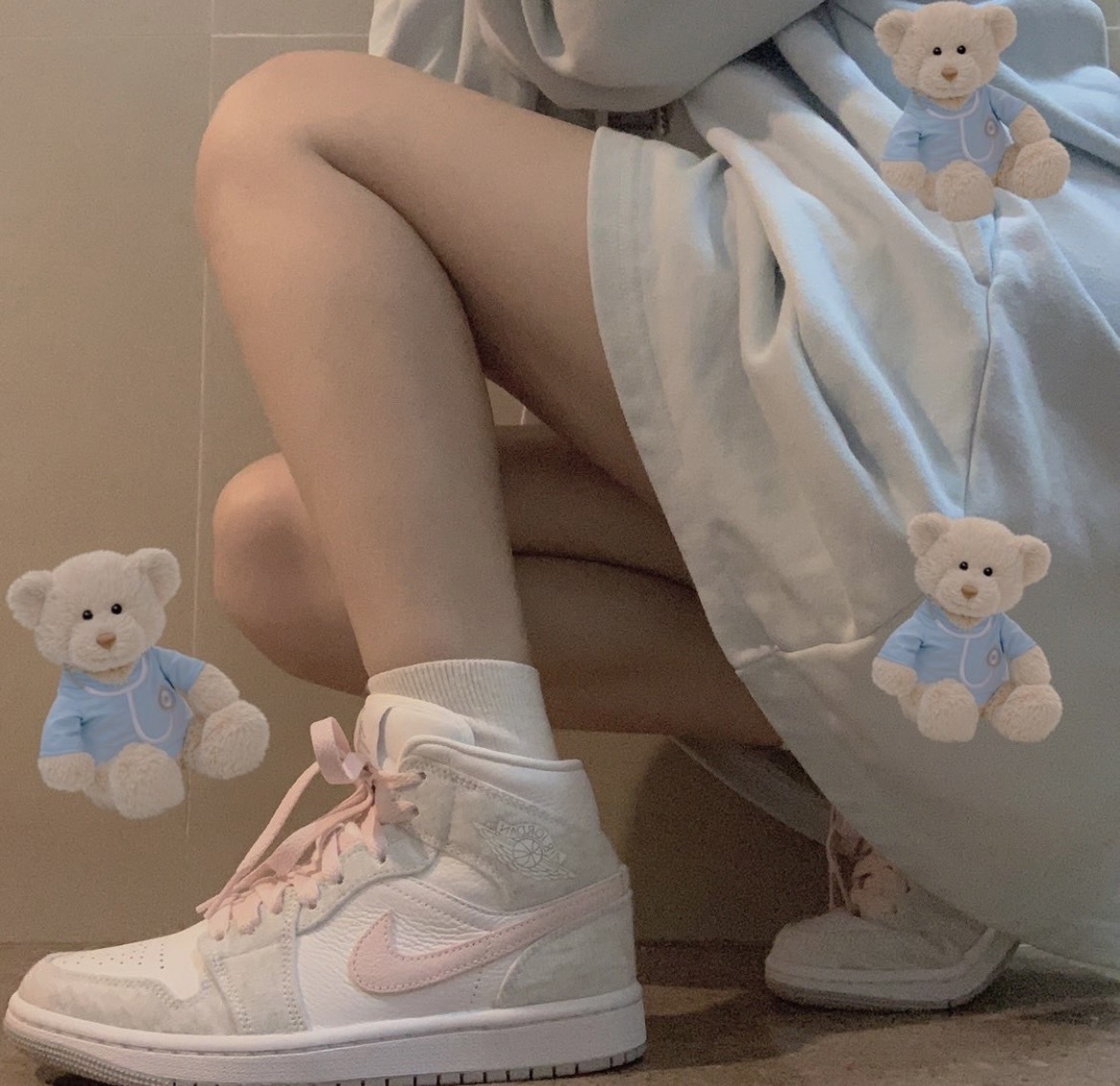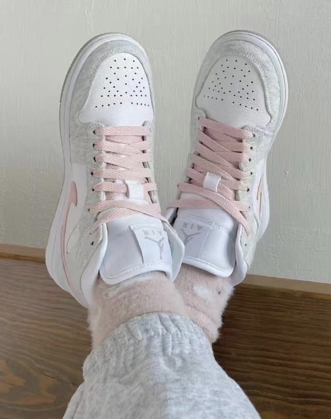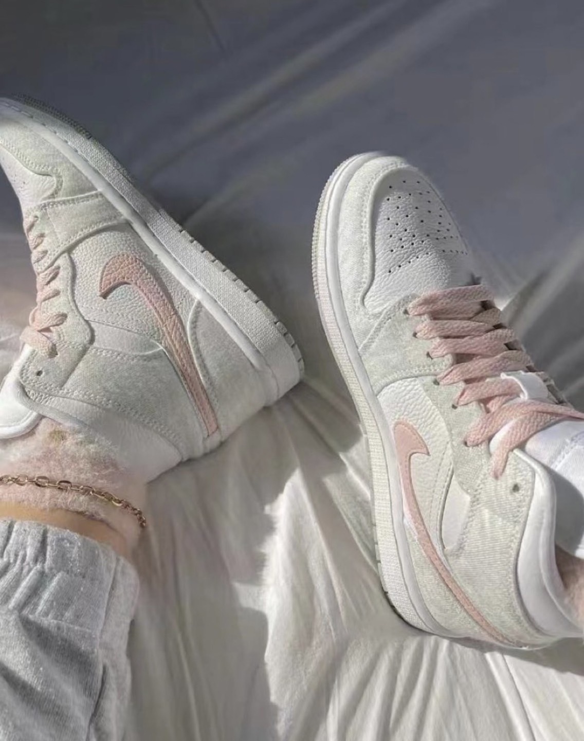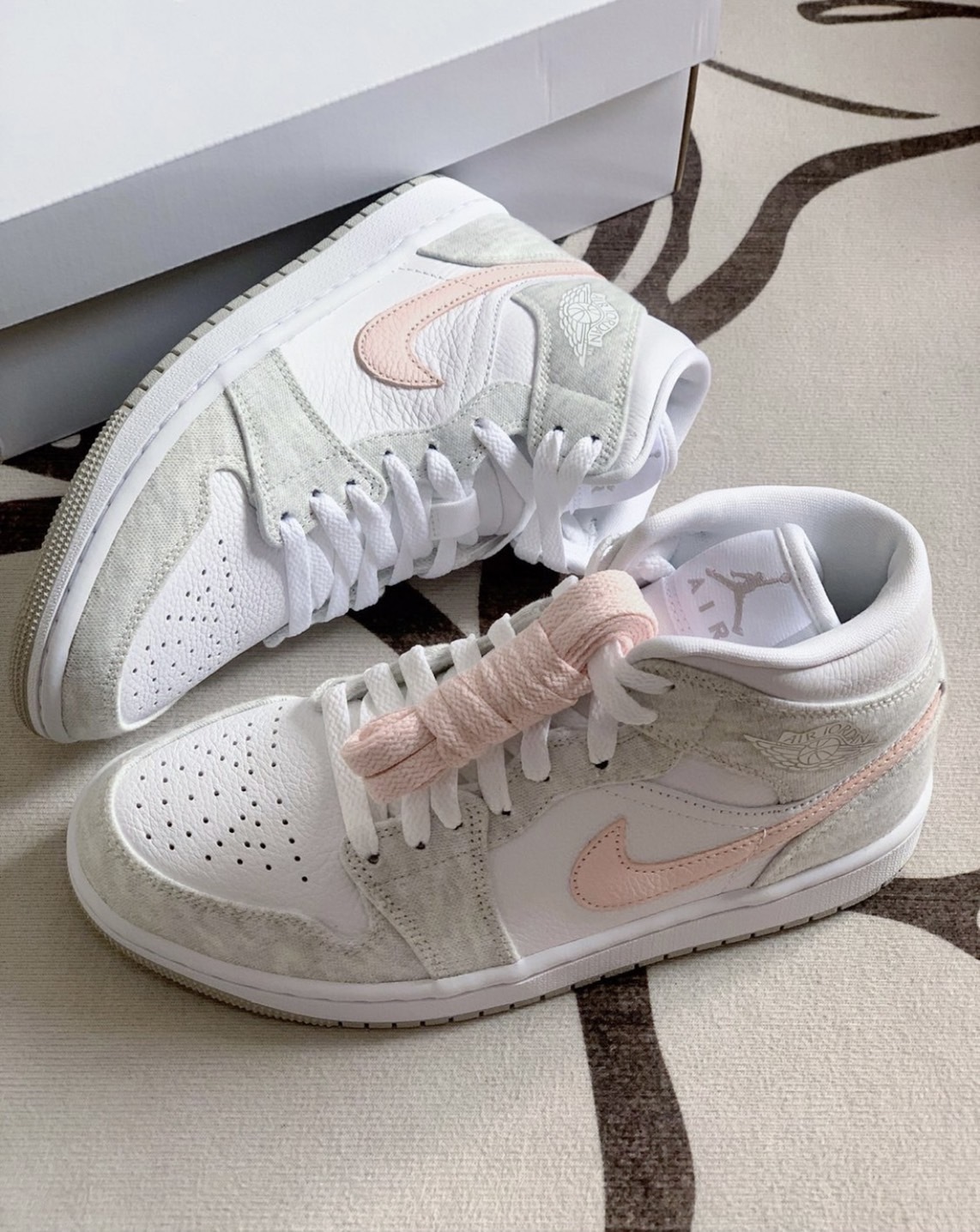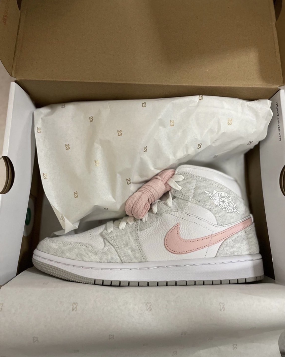 NIKE AIR JORDAN 1 MID "LIGHT IRON ORE 灰粉白 粉勾 女款