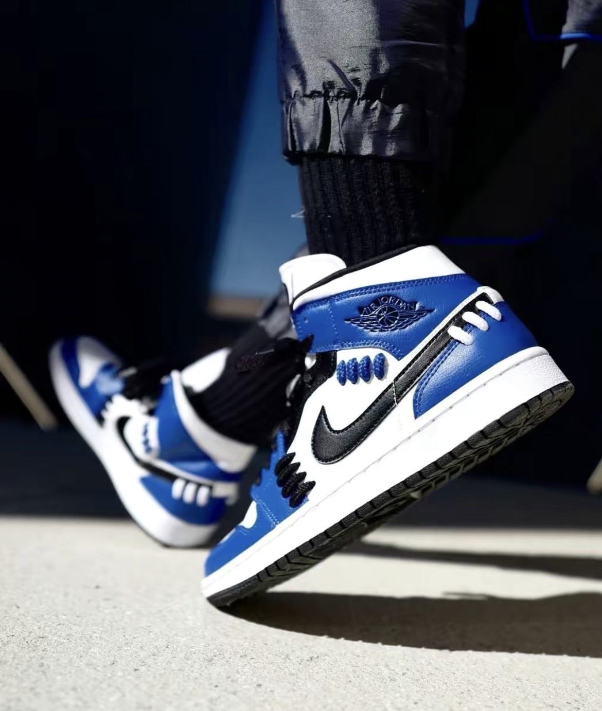 Nike Air Jordan 1 Mid SE "Game Royal" 白藍黑 小閃電 女款